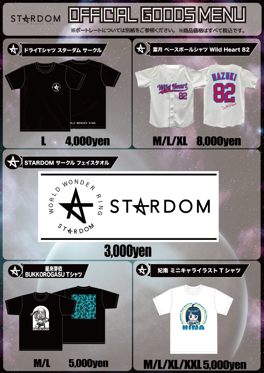 スターダムファン必見! 大会にて、さまざまなグッズを販売いたします!グッズを手に入れて、大会をさらに楽しみましょう!会場でグッズを手に入れて選手を応援しましょう!大会当日は混雑が予想されますので、お早めの来場をお勧めします。
