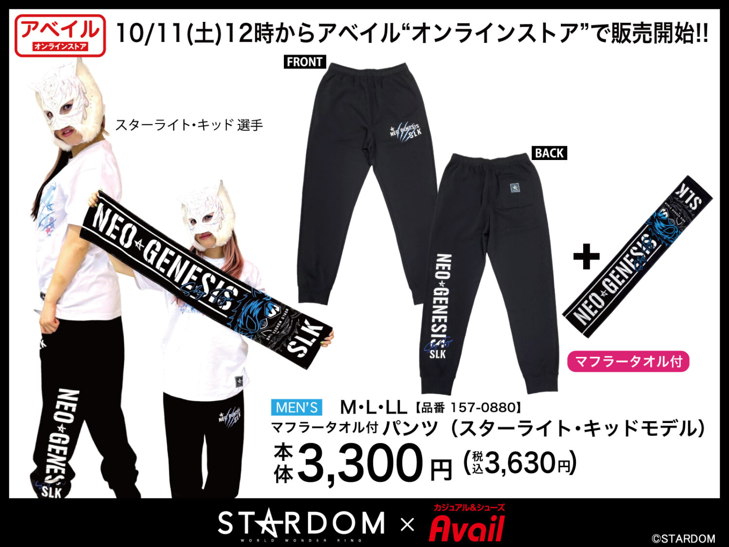 スターダムのアパレル新作が、10月11日(土)12時より、アベイルオンラインストアで販売開始します!