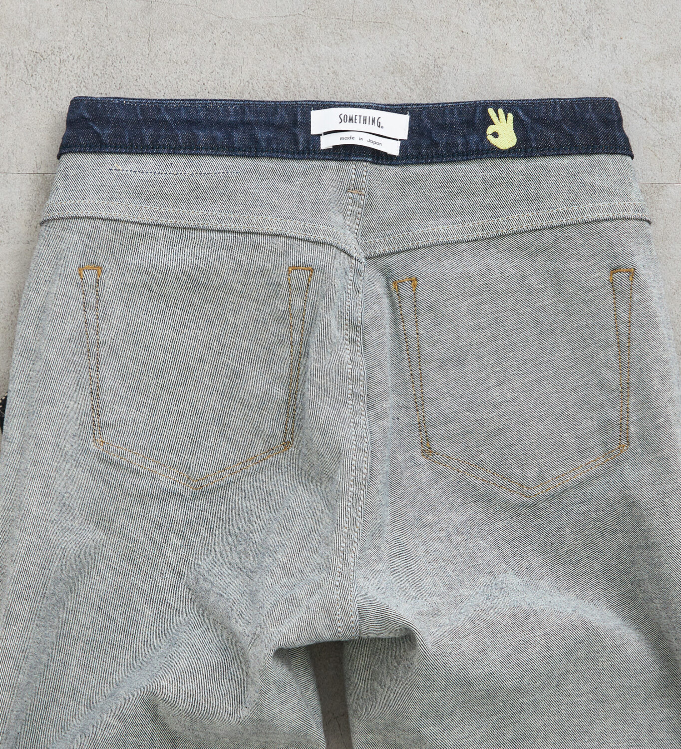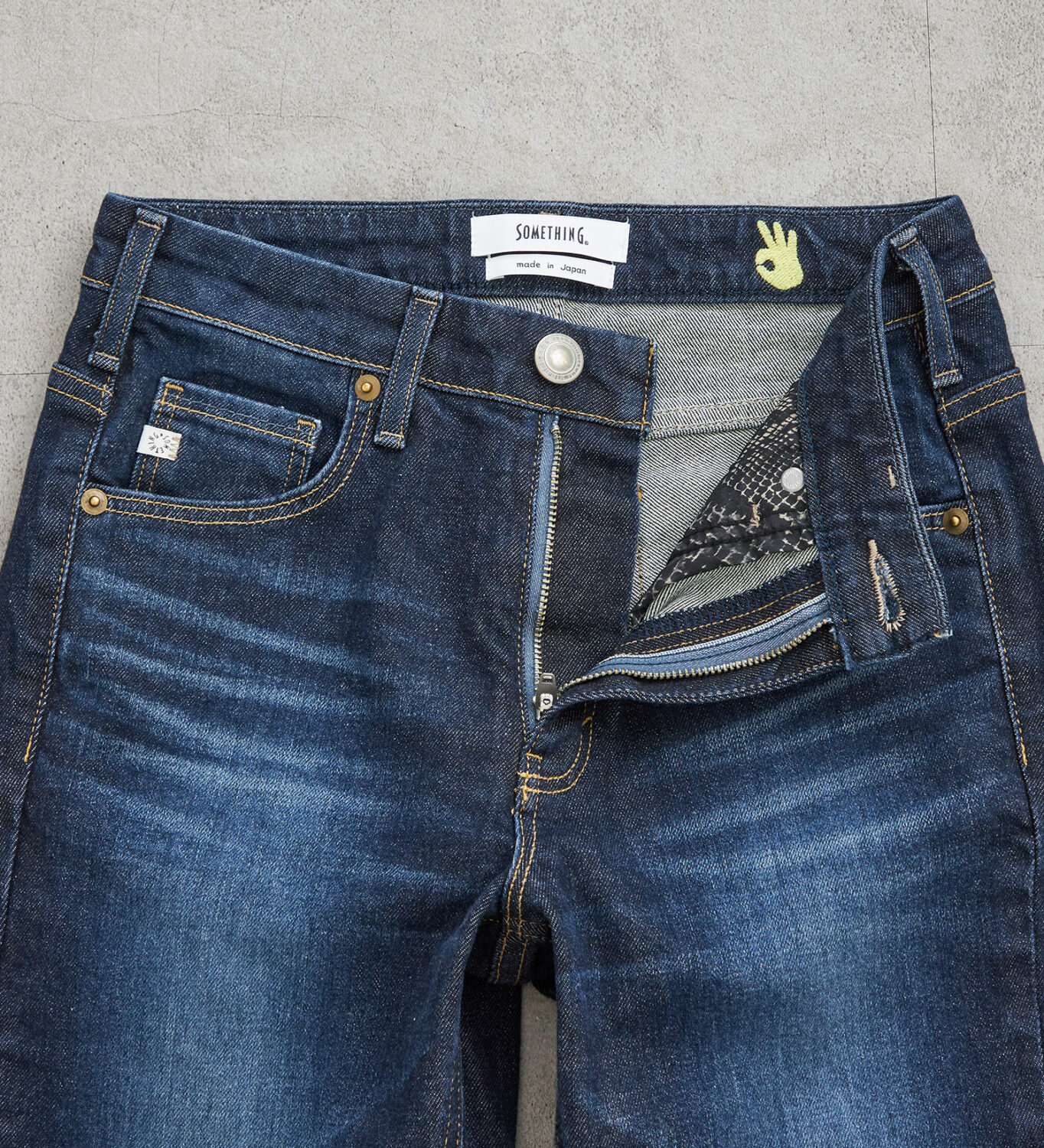 優れたハイストレッチが特徴のSOMETHINGオリジナルデニムを採用。
