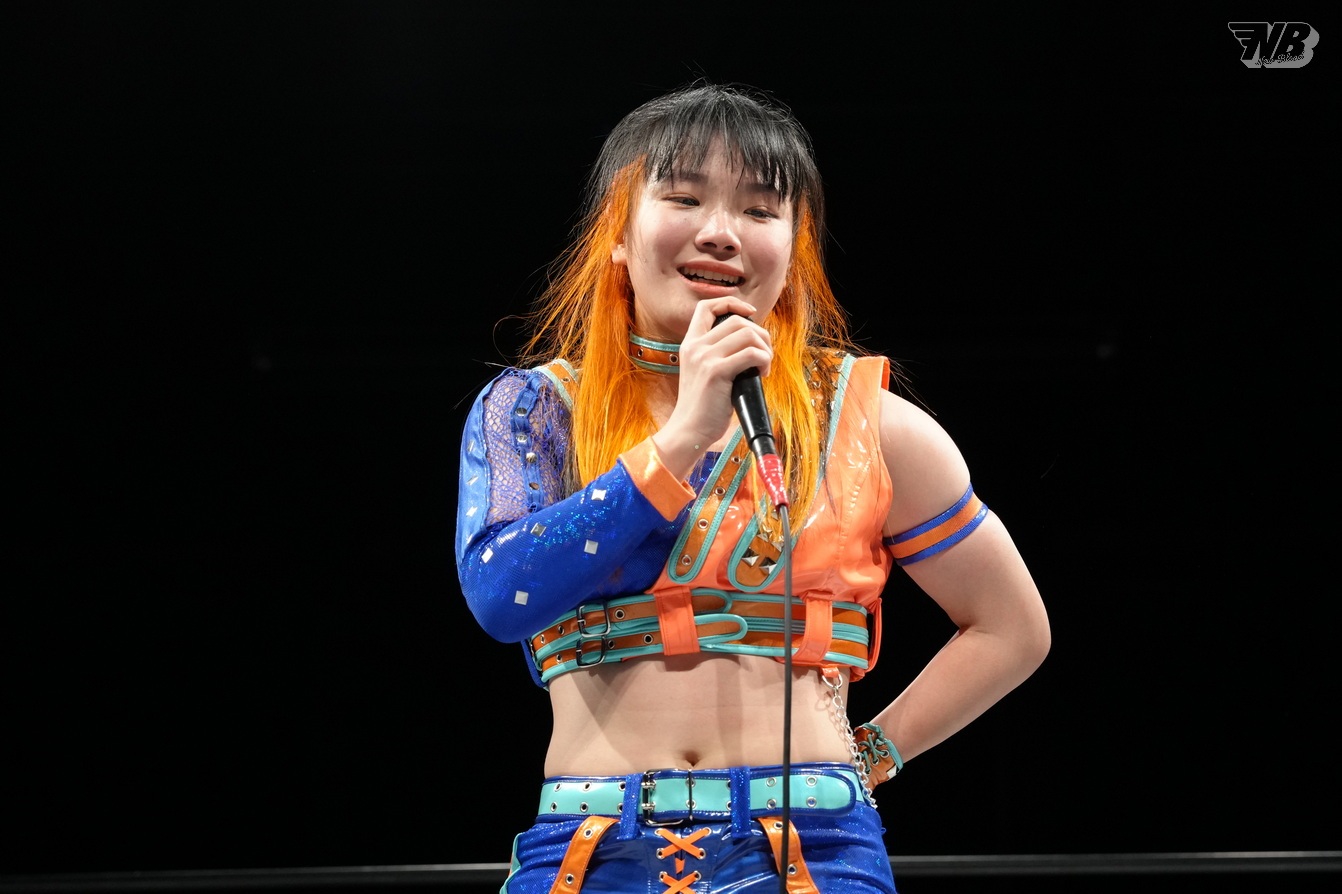 浜辺と儛島の復帰により、姫ゆりあ、古沢稀杏、金屋、鉄アキラの2024&2025年デビュー組が勢揃い。6人がリング上に並び、それぞれ意気込みを語った。