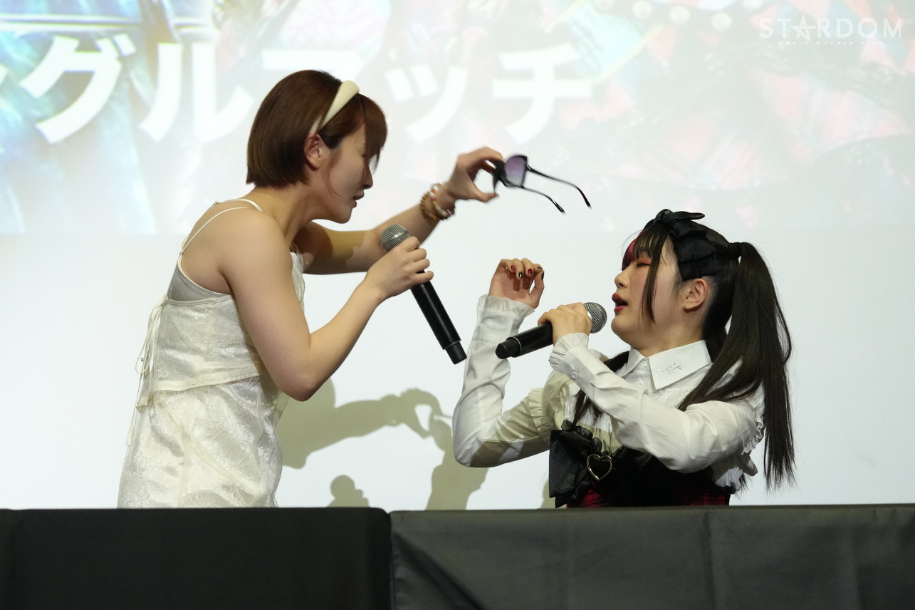 先にマイクを握ったなつぽいが「ヤッポーイ!これまで伊藤のかわいさに嫉妬してるだの、変なおもちゃベルトでいちゃもんつけられてきましたけど、私は私のプロレスをするだけだし。その上でリング上で結果を出すだけだと思っています。それぞれ空白の期間があって、それぞれの戦いを経てここで出会ったと思っているので、伊藤との試合を楽しみたいなと思っています」と決意を述べた。
