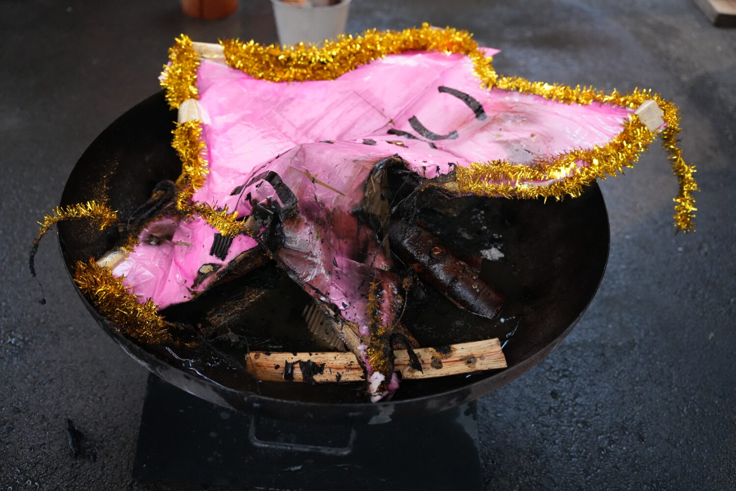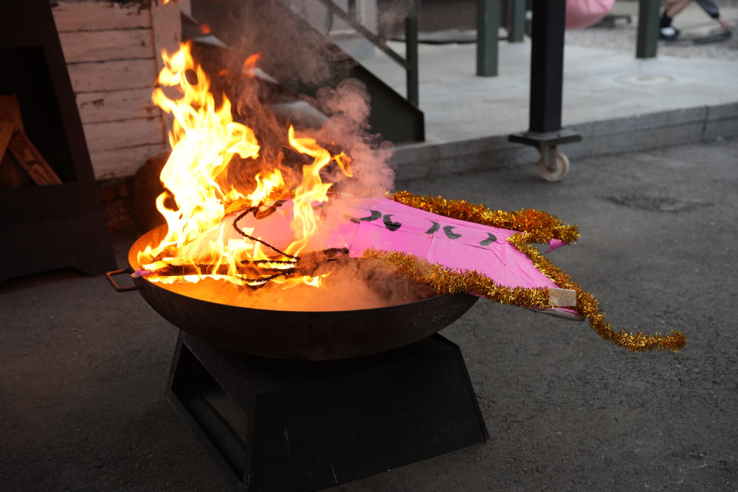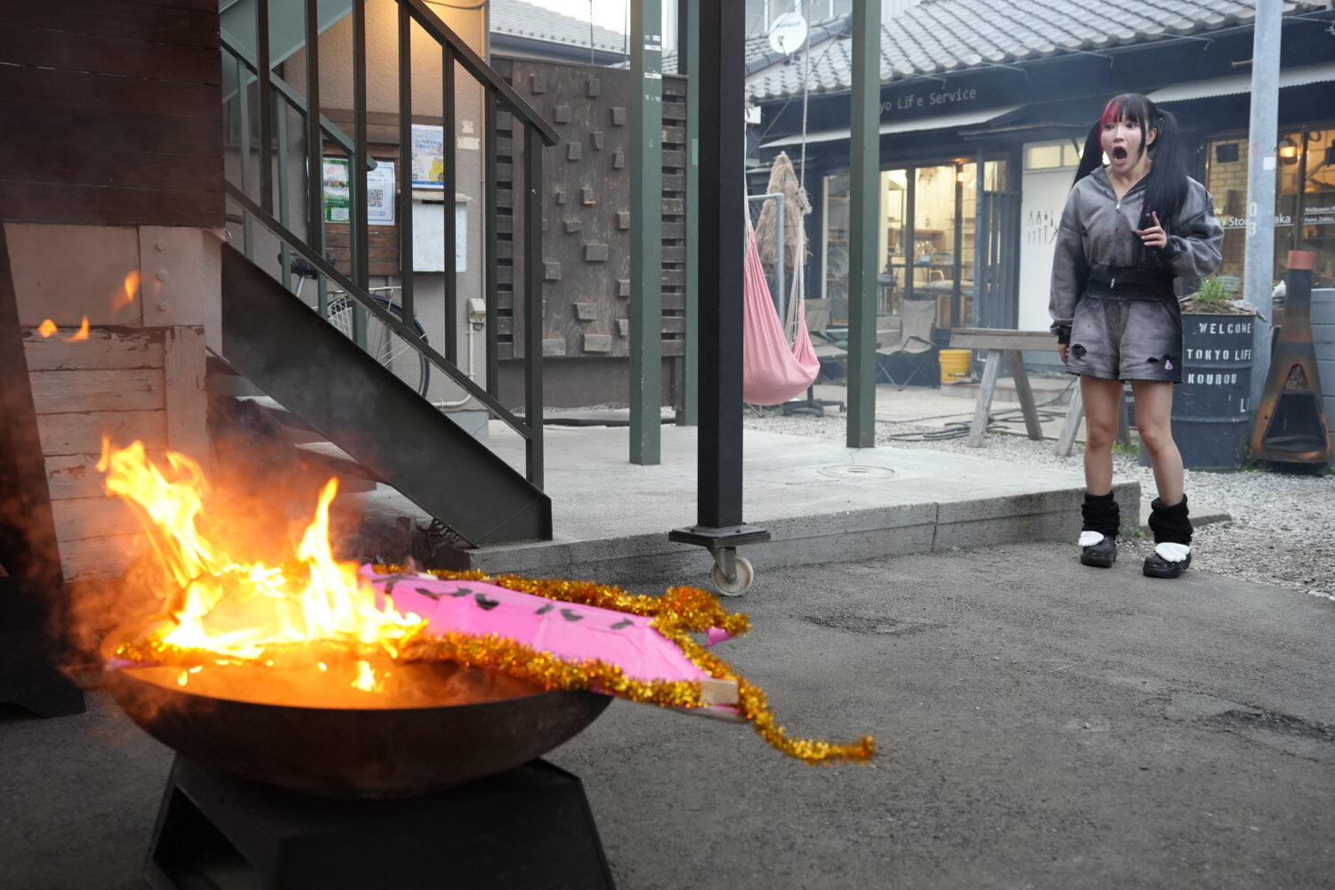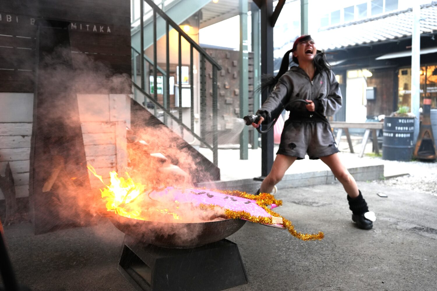 「かわいい」の文字がデカデカと刻まれた、「かわいい執念のかたまり」が炎に包まれていた。我を失った伊藤は「あっ、あっ、水! 水! 急いで!かわいいが燃えている!!ああーーーー!!」と絶叫しながらホースを見つけ出し、慌てて水をかけ続ける。
