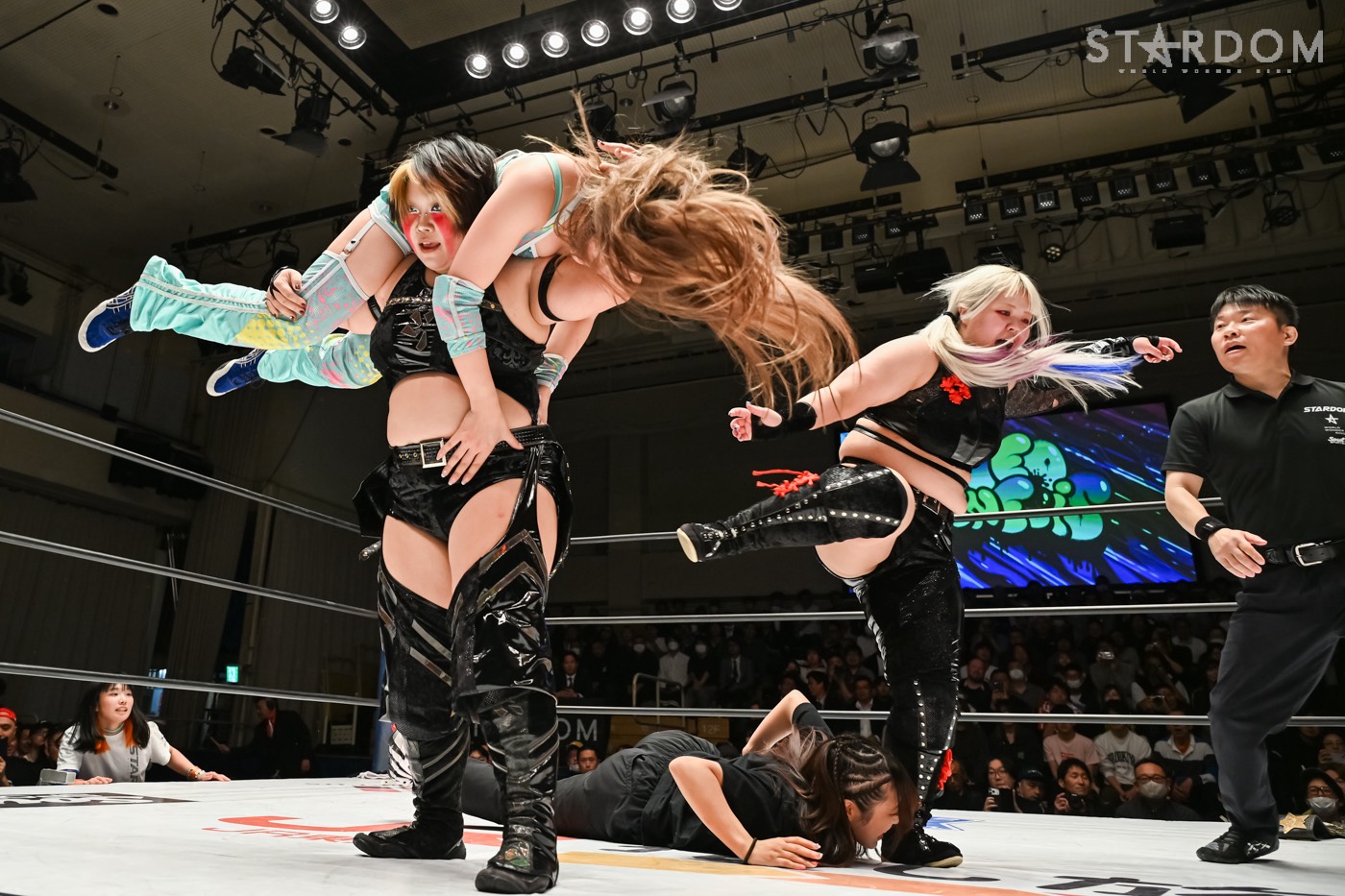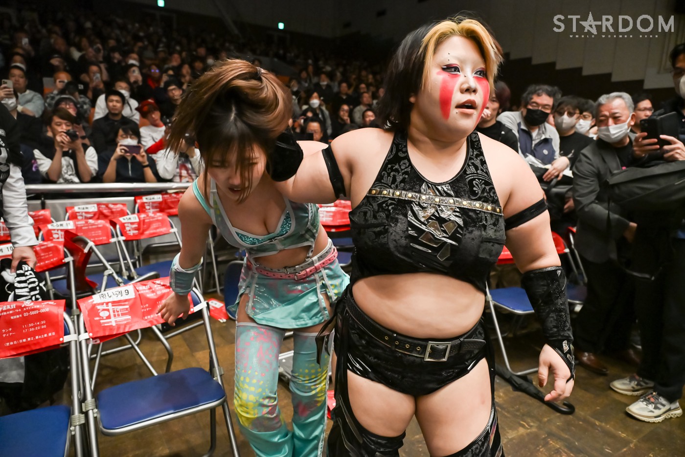 刀羅は「しつけえなと思ってんだろ?ウチらはウザくてしつこいんだよ。そんなウチらともっと試合をやりたいんだったら、最後までとことん付き合ってもらうから覚悟しとけ!」と吐き捨て、その場を後に。王者組有利のまま、横アリ決戦を迎えることになった。