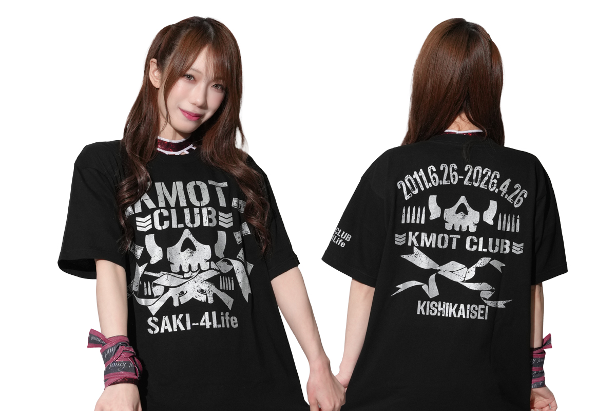 フロントにはスカルロゴと「SAKI-4Life」を配置し、背中にはデビューから引退までの日付を刻み