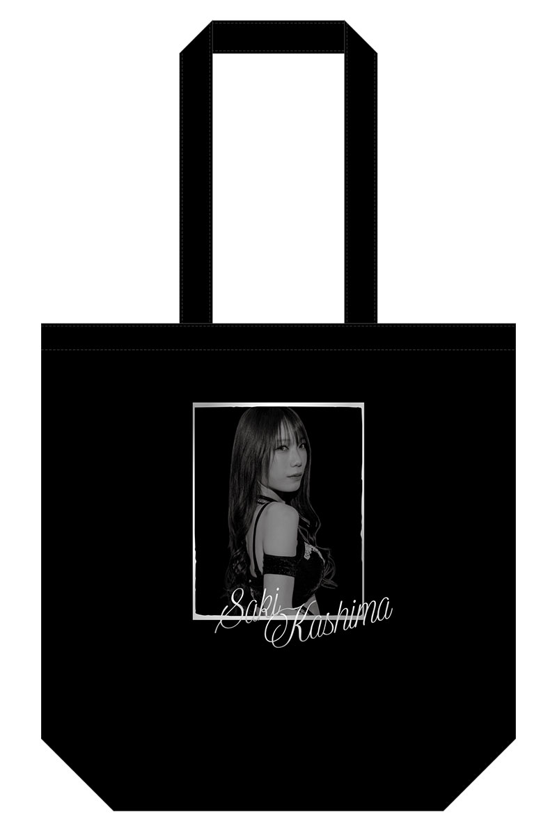 ブラックを基調とした落ち着いたボディに、モノクロで切り取られた鹿島沙希のビジュアルを配置。シンプルながらも存在感のあるデザインで、普段使いしやすいスタイリッシュな仕上がりです。さりげなく入ったサイン風ロゴが、ファン心をくすぐるアクセントに。