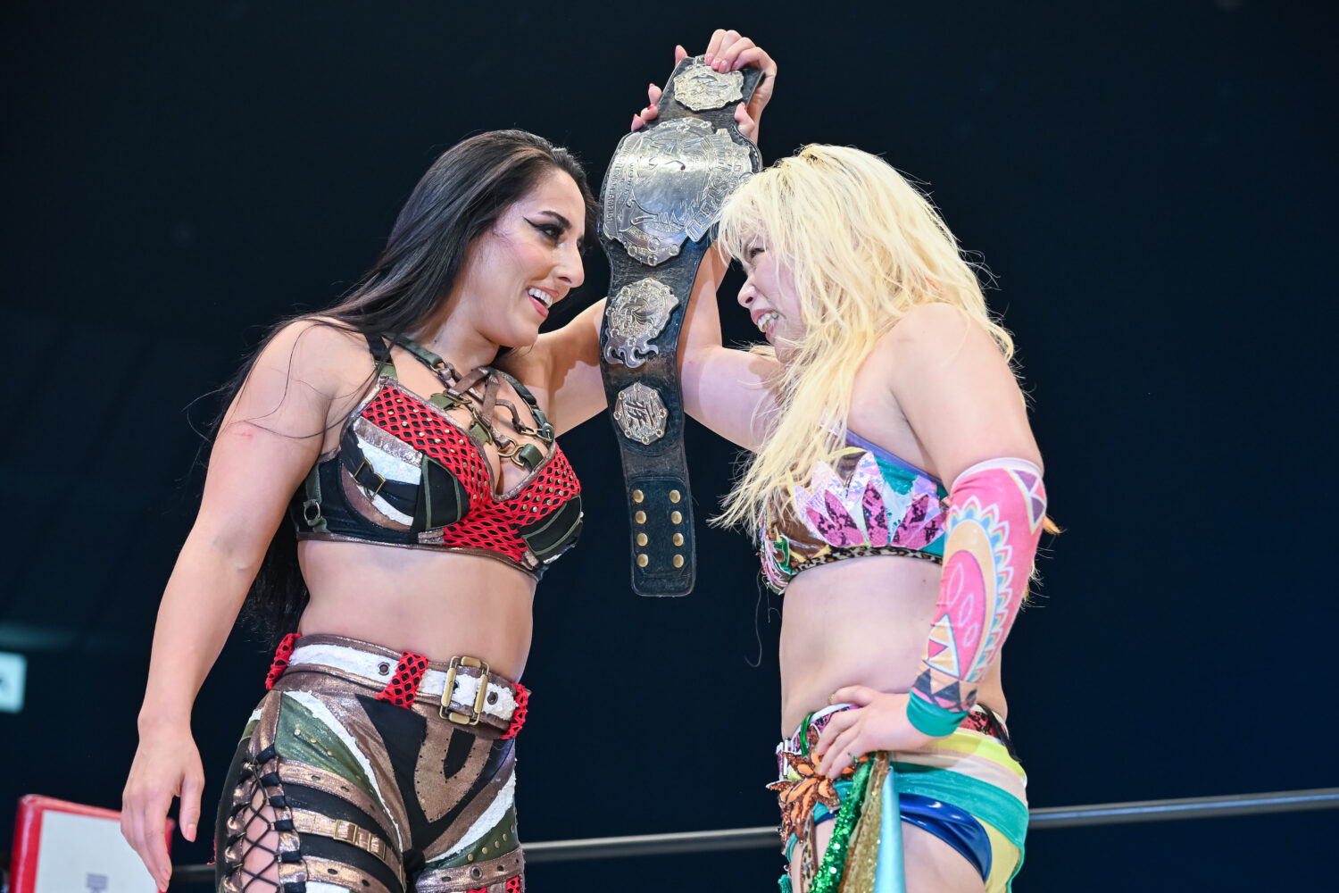 ハイスピード王者の水森由菜はなつぽいと組み、ジーナ&梨杏とのタッグマッチで激突する。4・26横浜アリーナ大会のハイスピード6WAYバトルで水森を沈めたジーナが、同王座への挑戦をアピール。正式決定には至っていないものの、水森も「あんたと(ベルトを)懸けてやるよ」と王座戦での迎撃態勢を整えている。