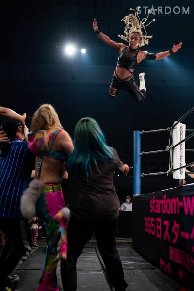 羽南が琉悪夏を指名すると吏南が出てくる。向後が前に出ると吏南とにらみ合い。向後が握手を求めると、吏南が困惑。そのままゴングが鳴ると吏南が向後の髪を引いてマットに叩きつける。吏南がコーナーに振ると向後がかわしてドロップキック。STARSが合体しまとめてボディープレス。向後がエルボー連打も鹿島が背後から髪を引いて吏南がドロップキック。大江戸隊が全員で向後を攻め込む。吏南が向後にヘアーホイップ。向後を「クソババア」呼ばわりし顔面を踏みつける。鹿島も向後を「クソババア」呼ばわりしボディースラム。琉悪夏が向後の顔面を攻撃。琉悪夏の串刺し攻撃を向後がかわしてボディーアタック。飯田のドロップキックがかわされ大江戸隊が3人で攻撃。しかし飯田は次々と打撃を打ち込む。琉悪夏がコンプリートショットからボディースラム、セントーン。鹿島が飯田をコーナーに追い込みニーアタック、フェースクラッシャー。ダイビングフットスタンプは飯田がかわしてジャンピングチョップ。羽南が串刺しドロップキック、払い腰。鹿島が返すと、羽南がダブルリスト狙い。鹿島が切り返し吏南がドロップキック。吏南と羽南でエルボーを打ち合う。吏南が卍固めから羽南を丸め込む。吏南の突進を向後が妨害し、羽南がダブルリストアームサルト。吏南が返すと羽南がフェイマサ―を決める。しかし大江戸隊のカットが間に合う。羽南は吏南を起こすが大江戸隊が串刺し攻撃。鹿島と琉悪夏がブレーンバスター、吏南がダイビングダブルニー。吏南は羽南にフィッシャーマン、ピンクデビル狙い。羽南が切り返し丸め込むと3カウントが入った。