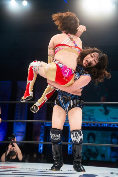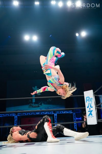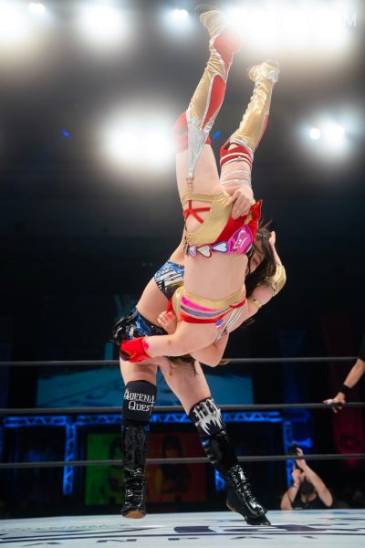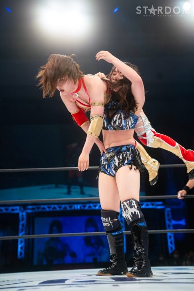 STARSの羽南&飯田沙耶&向後桃組と大江戸隊の鹿島沙希&琉悪夏&吏南組が6人タッグマッチで激突。若い選手が中心の6人タッグ戦で、不気味なのが鹿島の存在。STARSにとってはいつどこからでも丸め込んでくる起死回生が厄介だ。前日の熊本大会で双子姉妹対決を制した吏南がフューチャー・オブ・スターダム王者の姉・羽南に臨む図式も見どころのひとつとなる。