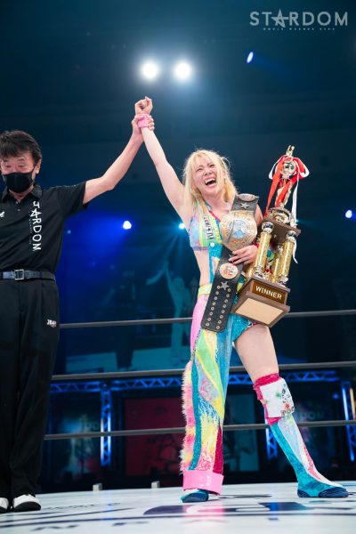 「ワンダー・オブ・スターダム5度目の防衛に成功しました。舞華…舞華ね。スターダムに来たときからすぐにフューチャーのベルトを巻いて、メチャクチャ気に食わなくて大嫌いな存在だった。でもね、ここまでやり合ってると本当に本当にかけがえのない存在になったというか。私のプロレスラー人生にとって本当に大切なかけがえのない存在になりました。ずっと私のライバルです」