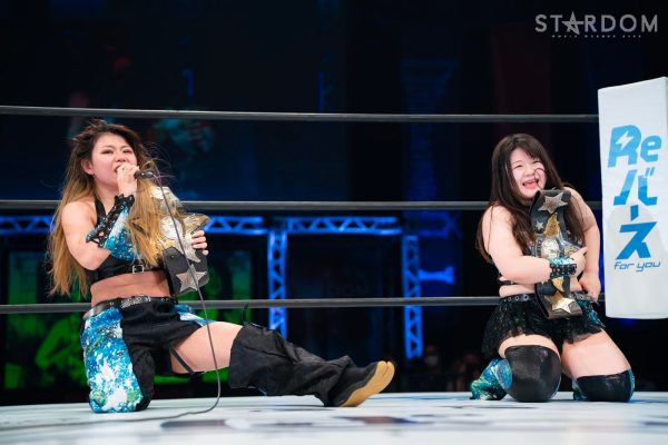 葉月「ベルトを取れたのは、となりにいるコグマのおかげでもあり、地元福岡の拍手、応援のおかげ。第22代のときは3度目の防衛戦で失ったベルト、今回はしっかり私たちが盛り上げて、誰も挑戦できないような、挑戦したくないようなタッグになっていきたいと思います」