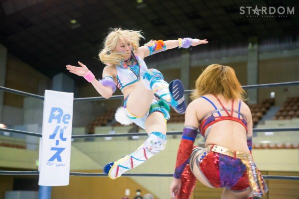 Koguma, que se ofereceu para ser o iniciante, indicou Kashima Saki. Kashima não respondeu à pose de urso de Koguma e o chutou, correndo para as cordas, mas Koguma a derrubou com uma chave de braço e a forçou a fazer a pose. Koguma e Hanan combinaram seus ataques. Kashima arranhou o rosto de Hanan. Ryuuka desferiu uma série de socos no corpo e um chute alto. Hanan acertou uma cotovelada, mas foi derrubada pelo chute alto de Ryuuka. Ryuuka provocou: "Vamos lá, campeã!", e Hanan desferiu uma série de cotoveladas. Kashima correu para as cordas e Hanan aplicou uma rasteira. Koguma acertou Kashima e Ryuuka com um golpe no corpo, depois pisoteou ambas e finalizou com um pisão. Kashima desviou do ataque de Koguma, seguido por um corbata e um chute alto. Ryuuka assumiu o controle e aplicou um golpe baixo no corpo. Koguma revidou o golpe no corpo de Ryuuka. Hanan aplicou um chute em Ryuka. Ryuka resistiu à chave de pulso dupla de Hanan e o socou no corpo. Ryuka o jogou no canto, mas Hanan pulou nas cordas e tentou um ataque no corpo, conseguindo uma contagem de dois. Ele imediatamente tentou uma chave de braço e depois outra, mas Ryuka girou para escapar, acertando um chute alto e um tackle de ombro. Ryuka aplicou um senton. Koguma aplicou um cutter em Ryuka, e Hanan o imobilizou com uma chave de pulso dupla, mas a contagem chegou apenas a dois. Ryuka escapou da chave de braço voadora de Hanan. Hanan correu para as cordas, e Ryuka atacou com um boxe, mas Koguma interrompeu a contagem com um laço. Ryuka aplicou um neck hanging bomb seguido de um freeze bomb, conseguindo a contagem de três