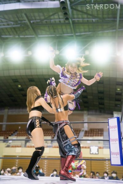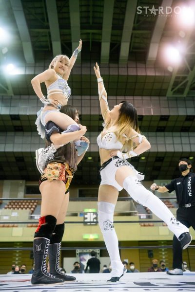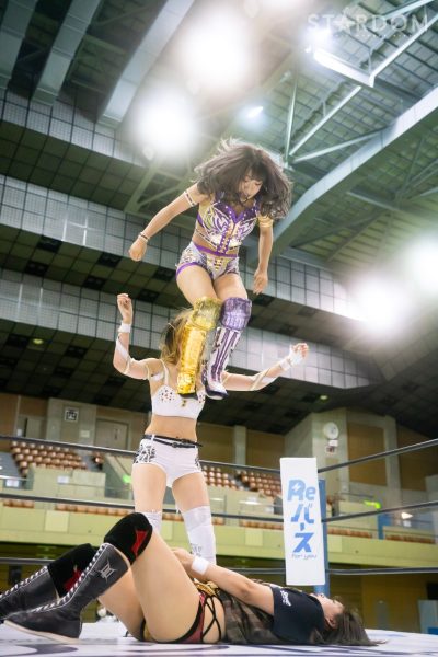 A luta entre Lady e Natsupoi começou. Quando Lady levantou a mão, Natsupoi não conseguiu alcançá-la, então Himeka a carregou nas costas. Enquanto passava por cima de Lady, Lady AZM . Então, por algum motivo, Lady AZM por baixo e carregá-la nas costas, mas ela não conseguiu se levantar, e DDM . Natsupoi aplicou um Yumiya Hold em Lady. Himeka aplicou um body slam em Lady e um camel clutch, ao qual Natsupoi respondeu com um dropkick. Natsupoi seguiu com um Flying Meyer e um dropkick na nuca. Lady acertou Natsupoi com um big boot e um giant swing. AZM acertou Natsupoi com um stab dropkick. Natsupoi acertou um back kick. AZM e Natsupoi leram os movimentos uma da outra e os esquivaram. Himeka aplicou um shoulder tackle em AZM Himeka jogou AZM AZM acertou um chute voador. Lady acertou Himeka com um chute alto, seguido por um giro de cobra e um quebra-pescoço. Lady e AZM executaram um salto mortal fantástico. Lady correu para as cordas, Natsupoi a ajudou com um dropkick, e Himeka aplicou um laço para um pinfall, mas AZM conseguiu interromper a tempo. Lady esquivou-se do laço de Himeka e correu para as cordas com um splitter de bambu, mas AZM contra-atacou com um laço. Finalmente, ela um JP Coaster para a contagem de três.