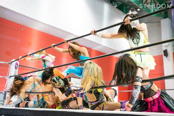 試合はリング内の選手に試合権利のあるノータッチルール。三姉妹が先発に立候補し、試合開始。しかし吏南はコーナーにとどまり、羽南と妃南で腕の取り合い。妃南がヘッドロックでグラウンドにもっていくと羽南が抜け出す。妃南が丸め込むと吏南がカット。羽南が吏南にドロップキック。STARSが吏南を捕まえトリオで攻撃、3方向からドロップキックを打ち込む。羽南がカバーするがQQがカット。QQがトリオで吏南を攻め込み妃南がカバーするがキッドがカット。妃南は吏南にボディースラム。吏南が返すと、妃南が突進。しかし桃が妨害し、キッドと桃でドロップキック。桃、キッドが次々と妃南にボディースラム。妃南が返すと大江戸隊がロープで捕獲。羽南が妃南にボディースラムを見舞いカバーの連続。岩谷が妃南にサッカーボールキック。岩谷と葉月が妃南をコーナーに追い込み顔面を踏みつける。葉月が妃南にセントーン、キャメルクラッチ。羽南がそこへドロップキックを食らわす。妃南が返すと、葉月がフェースロック。妃南が葉月、岩谷、羽南に払い腰、桃とキッド、吏南にも払い腰で叩きつける。詩美と上谷がキッドと葉月に串刺し攻撃からドロップキック。キッドが上谷にコルバタ、619、その場飛びムーンサルト。上谷が返すとキッドはストレッチマフラー。葉月がカットしキッドと上谷に串刺し攻撃、まとめてコードブレイカー。岩谷と葉月がアームホイップの競演、羽南を加えてQQと大江戸隊に顔面ウォッシュ、ドロップキック。葉月と上谷が二段蹴りの応酬。吏南が葉月を捕まえ上谷を呼び込む。しかしこれは罠で桃がドロップキック。詩美が桃にショルダータックル連発。桃が串刺しドロップキック、ミドルキック。10分経過。詩美と桃が打撃の応酬。岩谷が割って入り詩美にドロップキック、桃にトラースキック。詩美が岩谷にラリアット、桃が詩美にハイキック、岩谷に投げっぱなしドラゴン。詩美が桃にジャーマン岩谷が詩美にジャーマン。三姉妹がリングイン。吏南と妃南で羽南にストンピング。吏南と妃南が合体も羽南がかわして吏南にドロップキック。妃南が羽南にバックブリーカー。羽南が返すと妃南がSTO。妃南は吏南を呼び込み羽南にダブルのブレーンバスター狙い。羽南がこらえるとまとめてボディーアタック。羽南は吏南に後方から飛びつく。吏南が返すと羽南はダブルリストの体勢。吏南がこらえて倒すとドロップキック。羽南をコーナーに追い込み大江戸隊で串刺し攻撃を狙う。羽南がかわして吏南を追い込み、大江戸隊がまとめて串刺し攻撃の餌食に。詩美と上谷が羽南をつかまえるが葉月と岩谷がドロップキック。STARSが3方向で一斉に場外弾。吏南がリングに戻され、STARSがフェースクラッシャーで合体。15分経過。羽南が吏南にブロックバスターホールドも妃南がカット。羽南は妃南を担ぎ上げダッシュするが詩美がカットし持ち上げ上谷が二段蹴り。QQがトリオで羽南にドロップキック。妃南が羽南をマットに叩きつけるが吏南がダイビングダブルニーでカット。妃南がコーナーに追い込まれ大江戸隊がトリオで攻撃。詩美と上谷が合体し相手を場外に追い出す。上谷がスワンダイブ式プランチャで飛ぶとキッドもケブラーダ。吏南がフィニッシュを宣言し妃南にピンクデビル狙い。桃が裏投げで援護し吏南はダイビングダブルニードロップ。しかし妃南の肩がなんとか上がる。吏南はピンクデビルを狙うが妃南が丸め込む。しかし羽南のカットが成功。羽南がダッシュもキッドに足を引かれる。キッドと桃が妃南に蒼魔刀の挟み撃ち。吏南がフィニッシュを宣言しピンクデビル。妃南が返せず吏南が3カウントをゲットしてみせた。