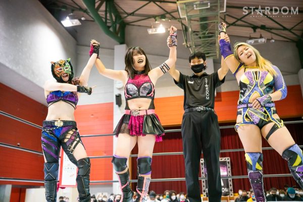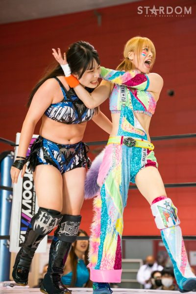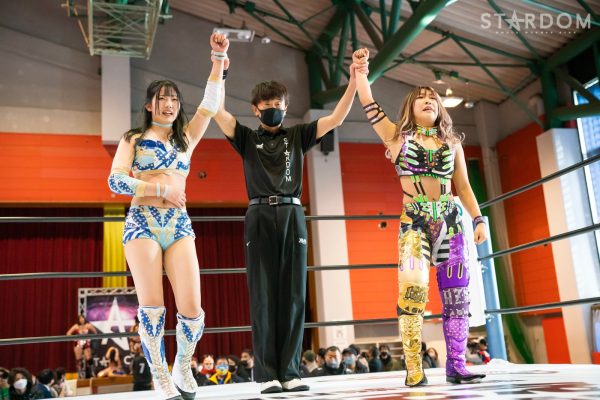 コズミックエンジェルズの中野たむ&なつぽい&月山和香組と大江戸隊の刀羅ナツコ&鹿島沙希&琉悪夏組による6人タッグマッチが発表されていたが、月山が負傷により急きょ欠場。“メルティア”中野&なつぽい組vs“BMI2000”ナツコ&琉悪夏組によるタッグマッチに変更となった。中野組はゴッデス・オブ・スターダム王者。ナツコ組は12・29両国で舞華&ひめか組、MIRAI&壮麗亜美組とゴッデス王座次期挑戦者決定3WAYマッチで激突するが、この試合は期せずして前哨戦となる可能性のある闘いとなった。メルティアは両国でタッグリーグ覇者の高橋奈七永&優宇組と防衛戦。変更となったこのカードがタイトルマッチへの予告編となるのか、それとも?