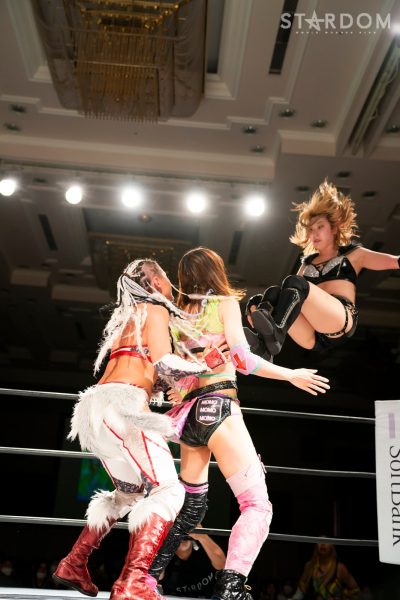 STARSの岩谷麻優&羽南&向後桃組とドンナ・デル・モンドのアーティスト・オブ・スターダム王者ジュリア&桜井まい&テクラ組が6人タッグマッチで激突。IWGP女子王者の岩谷、STRONG女子王者のジュリアの直接対決でおこなわれる。