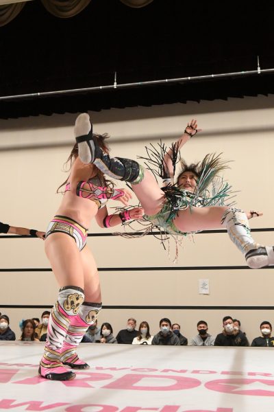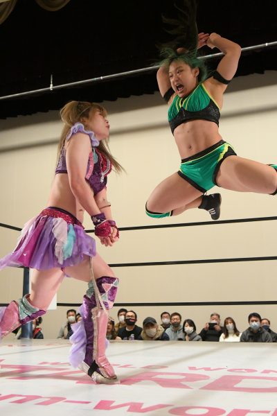 アーティスト王座挑戦を控える中野たむ&ウナギがSTARSの飯田&ルアカと対戦。STARS対決でもあり、STARSvsCOSMIC ANGELSでもある一戦。