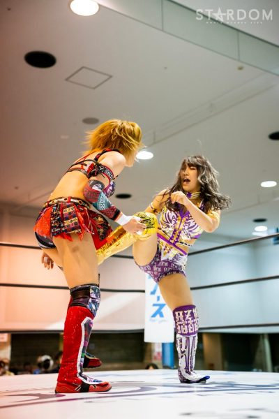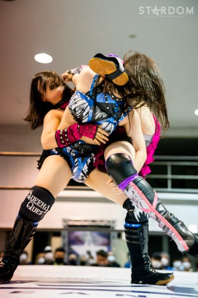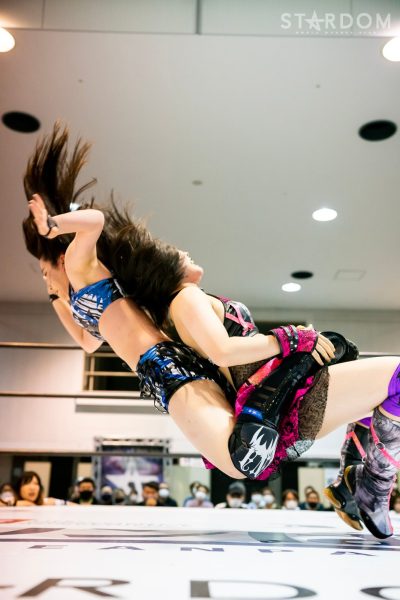 妃南と吏南の双子姉妹対決。前日の長崎ではクイーンズクエストvs大江戸隊の6人タッグマッチで対戦し、15分時間切れドロー。4・29大田区では妃南が初タイトルマッチで姉・羽南のフューチャー・オブ・スターダム王座に挑戦した。今大会では双子姉妹が一騎打ちで決着をつける!?