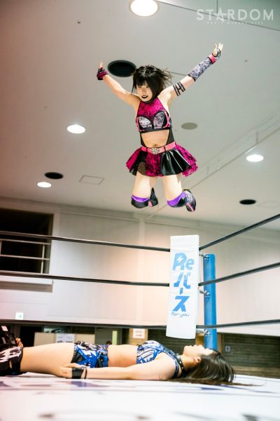 握手はせずにゴング。吏南から打ち込みエルボーの応酬。妃南が連打し吏南が崩れ落ちる。しかし吏南が髪を引いてマットに叩きつけるとストンピングからヘアーホイップ、コーナーに追い込み顔面を踏みつける。吏南は妃南を引き起こしてボディースラム。吏南が「こいよ」と挑発、妃南が向かっていくがマットに叩きつける。妃南は払い腰で叩きつけると、ボディースラム。吏南が返すと、妃南は逆エビ固めにもっていく。吏南がエスケープすると、ロープに振ろうとするが吏南が拒否して卍固め。妃南が逃れるが、すぐに吏南がドロップキック。吏南が串刺しダブルニーアタック。返した妃南がバックブリーカー。吏南が2発目を切り返してマットに叩きつけると、コーナーに上がる。妃南が追いつき抱え上げると、前方に叩きつける。吏南が返すと、妃南がマットに叩きつけるが2カウント。吏南が丸め込みも妃南がクリアー。妃南が抱え上げるが吏南が切り返してグラウンド卍固め。しかし妃南の足がロープに届く。吏南はフィニッシュを宣言してピンクデビルの構え。妃南がこらえるとジャックナイフ。丸め込みの応酬もどちらも譲らず。妃南の外道クラッチも2カウントどまり。吏南がノーザンライトからフィニッシュを宣言しダイビングダブルニードロップ。ギリギリで妃南の肩が上がると吏南は「終わり!」と叫んでピンクデビル。妃南が返せず、吏南の勝利となった。