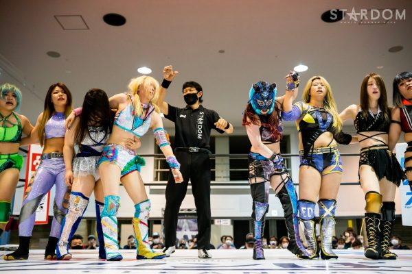 STARSからコグマが先発に名乗りを挙げクマポーズ。大江戸隊がずっこけるとリング上には鹿嶋。試合はコグマと鹿島でスタートする。コグマがクマポーズをとりながら接近すると鹿島が顔面をかきむしりコルバタ。ビッグブーツをコグマがかわして背中を踏みつけていく。鹿島が返すと、STARSが合体、連係で鹿島を攻め込む。仕上げは4方向からのドロップキックで挟み撃ち。しかし鹿島が返してみせる。コグマがキャメルクラッチにいこうとすると大江戸隊がカット。桃とキッドがドロップキックをかわして反対にドロップキック。鹿島がコグマにビッグブーツ、髪を束ねてヘアーホイップ。キッドがコグマを捕獲して大江戸隊全員で攻撃。キッドがコグマの背中にドロップキック。桃が自軍コーナーでコグマの顔面を踏みつける。桃はコグマの前に仁王立ち、挑発してミドルキックを叩き込む。つづいて琉悪夏がコグマの顔面を踏みつける。琉悪夏の突進をコグマがかわしてドロップキック。飯田が琉悪夏にドロップキック、逆水平の連打。琉悪夏とキッドが合体も飯田が逆水平の連打、桃と鹿島にも連打し一人で4人を相手にする。琉悪夏とキッドが逆転をはかると岩谷が加勢し飯田とダブルのジャンピングチョップ。琉悪夏が飯田にセントーンも2カウント。飯田が桃のミドルをかわしてエルボーアタック。葉月が桃にスワンダイブ式ミサイルキック、串刺しエルボーアタック、コードブレイカー、顔面ウォッシュ。桃が返すと葉月はフェースロックに移行。桃がエスケープすると、葉月が突進。桃がかわして背中にミドルキック。葉月と桃がエルボーの打ち合い。桃のミドルに葉月がビッグブーツで対抗。蹴りの応酬からロープワークで先の読み合い、コグマのアシストを得て葉月がコードブレイカー。葉月は桃をマットに叩きつけるが2カウント。10分経過。葉月がコーナーに上がると琉悪夏が妨害、鹿島が雪崩式フランケンシュタイナー、桃とキッドが蒼魔刀の挟み撃ち。桃が蒼魔刀を放つもコグマのカットが間に合う。乱戦からリング上は桃と葉月。替わったキッドが向かっていくが葉月がDDT。岩谷がキッドにドロップキック。キッドがコーナーに振るが、岩谷がかわしてドロップキック。岩谷の突進をかわしてキッドがクロスボディー、その場飛びムーンサルト。残り3分。岩谷とキッドがエルボーの応酬。キッドが崩れ落ちるが岩谷の突進をかわし大江戸隊が次々と串刺し攻撃。琉悪夏のコンプリートショットからキッドがDDT。しかし岩谷がクリアー。キッドはコーナーに上がるが葉月がカットし飯田がデッドリードライブ、コグマがミサイルキック、岩谷がフロッグスプラッシュ。しかし大江戸隊がカットする。大江戸隊が合体もSTARSが切り返しドロップキック。残り1分。岩谷と葉月がトペで競演を試みるも大江戸隊がボックスで阻止。琉悪夏が岩谷を捕まえキッドがコーナーからダイブ。残り20秒。キッドがムーンサルトプレスを決めるがSTARSがカットも、ここでタイムアップのゴング。試合は時間切れ引き分けに終わった。