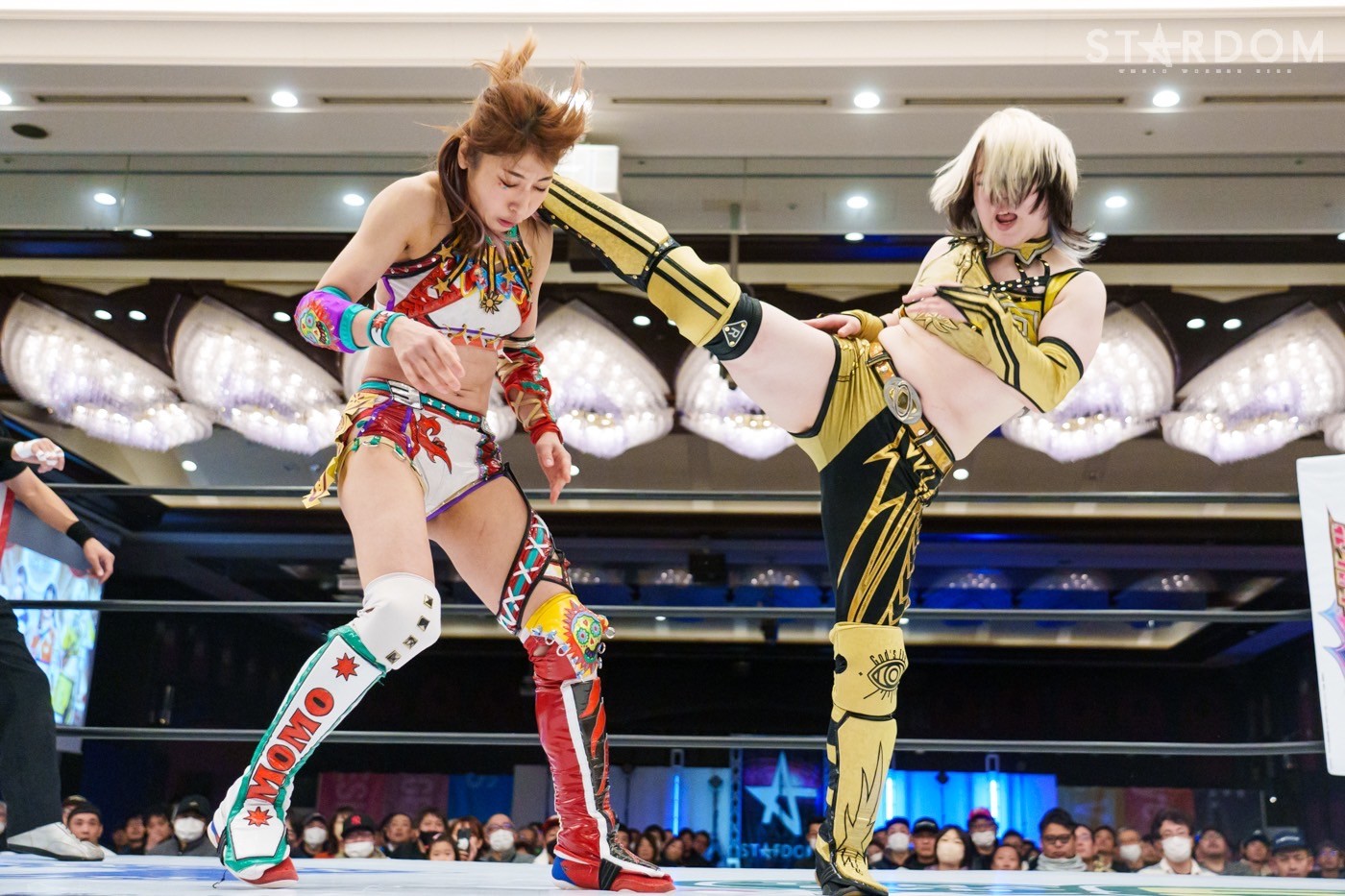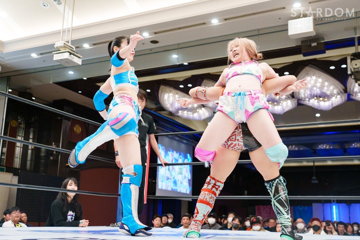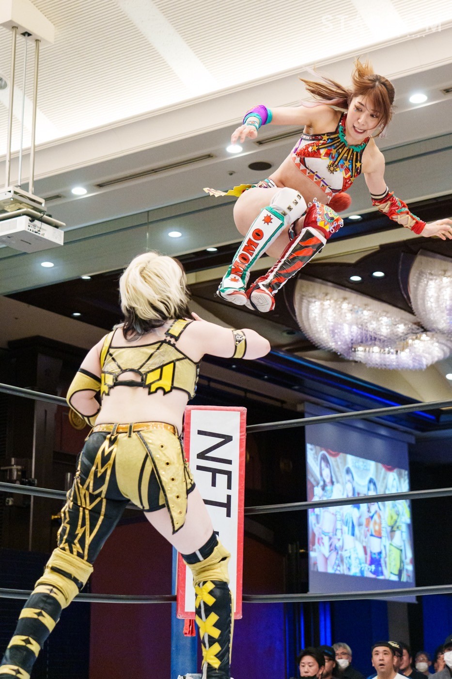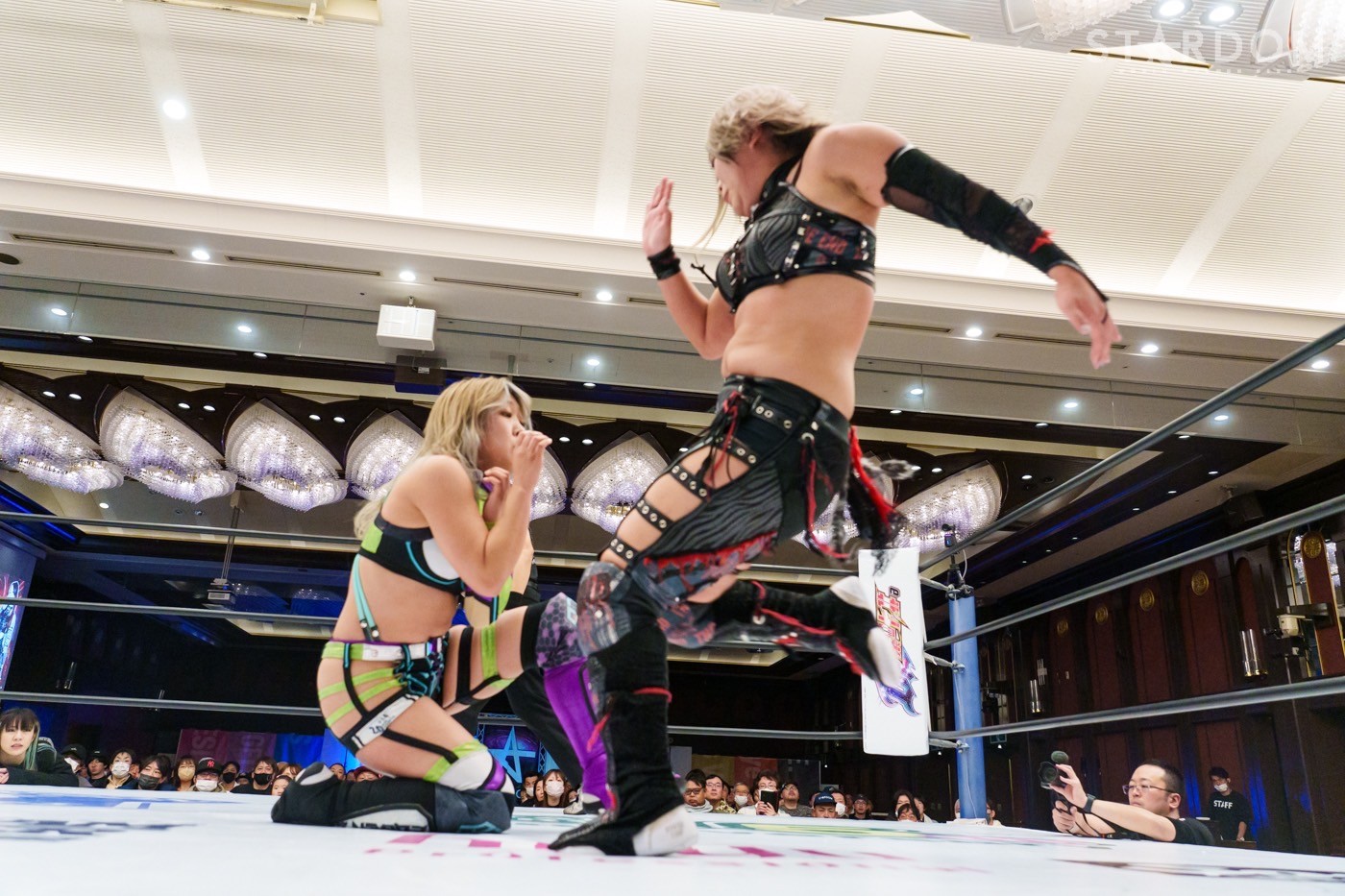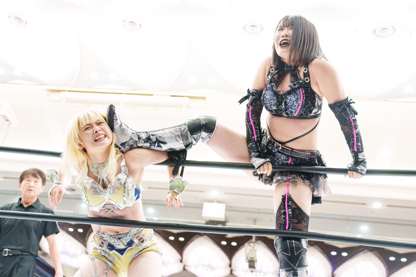 タッグリーグ公式戦を終えた岩谷麻優&向後桃組がタッグを継続し、八神蘭奈&浜辺纏組と対戦。岩谷&向後のピーチロックが若手チームに胸を貸す形で、特に向後がタッグリーグの成果を見せたい。