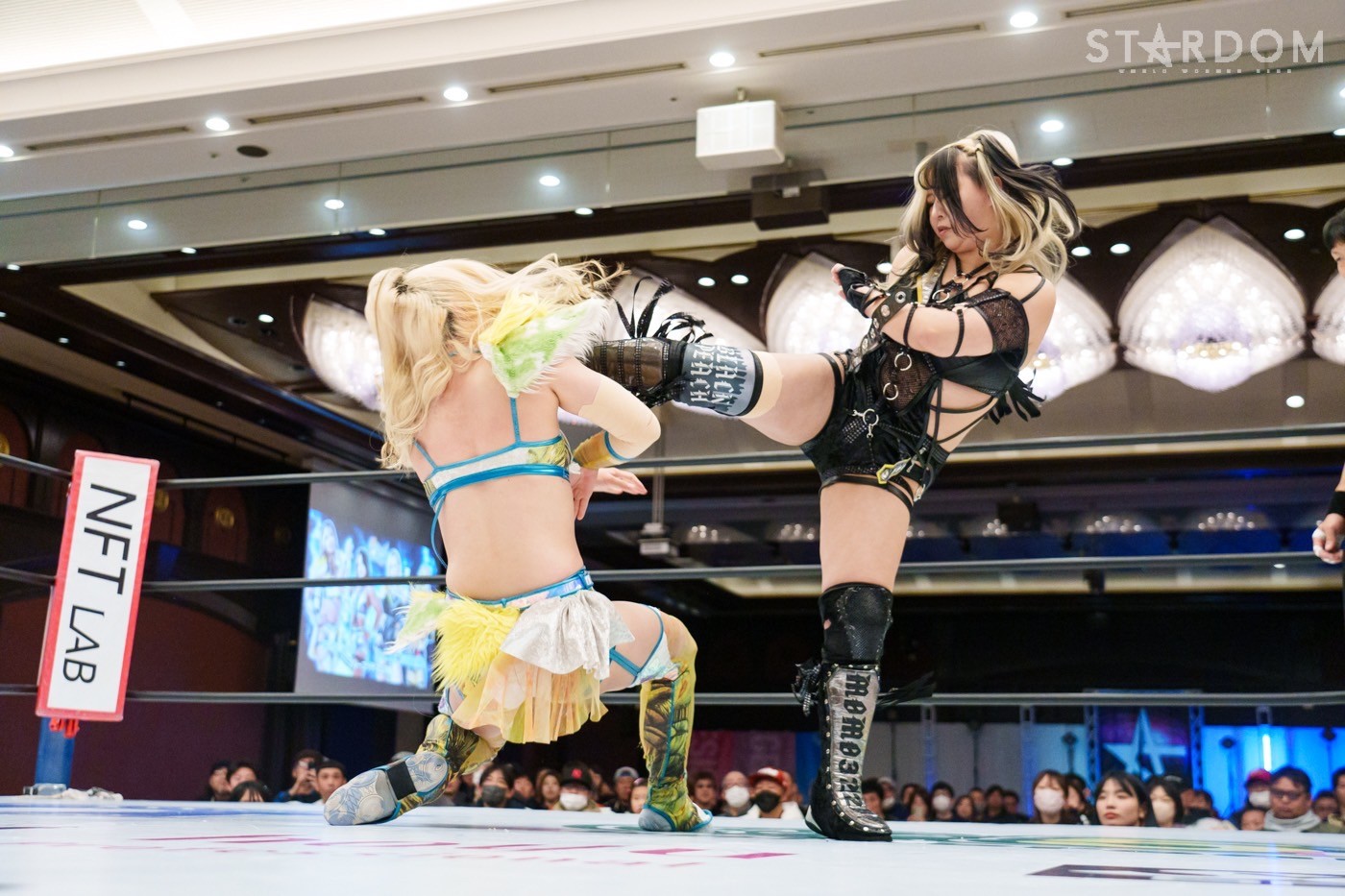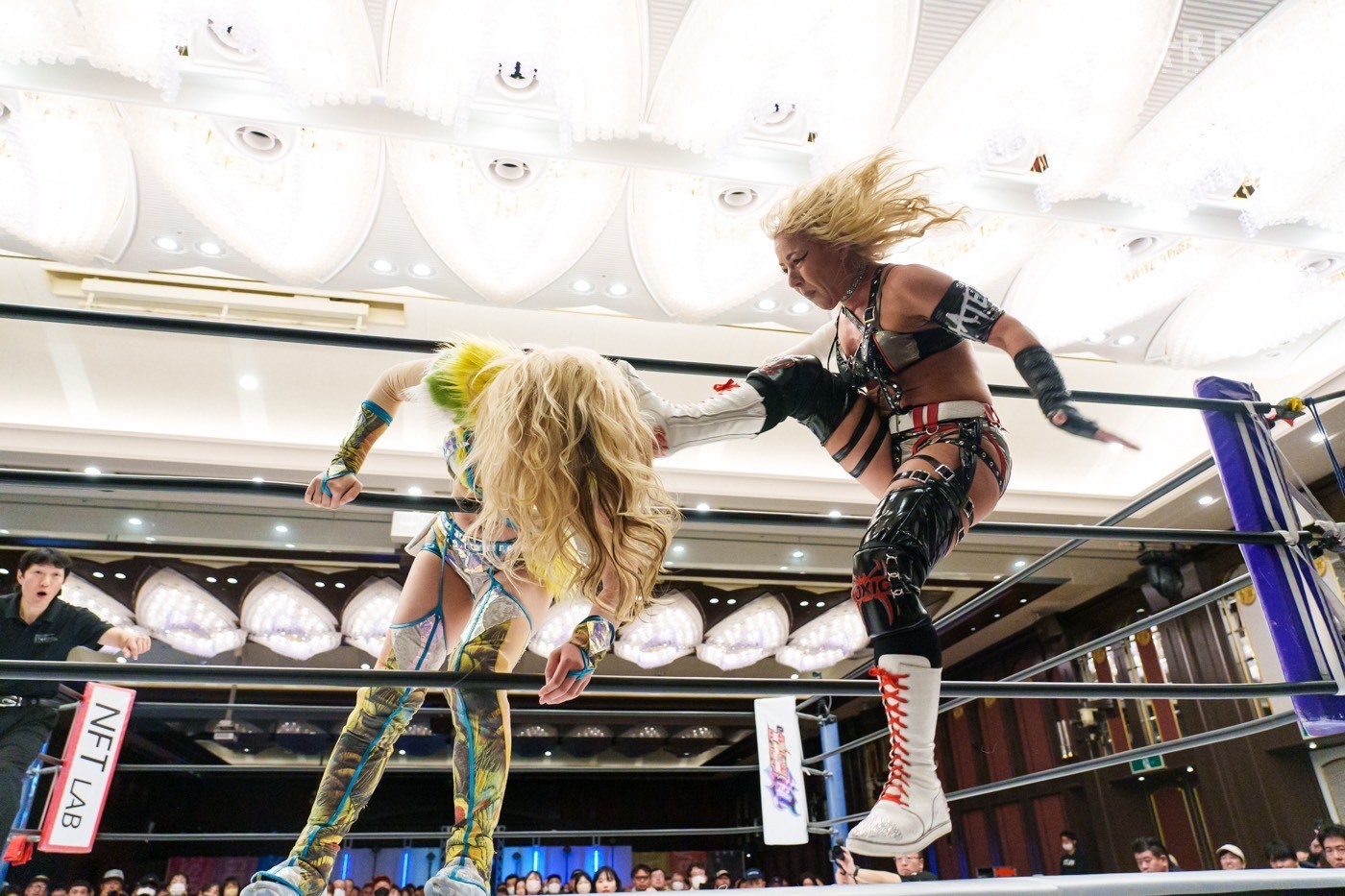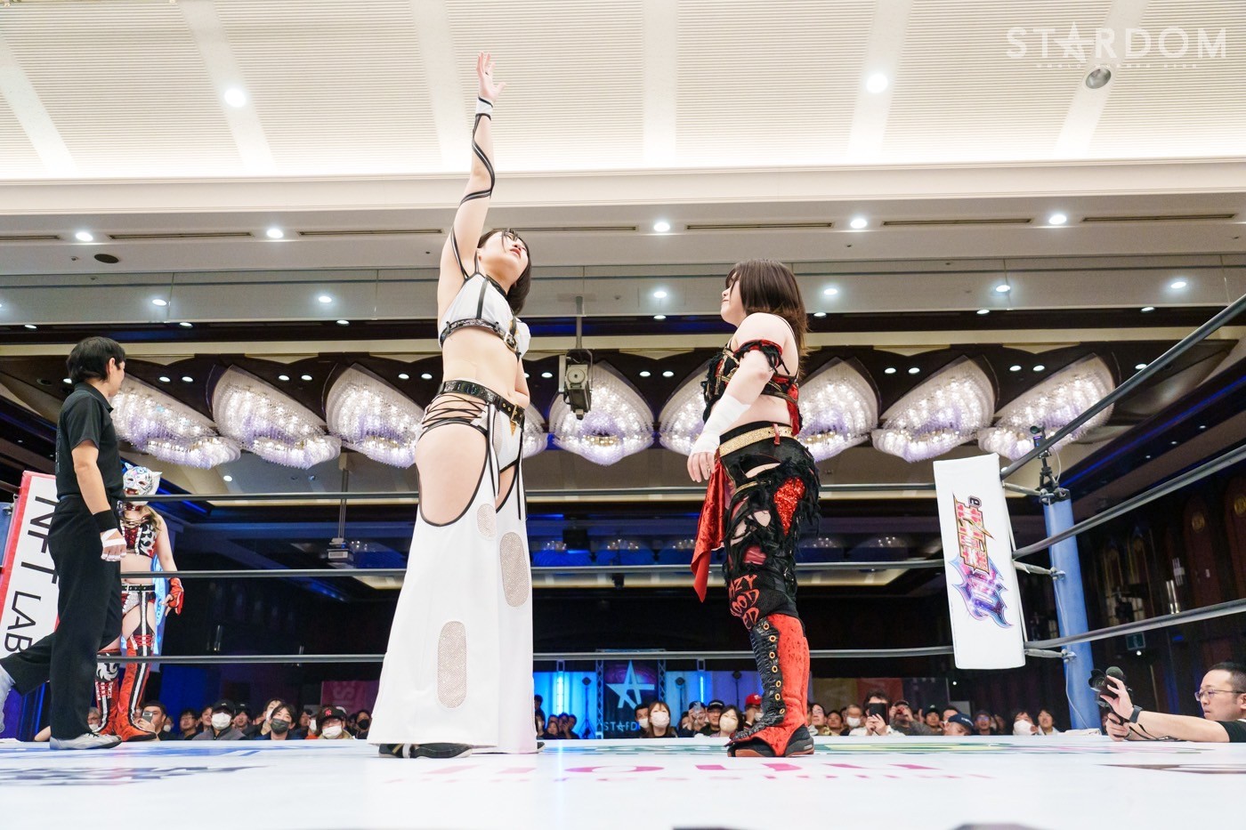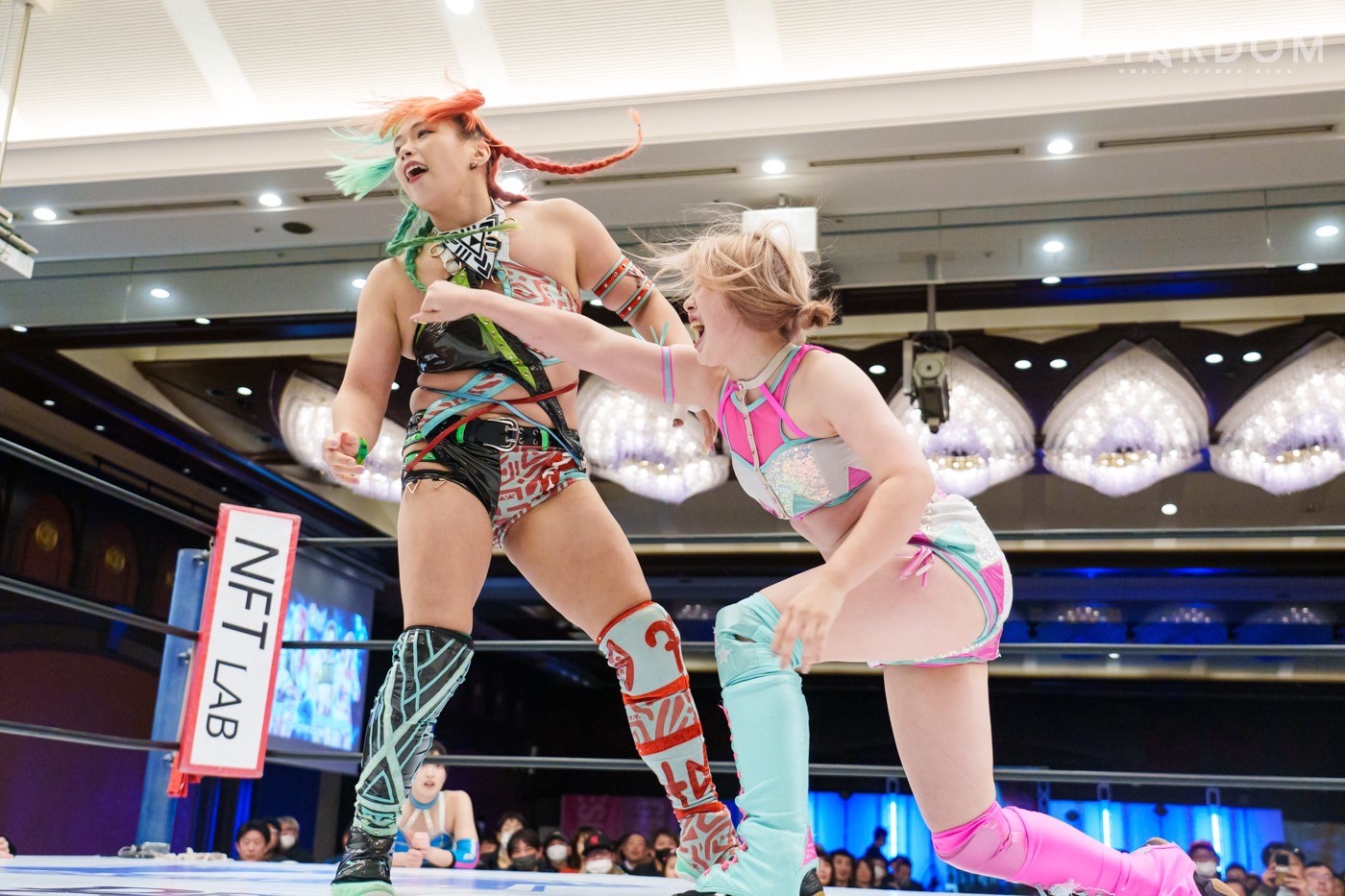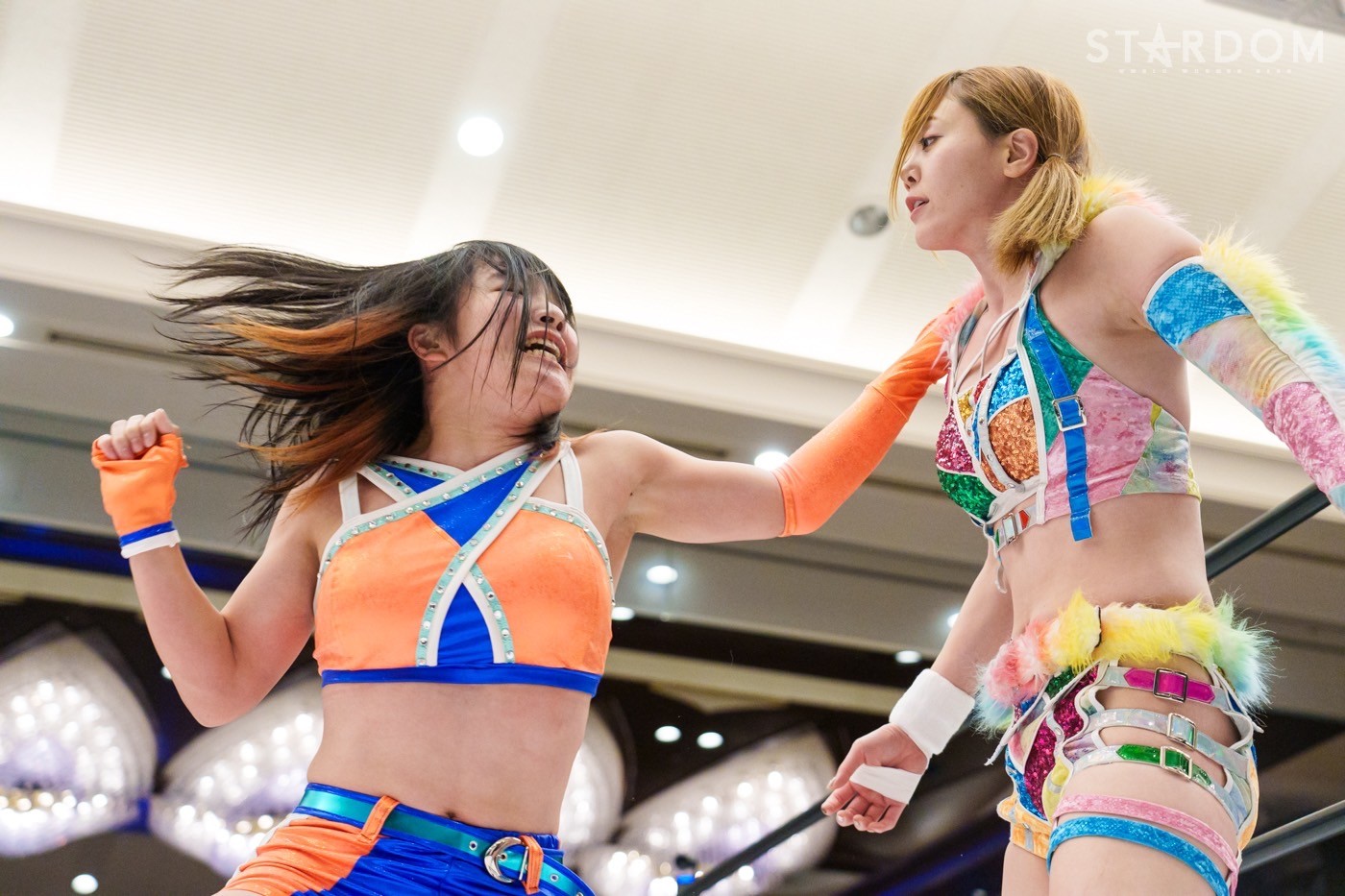 玖麗とHANAKOが視殺戦。2人の先発でスタートし、ロックアップでHANAKOが追い込む。すぐに玖麗が反転しエルボー連打。玖麗が手を引くがHANAKOは動かず。玖麗がさらにエルボー連打。HANAKOがドロップキックをかわしてストンピング。HANAKOの突進に中野が乱入してダブルの攻撃。玖麗のフットスタンプHANAKOが返すと、突進を止めてボディースラム。HANAKOは舞華を呼び込み、連係で玖麗を攻める。HANAKOは玖麗をボディースラムを連発。舞華が玖麗のエルボー連打を仁王立ちで受けて立つ。舞華が一発で玖麗を倒し、串刺しで突進。そこに玖麗がカウンターでドロップキック。中野が舞華にダイビングボディーアタック。HANAKOが突進を止めて舞華がラリアット。舞華とHANAKOをかいくぐり、中野がドロップキック。舞華が返してラリアット、中野はエルボーアタック。エルボーの応酬で中野が打ち勝つ。しかし、舞華がパワースラムで叩きつける。HANAKOが中野にショルダータックル、アルゼンチン。コーナーに叩きつけると串刺しボディーアタック、ニードロップ。中野が返すと、ブレーンバスター狙いを切り返してバックを取る。HANAKOが切り返すが、中野がネックブリーカー、側転ダブルニードロップ。玖麗がHANAKOへ串刺しドロップキック。引き起こすと中野を呼び込む。舞華が乱入し中野と玖麗を分断、HANAKOが玖麗にバックフリップ、アルゼンチン。中野がスピンキックでカットし、玖麗が飛びついてスリーパーホールド。なんとかHANAKOがエスケープ。玖麗はコーナーに上がりミサイルキック、ときめきスピア。HANAKOが受け止めラリアット。玖麗がかわして中野の突進とスピアが合体。玖麗はHANAKOにときめきカッターを決める。しかし、舞華のカットが間に合う。中野と玖麗が合体を試みるが舞華とHANAKOがブレーンバスターの競演。舞華はエプロンからリング下の中野にラリアット。HANAKOが玖麗にバックドロップ。決まったと思われたが玖麗が返す。玖麗がジャックナイフで丸め込むが舞華がカット。舞華とHANAKOが玖麗を持ち上げマットに叩きつける。HANAKOはアルゼンチンからJPコースター。3カウントが入りHANAKOが玖麗を破った。