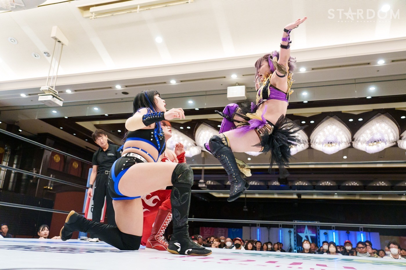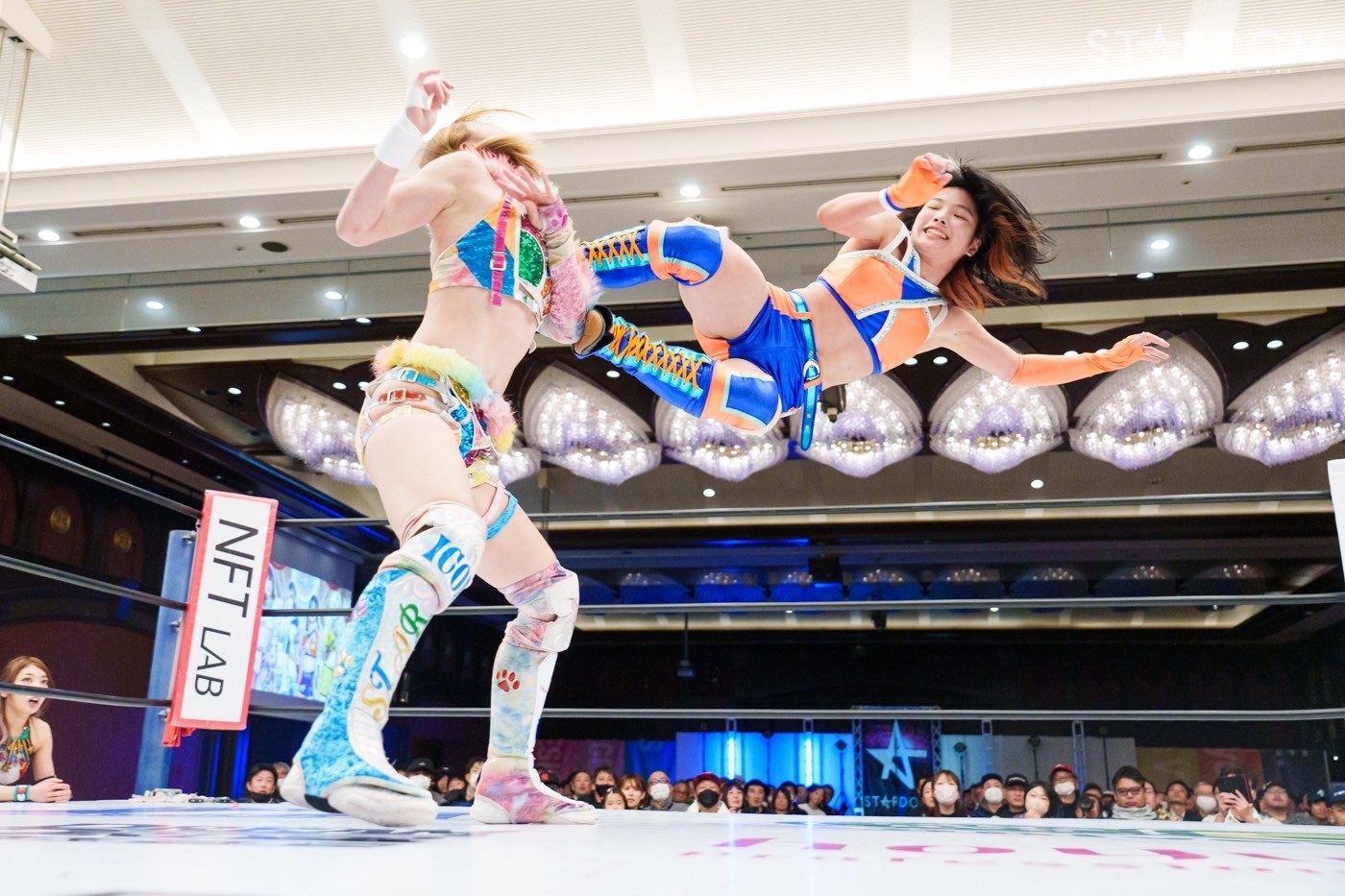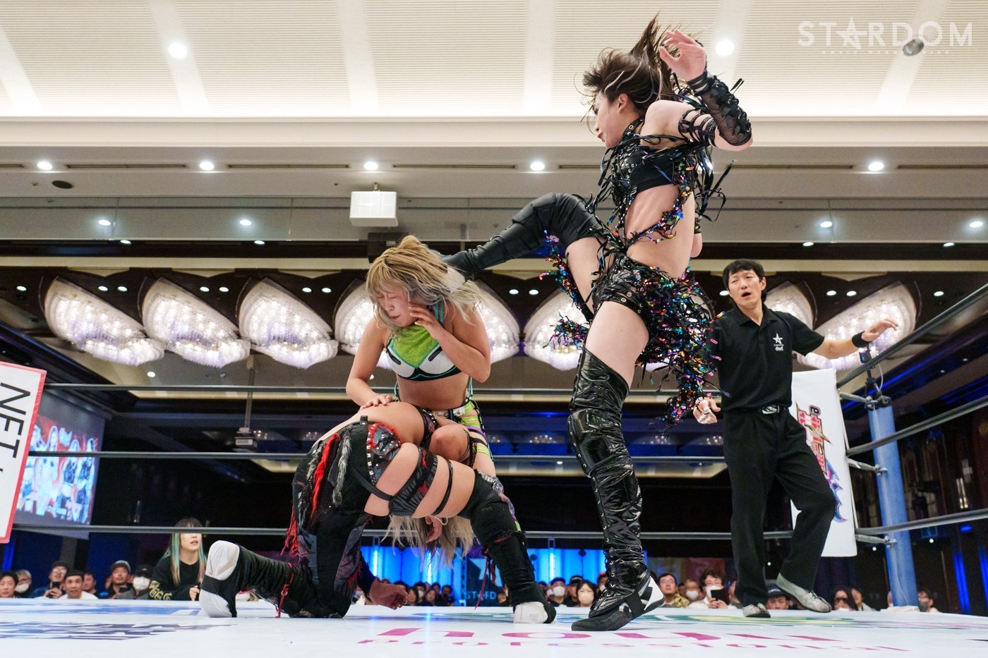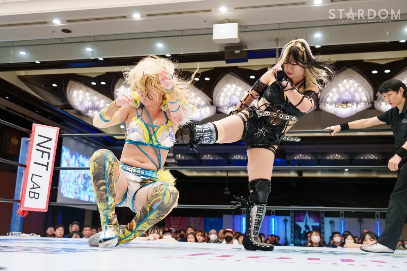 玖麗とHANAKOが視殺戦。2人の先発でスタートし、ロックアップでHANAKOが追い込む。すぐに玖麗が反転しエルボー連打。玖麗が手を引くがHANAKOは動かず。玖麗がさらにエルボー連打。HANAKOがドロップキックをかわしてストンピング。HANAKOの突進に中野が乱入してダブルの攻撃。玖麗のフットスタンプHANAKOが返すと、突進を止めてボディースラム。HANAKOは舞華を呼び込み、連係で玖麗を攻める。HANAKOは玖麗をボディースラムを連発。舞華が玖麗のエルボー連打を仁王立ちで受けて立つ。舞華が一発で玖麗を倒し、串刺しで突進。そこに玖麗がカウンターでドロップキック。中野が舞華にダイビングボディーアタック。HANAKOが突進を止めて舞華がラリアット。舞華とHANAKOをかいくぐり、中野がドロップキック。舞華が返してラリアット、中野はエルボーアタック。エルボーの応酬で中野が打ち勝つ。しかし、舞華がパワースラムで叩きつける。HANAKOが中野にショルダータックル、アルゼンチン。コーナーに叩きつけると串刺しボディーアタック、ニードロップ。中野が返すと、ブレーンバスター狙いを切り返してバックを取る。HANAKOが切り返すが、中野がネックブリーカー、側転ダブルニードロップ。玖麗がHANAKOへ串刺しドロップキック。引き起こすと中野を呼び込む。舞華が乱入し中野と玖麗を分断、HANAKOが玖麗にバックフリップ、アルゼンチン。中野がスピンキックでカットし、玖麗が飛びついてスリーパーホールド。なんとかHANAKOがエスケープ。玖麗はコーナーに上がりミサイルキック、ときめきスピア。HANAKOが受け止めラリアット。玖麗がかわして中野の突進とスピアが合体。玖麗はHANAKOにときめきカッターを決める。しかし、舞華のカットが間に合う。中野と玖麗が合体を試みるが舞華とHANAKOがブレーンバスターの競演。舞華はエプロンからリング下の中野にラリアット。HANAKOが玖麗にバックドロップ。決まったと思われたが玖麗が返す。玖麗がジャックナイフで丸め込むが舞華がカット。舞華とHANAKOが玖麗を持ち上げマットに叩きつける。HANAKOはアルゼンチンからJPコースター。3カウントが入りHANAKOが玖麗を破った。