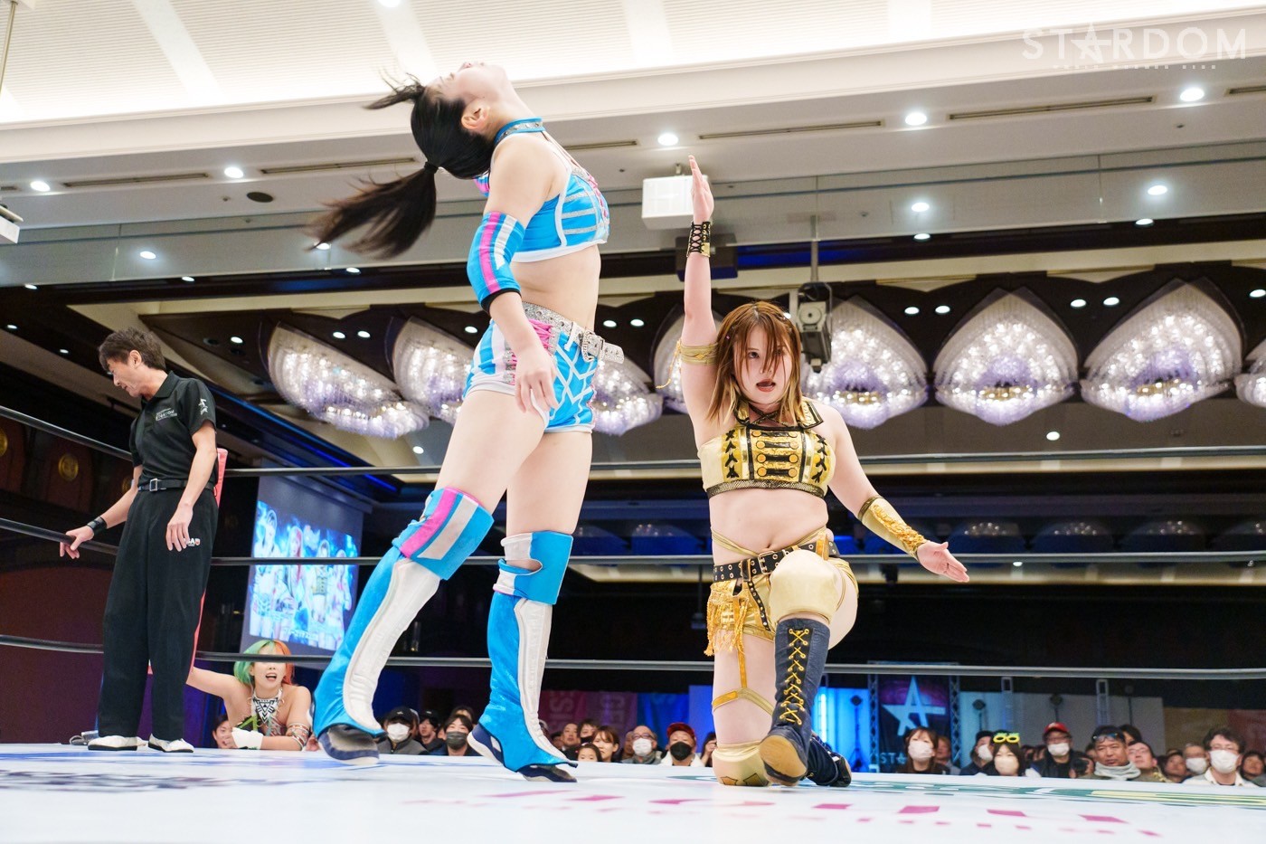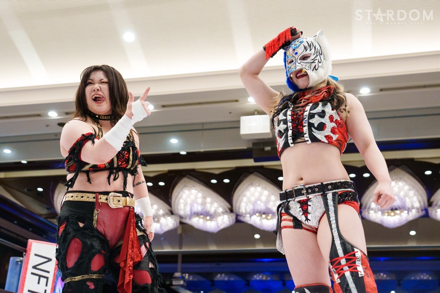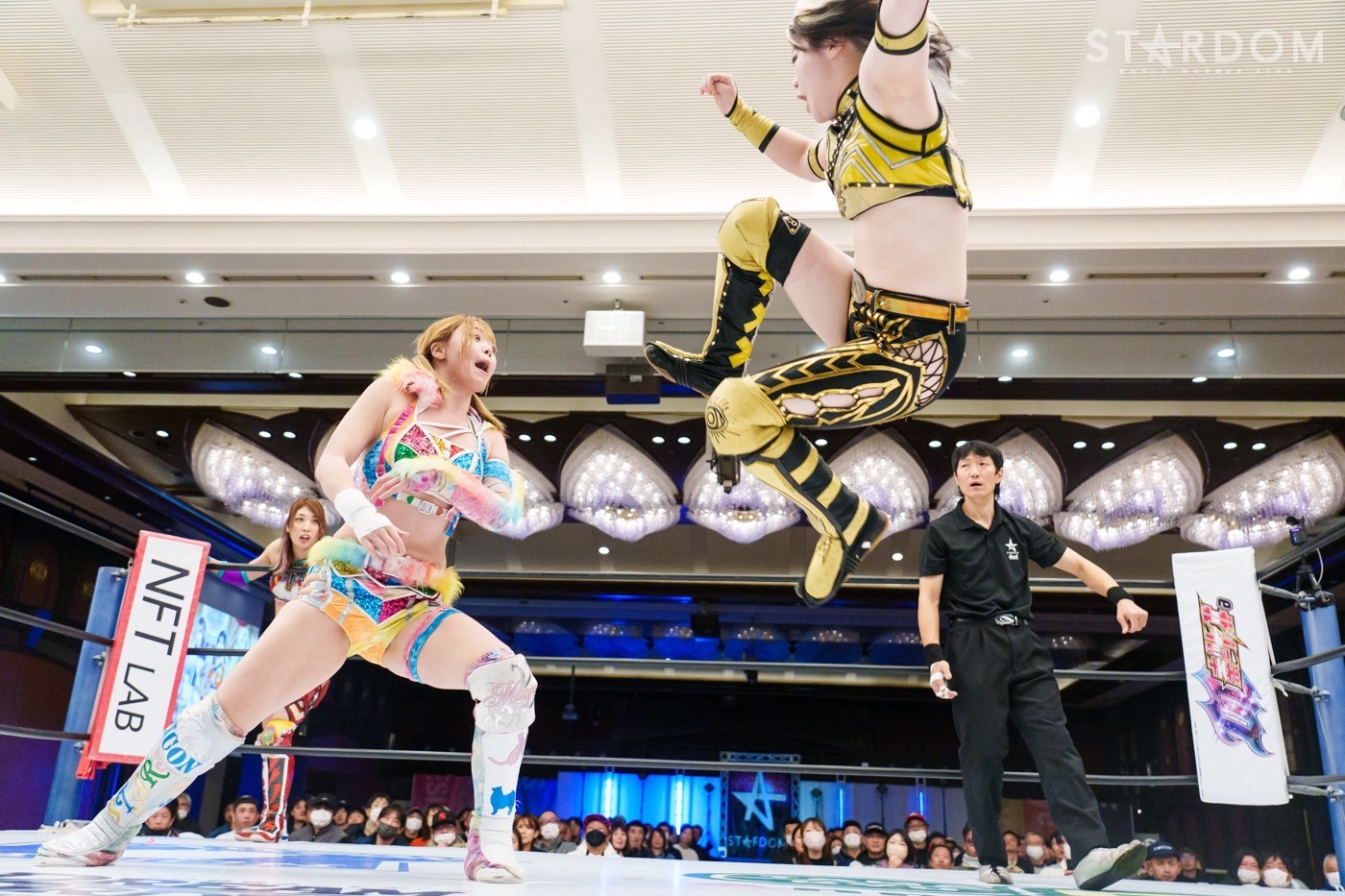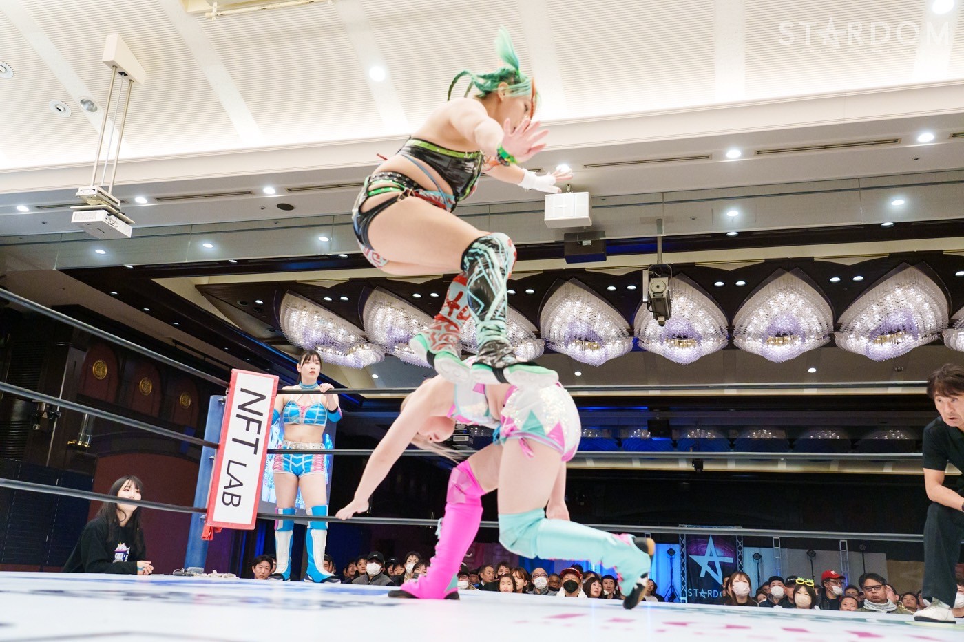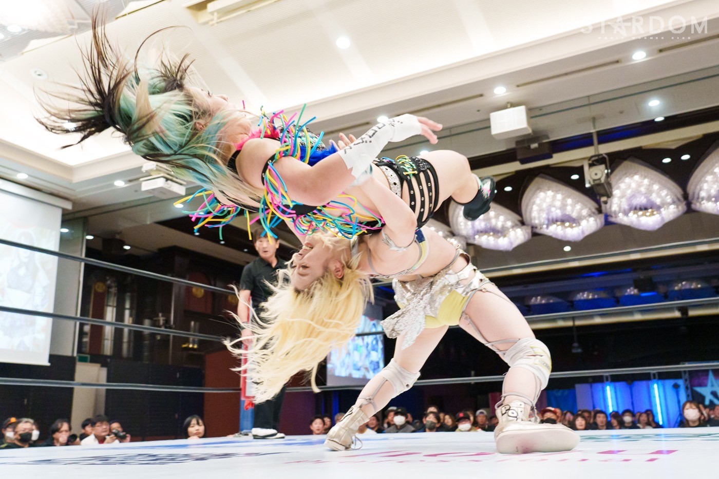 玖麗とHANAKOが視殺戦。2人の先発でスタートし、ロックアップでHANAKOが追い込む。すぐに玖麗が反転しエルボー連打。玖麗が手を引くがHANAKOは動かず。玖麗がさらにエルボー連打。HANAKOがドロップキックをかわしてストンピング。HANAKOの突進に中野が乱入してダブルの攻撃。玖麗のフットスタンプHANAKOが返すと、突進を止めてボディースラム。HANAKOは舞華を呼び込み、連係で玖麗を攻める。HANAKOは玖麗をボディースラムを連発。舞華が玖麗のエルボー連打を仁王立ちで受けて立つ。舞華が一発で玖麗を倒し、串刺しで突進。そこに玖麗がカウンターでドロップキック。中野が舞華にダイビングボディーアタック。HANAKOが突進を止めて舞華がラリアット。舞華とHANAKOをかいくぐり、中野がドロップキック。舞華が返してラリアット、中野はエルボーアタック。エルボーの応酬で中野が打ち勝つ。しかし、舞華がパワースラムで叩きつける。HANAKOが中野にショルダータックル、アルゼンチン。コーナーに叩きつけると串刺しボディーアタック、ニードロップ。中野が返すと、ブレーンバスター狙いを切り返してバックを取る。HANAKOが切り返すが、中野がネックブリーカー、側転ダブルニードロップ。玖麗がHANAKOへ串刺しドロップキック。引き起こすと中野を呼び込む。舞華が乱入し中野と玖麗を分断、HANAKOが玖麗にバックフリップ、アルゼンチン。中野がスピンキックでカットし、玖麗が飛びついてスリーパーホールド。なんとかHANAKOがエスケープ。玖麗はコーナーに上がりミサイルキック、ときめきスピア。HANAKOが受け止めラリアット。玖麗がかわして中野の突進とスピアが合体。玖麗はHANAKOにときめきカッターを決める。しかし、舞華のカットが間に合う。中野と玖麗が合体を試みるが舞華とHANAKOがブレーンバスターの競演。舞華はエプロンからリング下の中野にラリアット。HANAKOが玖麗にバックドロップ。決まったと思われたが玖麗が返す。玖麗がジャックナイフで丸め込むが舞華がカット。舞華とHANAKOが玖麗を持ち上げマットに叩きつける。HANAKOはアルゼンチンからJPコースター。3カウントが入りHANAKOが玖麗を破った。