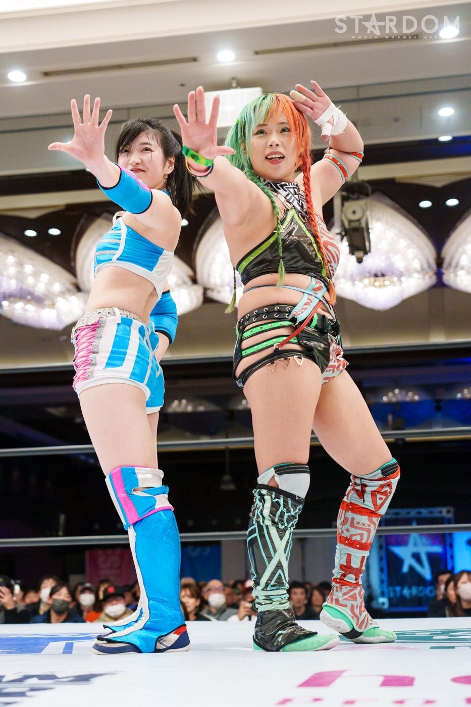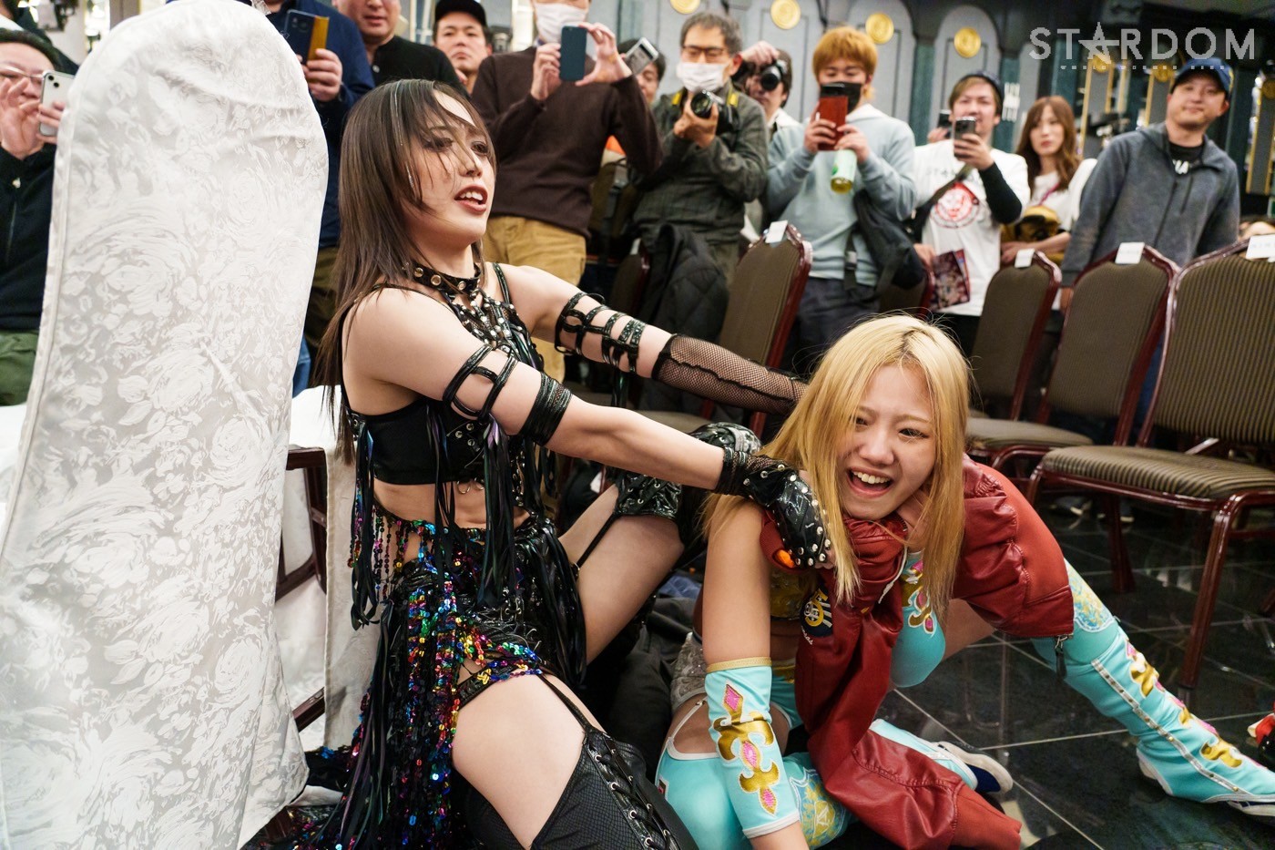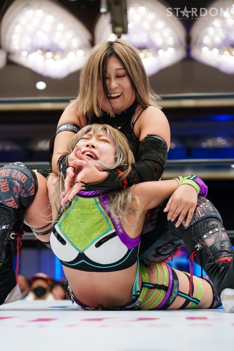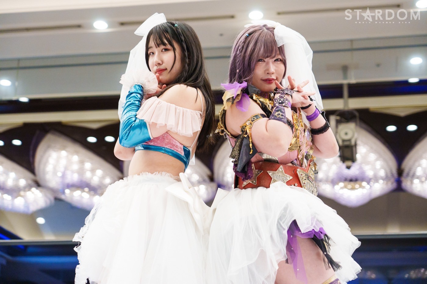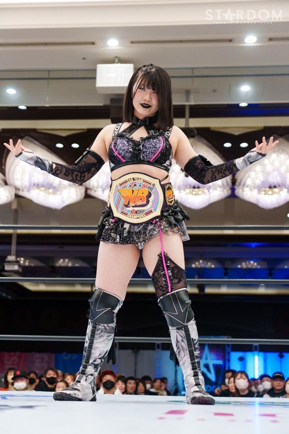 なつぽいと星来が手四つの構え。吏南が歩を進めるとロープワークに突入し、吏南がまとめてドロップキック。吏南がなつぽいにヘアーホイップ、星来も捕まえてヘアーホイップ。コーナーに追い込むと「2人まとめて、このクソババア!」と顔面を踏みつけていく。止めに入ったレフェリーには「うるせえ、クソジジイ!」。吏南はなつぽいをロープに固定し、背中にドロップキック。なつぽいが返すと、吏南とエルボーの打ち合い。なつぽいが「クソガキ!」とエルボー、吏南は「クソババア!」とやり返す。なつぽいがバックキック、吏南が突進を止めて卍固め。星来が割って入り、吏南の髪を引っ張る。星来はまとめてミサイルキック、吏南にラリアット。吏南がエルボー、払い腰で星来を叩きつける。星来が吏南にブレーンバスター、バックの取り合いになつぽいがトラースキック、星来がかわして吏南にヒット。星来がなつぽいを丸め込む。なつぽいが星来にネックブリーカー、ジャックナイフ。吏南がカットしなつぽいにビッグブーツ。星来が吏南にドロップキック。なつぽいが星来にポイ捨てジャーマン。吏南がリング下からなつぽいの足を引き、星来にビッグブーツ、フィッシャーマン。星来が返すと、なつぽいがまとめてダイビングボディーアタック。吏南が返すとなつぽいが丸め込みの連続、反転して吏南が上になるもカットされる。なつぽいに吏南がSTO、リバースブレーンバスターを決める。しかし、なつぽいの肩が上がる。吏南はピンクデビルの構えもなつぽいがフェアリングリングで叩きつけ3カウントを奪った。