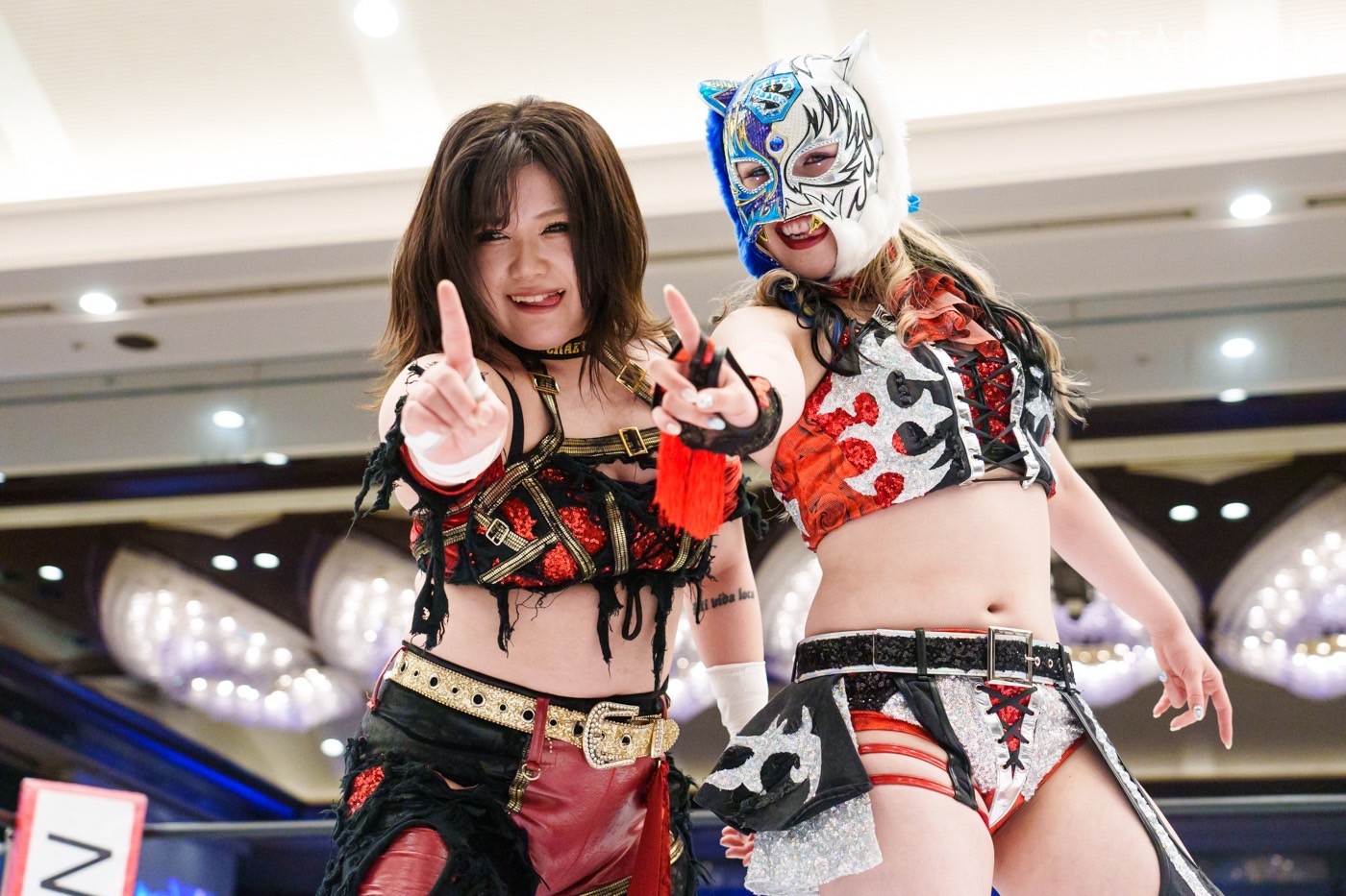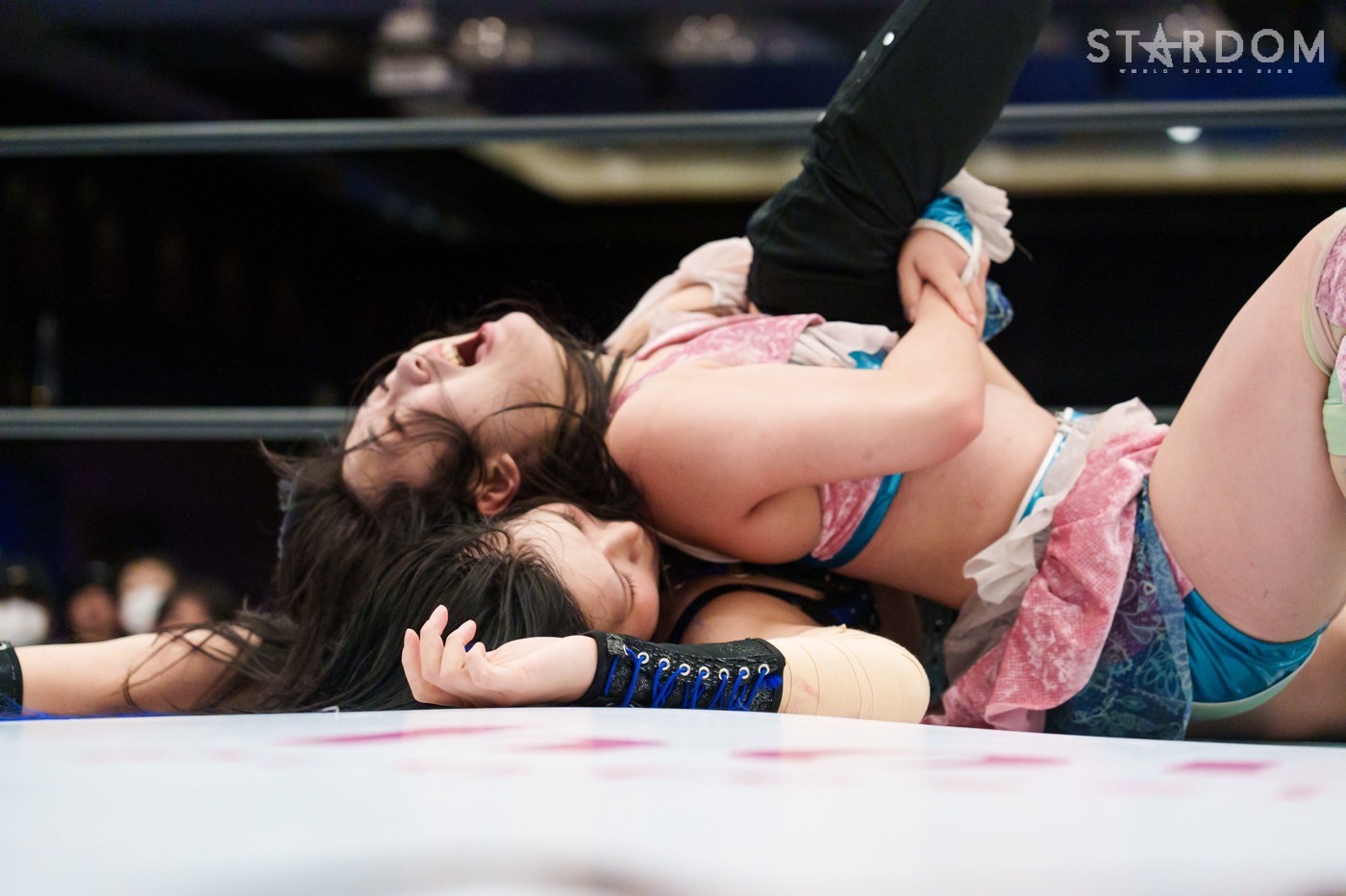 ともに2勝5敗で優勝争いからは脱落してしまった水森由菜&さくらあや組と月山和香&梨杏組によるタッグリーグ最終公式戦。決勝トーナメントへの進出こそなくなったものの、最後で勝つか負けるかは大違い。今後への影響も出てくるだろう。はたして、有終の美を飾るのはどちらか?