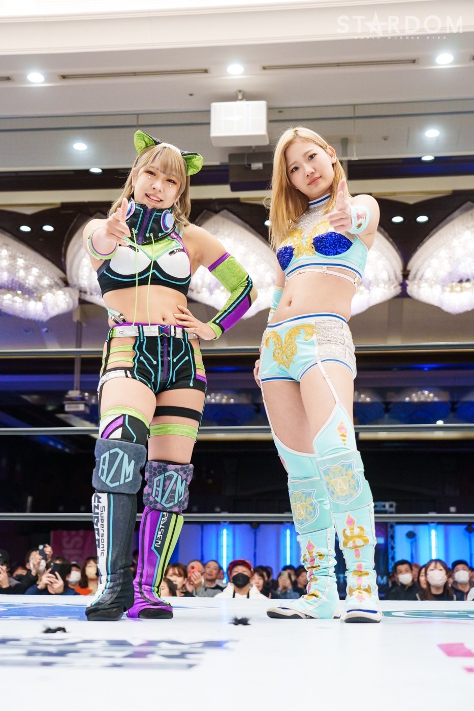 AZM&天咲光由組と小波&上谷沙弥組のタッグリーグ公式戦も、朱里&鹿島沙希組vs刀羅ナツコ&琉悪夏組同様、3勝4敗対決。しかも3位争いとあって、どちらも負けられない闘いとなった。このカードを含み5チームが並ぶ中で、最後に決勝トーナメントへのチケットを手にするのは?
