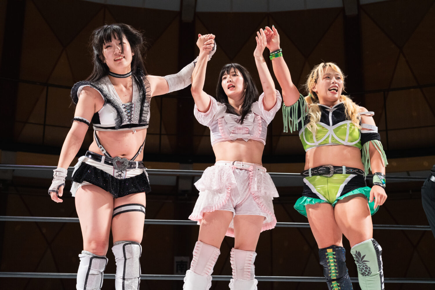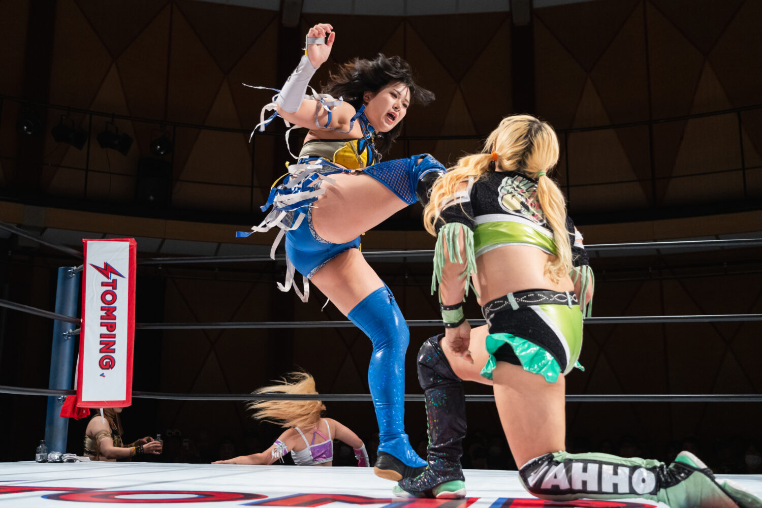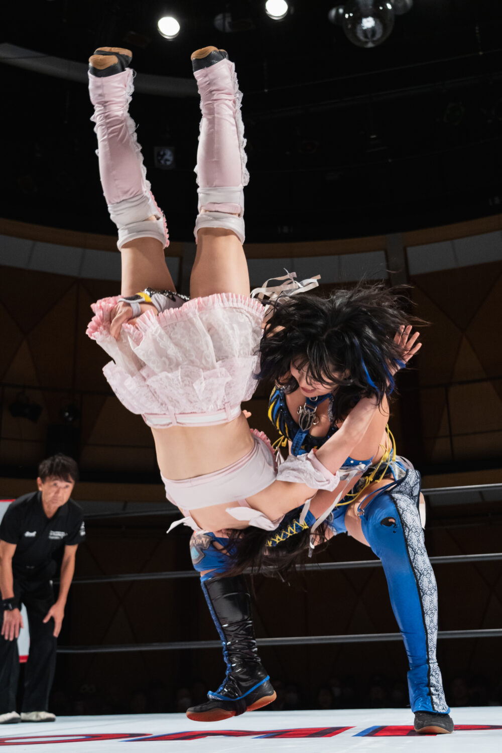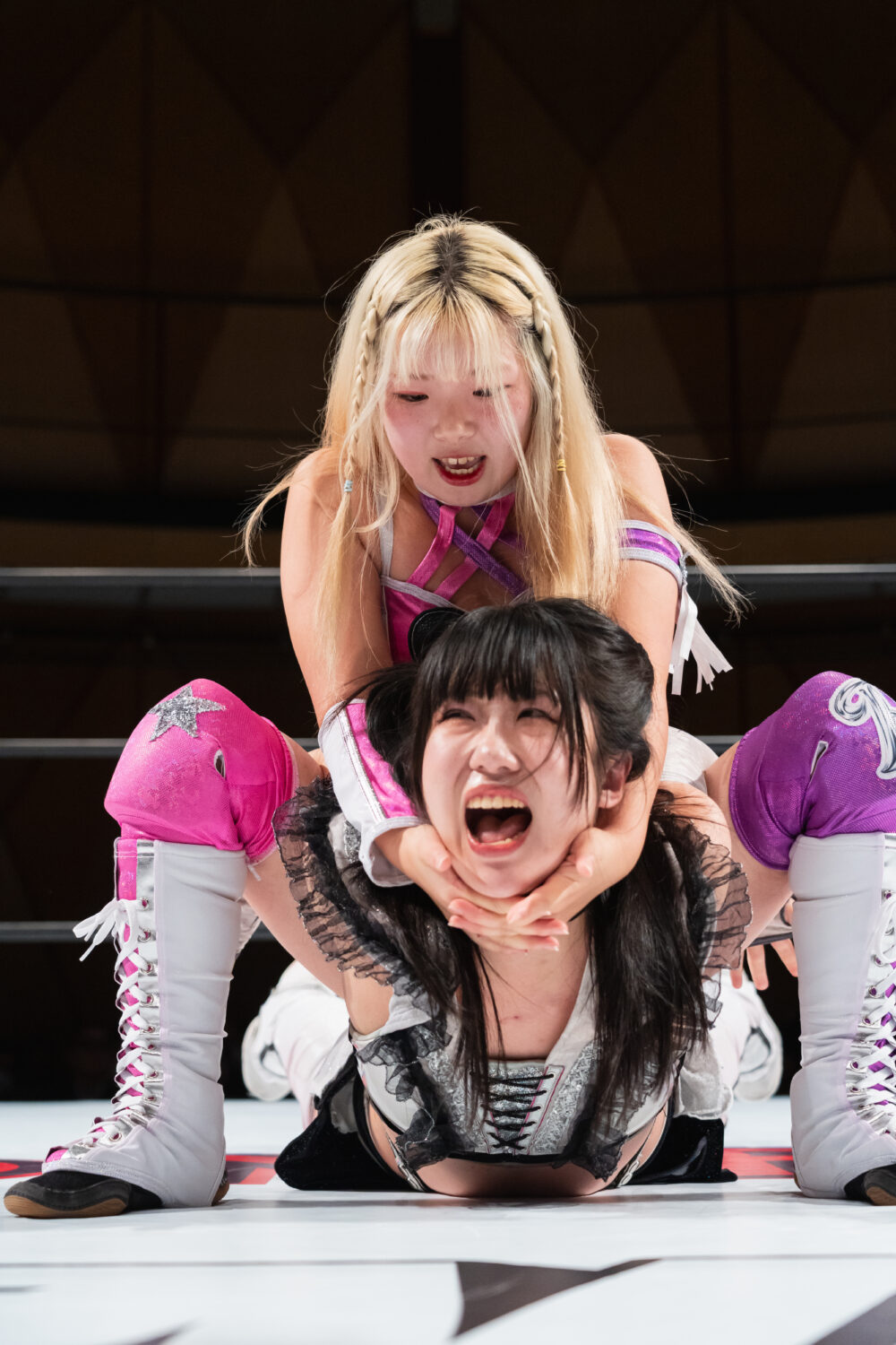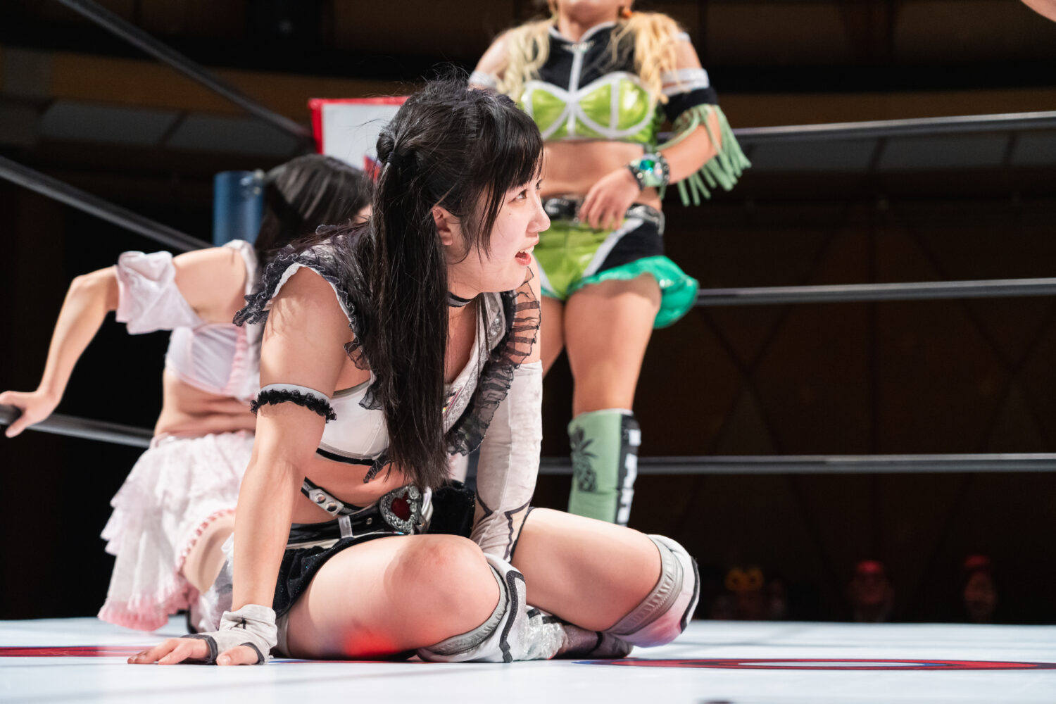HANAKOと玖麗の先発でスタート。ロックアップで組み合い、HANAKOが突き飛ばす。玖麗がロープに追い込みエルボー連打、ドロップキック。HANAKOがこらえてショルダータックルで吹っ飛ばす。HANAKOは玖麗にボディースラムを連発。梨杏が玖麗にフットスタンプ、キャメルクラッチ。呼び込まれた月山が、ロープ間を往復してエルボー。梨杏は玖麗の手を踏みつける。玖麗がカウンターのドロップキック、ダイビングエルボーアタックを梨杏に見舞う。水森が梨杏にショルダータックル、サイドからのドロップキックを3連打してラリアット。梨杏が返すと、水森の突進をかわしてコルバタ。水森がドロップキックをかわすと、梨杏が飛びつく。水森がこらえて、体重を乗せてカバー。