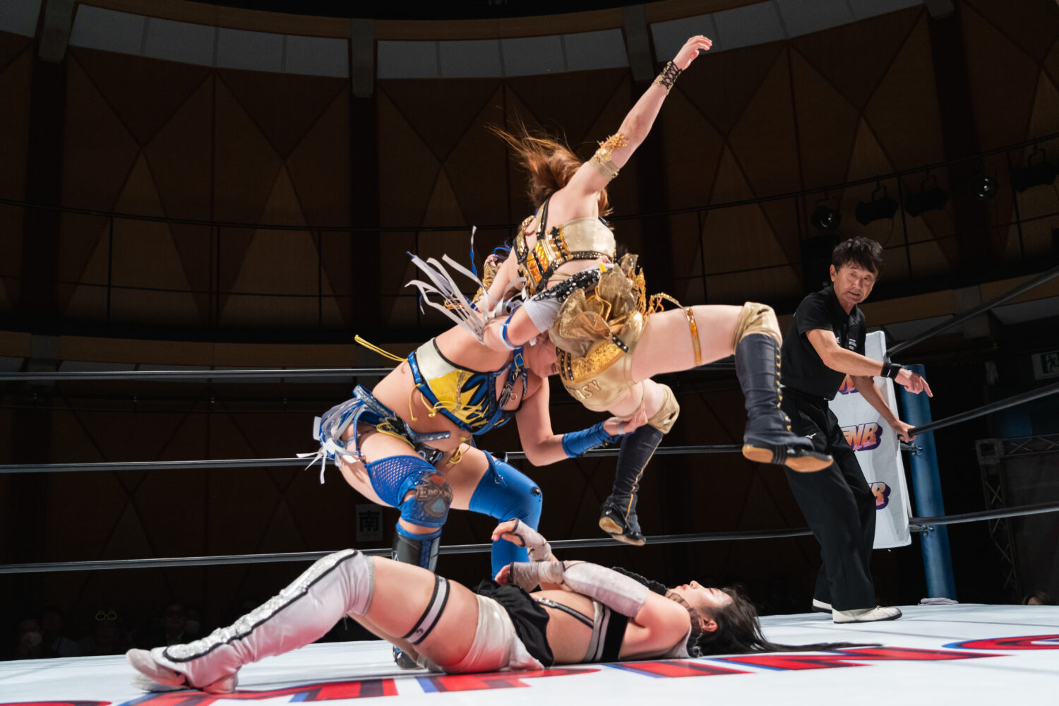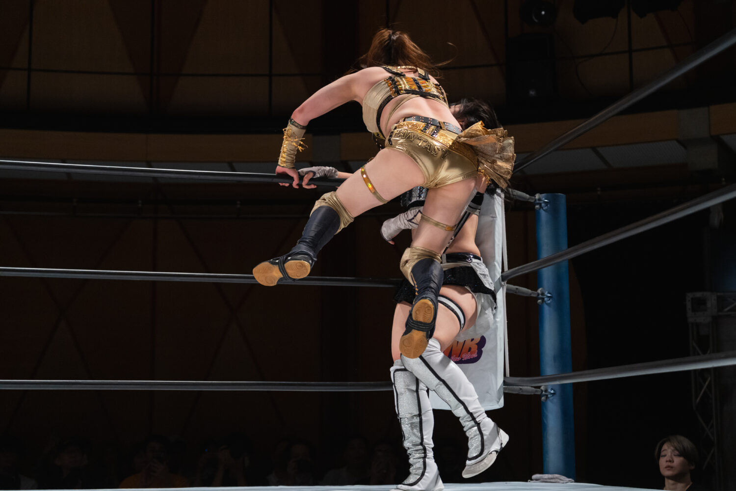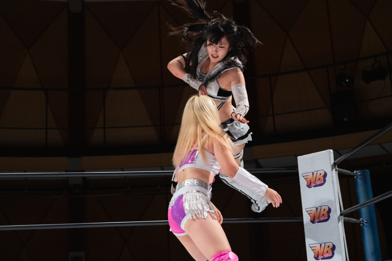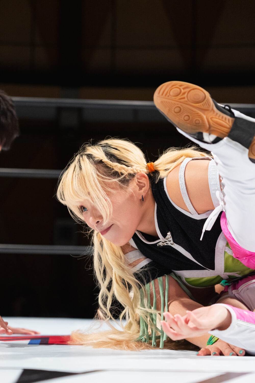HANAKOと玖麗の先発でスタート。ロックアップで組み合い、HANAKOが突き飛ばす。玖麗がロープに追い込みエルボー連打、ドロップキック。HANAKOがこらえてショルダータックルで吹っ飛ばす。HANAKOは玖麗にボディースラムを連発。梨杏が玖麗にフットスタンプ、キャメルクラッチ。呼び込まれた月山が、ロープ間を往復してエルボー。梨杏は玖麗の手を踏みつける。玖麗がカウンターのドロップキック、ダイビングエルボーアタックを梨杏に見舞う。水森が梨杏にショルダータックル、サイドからのドロップキックを3連打してラリアット。梨杏が返すと、水森の突進をかわしてコルバタ。水森がドロップキックをかわすと、梨杏が飛びつく。水森がこらえて、体重を乗せてカバー。