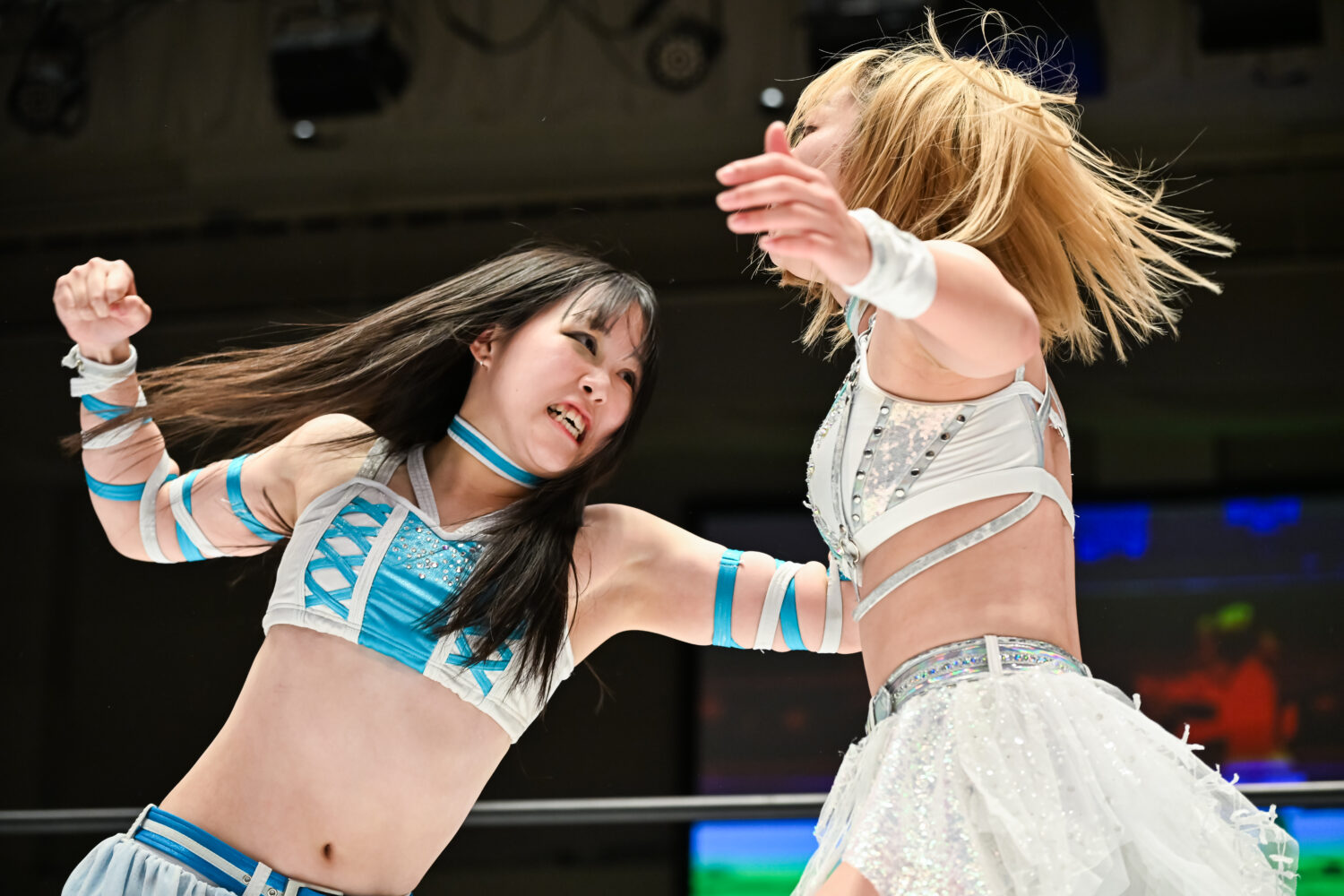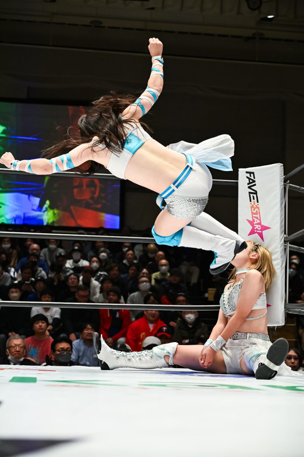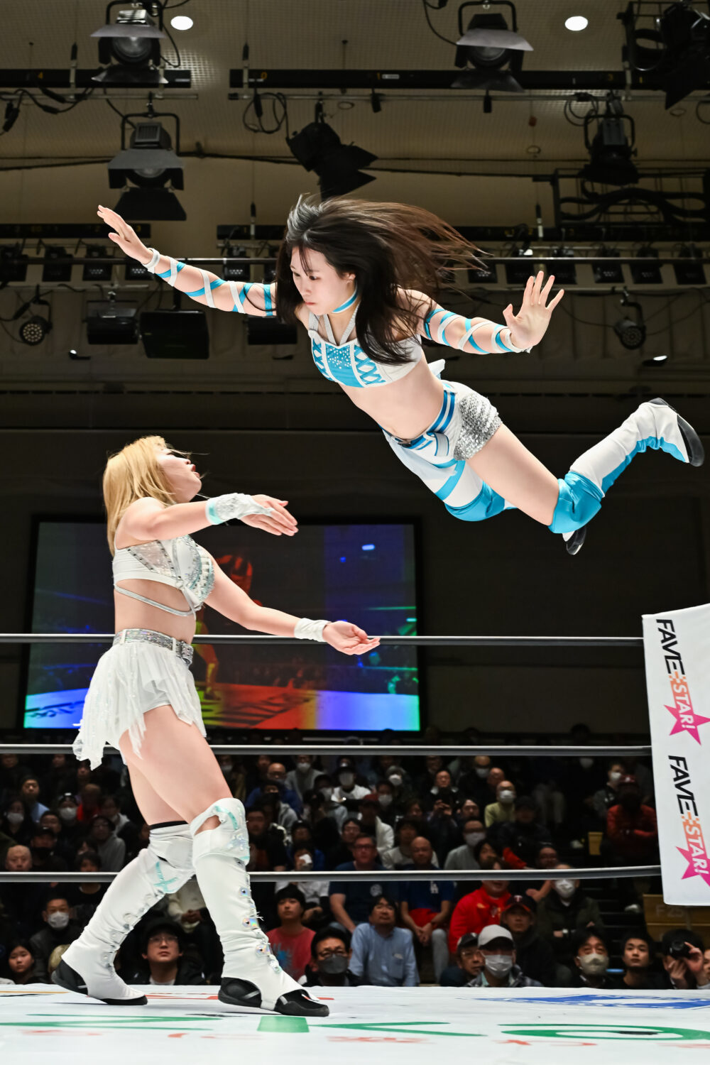 リープフロッグから儛島がドロップキック、真白がやり返し、チンロック。儛島がエスケープすると、真白がコーナーに上がり不可思議なダイブ。どうやらサミング攻撃のようでレフェリーが注意する。儛島がカバーを返すと、真白がストンピング連打。儛島が真白をかいくぐりドロップキックを串刺しをまじえて3連打。真白がDDTからドロップキック。儛島が返すと、エルボー連打で向かっていく。真白が返すと、儛島がカバーの連続。儛島の突進を真白がかわすが、儛島がスワンダイブ式ボディーアタックを見舞う。真白が延髄斬りからブレーンバスター。儛島が返すと、真白がフィニッシュを予告。旋回してのブレーンバスターでマットに叩きつけると儛島が返せず、3カウントが入った。