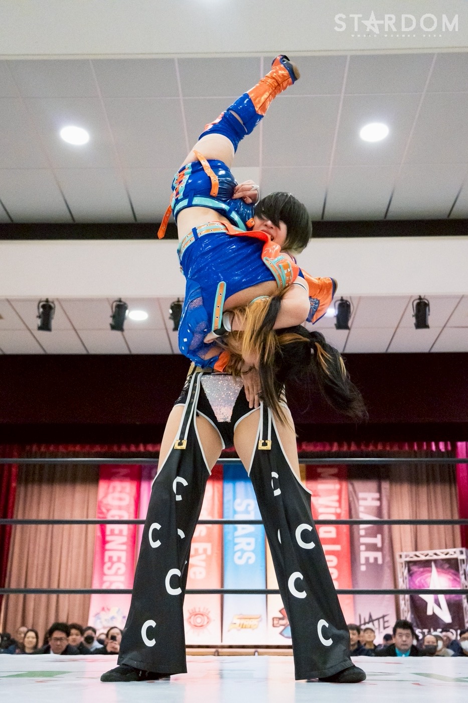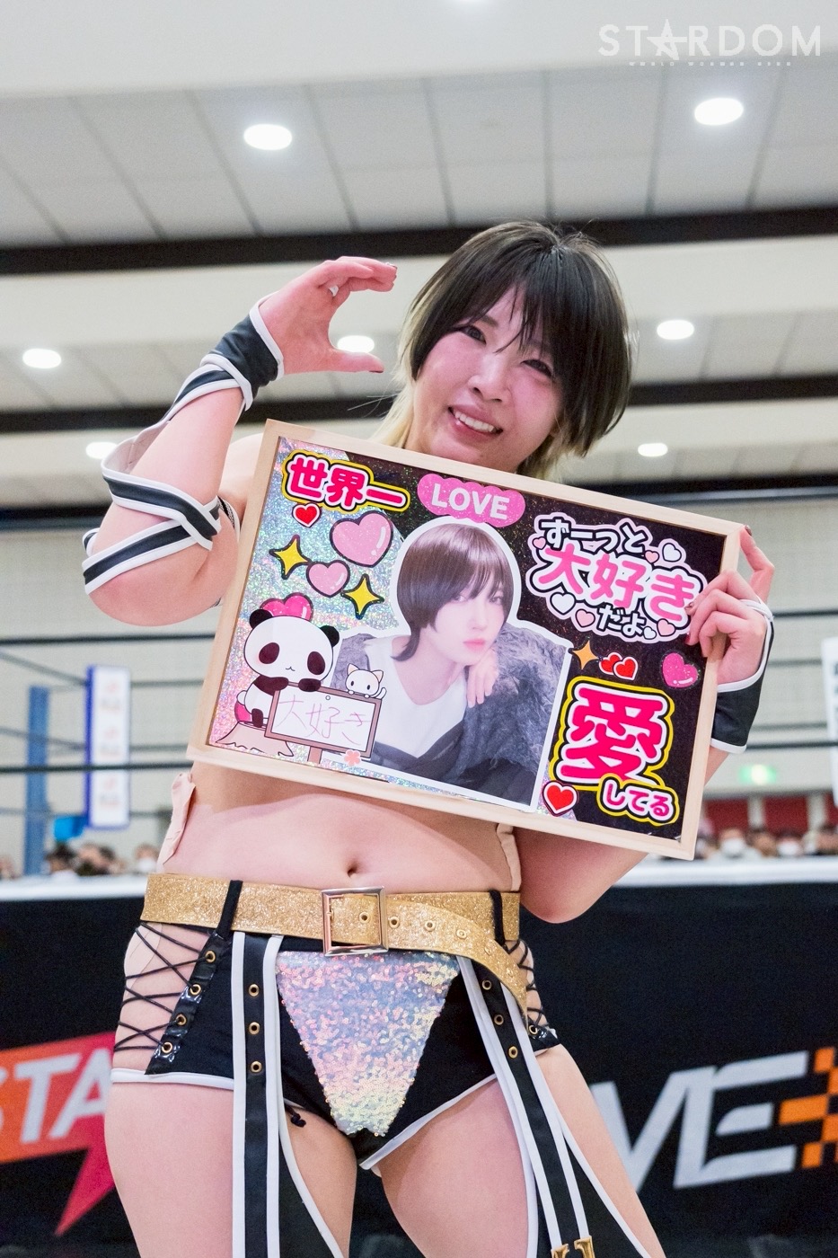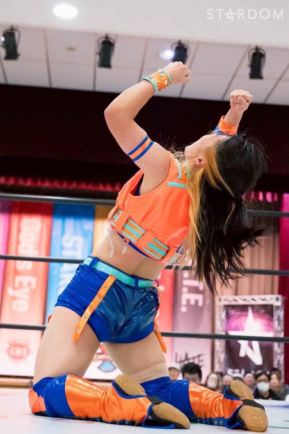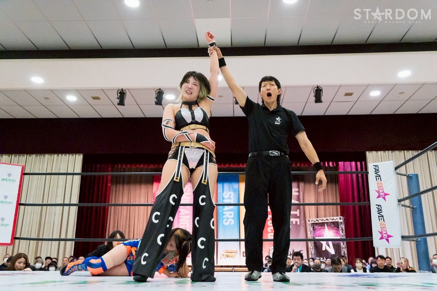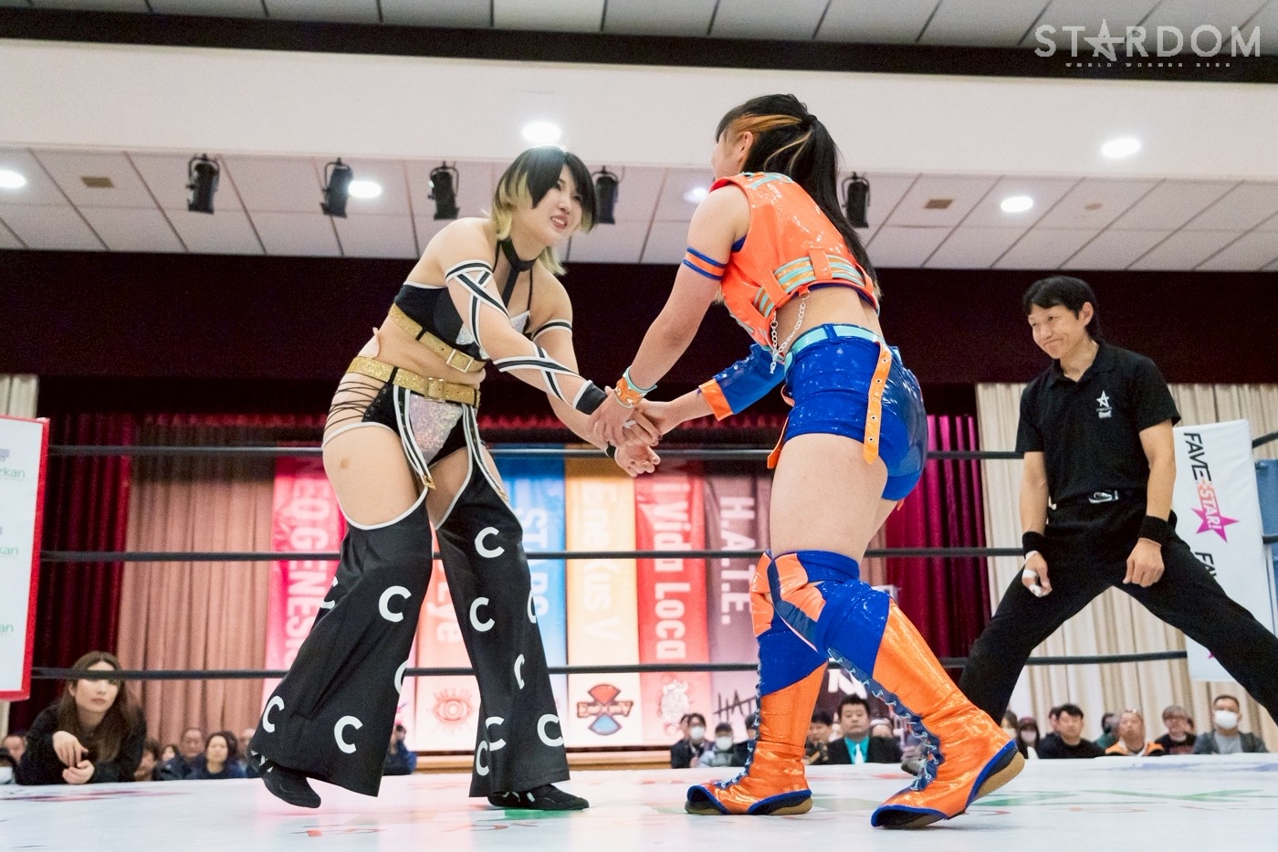 浜辺がタックルでグラウンドに誘う。レディが応戦し、バックを取って立ち上がり、ヘッドロックへ。浜辺に走らせず、レディはグラウンドでヘッドロックをキープ。浜辺がロープに振りドロップキックも、レディがこらえてショルダータックル。さらにボディースラムを連発してニードロップ。浜辺が返すと、レディは足を取ってジャイアントスイング10回転。レディはダウン状態に浜辺に「大丈夫?」と声をかけてカバー。返した浜辺がエルボーで向かっていくと、レディがやり返す。レディはコーナーに振るが、ドロップキックを浴びる。レディが返すと、浜辺は腕十字へもっていく。しかし、レディの足がロープへ届く。レディが浜辺の狙いを切り返して、ビッグブーツからコブラツイスト。浜辺がエスケープするが、レディのビッグブーツを顔面に食らう。レディは、「纏どうした? やり返せよ」と挑発。浜辺がエルボー連打、レディが受けて立つ。浜辺は、「上げるぞ!」と予告してボディースラムの構え。レディがこらえるが、浜辺はドロップキックからサマーソルトドロップ。レディが返すと、浜辺が一本背負いを狙う。レディがこらえてエルボーを叩き込む。浜辺がこらえるが、レディがネックブリーカー。レディはフィニッシュを宣言して突進。浜辺がかわして丸め込みの連続。レディの突進を止めて、浜辺が一本背負いを決めると腕十字へ。しかし、レディがエスケープ。浜辺がエルボー連打、レディがかいくぐって前方に叩きつける。浜辺が返すと、レディは狙いすましてビッグブーツを叩き込む。3カウントが入り、レディが浜辺をフォールしてみせた。