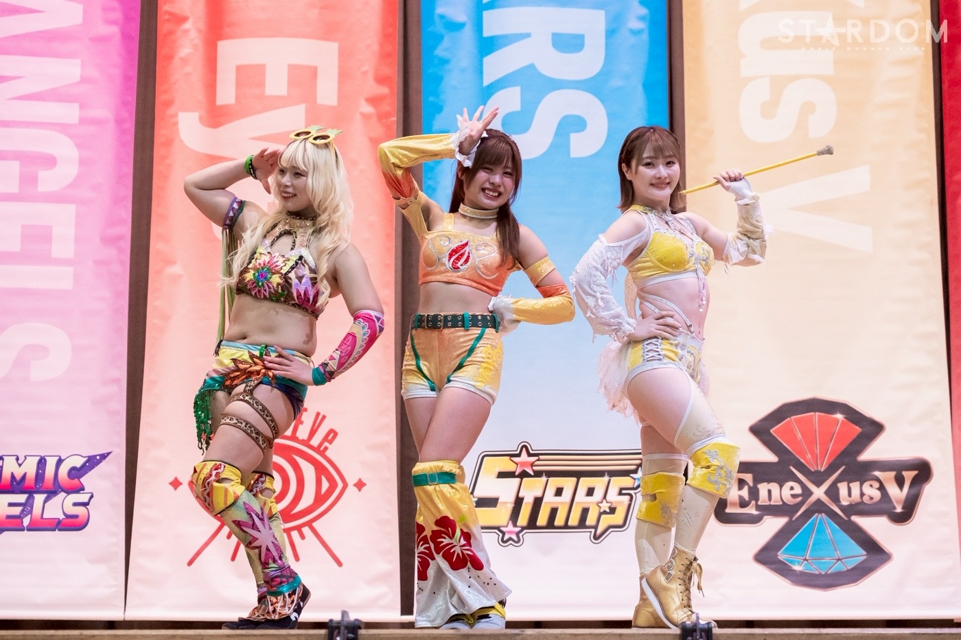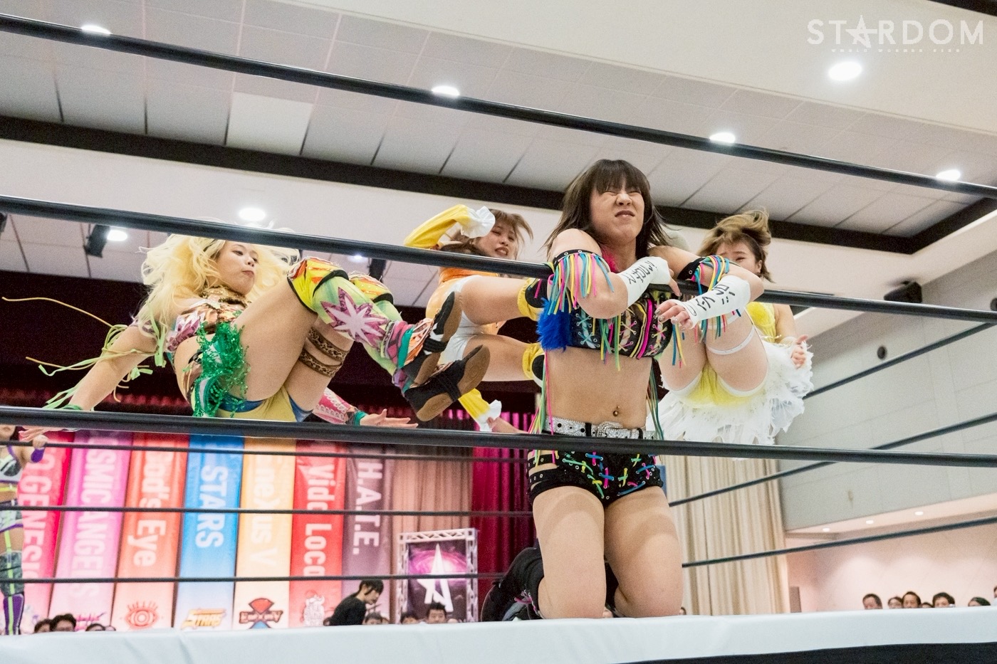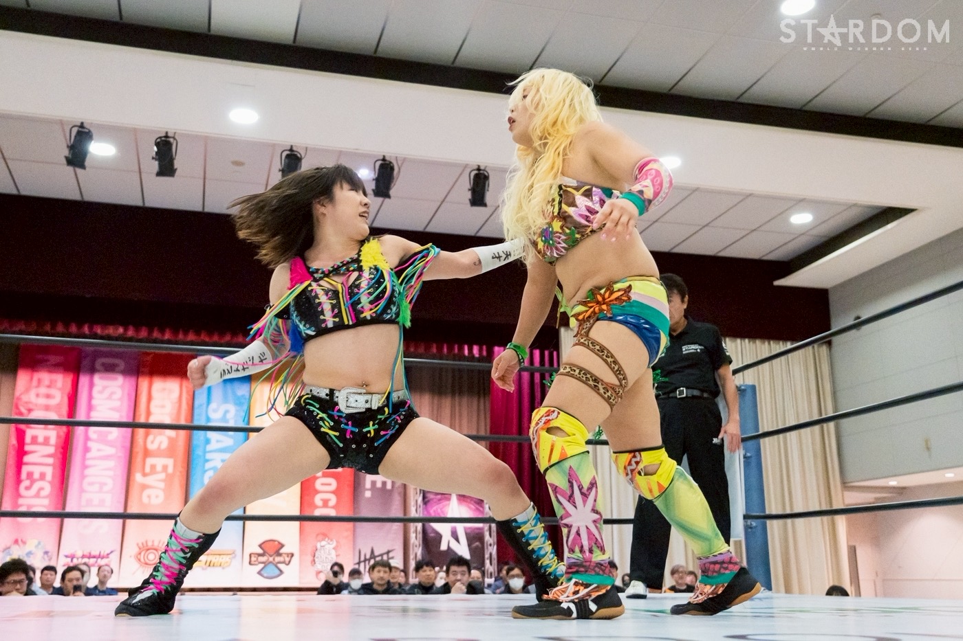 水森と星来が先発し、ロープワークの攻防。なつぽいと金屋が乱入し、トリオでドロップキックを打ち込む。金屋が星来にドロップキック、エルボー連打。星来がロープに追い込み、AZMとエプロンからドロップキック連発で競演。星来は金屋にヘアーホイップ、コーナーに追い込み顔面を踏みつけていく。星来が連続で押さえ込み。AZMが金屋に串刺しドロップキック、サッカーボールキック。天咲は金屋にボディースラム、キャメルクラッチ。そこにAZMと星来がロープ間を走ってドロップキックをぶち込む。金屋が返すが、天咲がエルボー連打。金屋がかいくぐるも、天咲が蹴飛ばしてボディースラム狙い。こらえた金屋が飛びついてアームホイップ、ドロップキック。なつぽいが天咲へネックブリーカー。ドロップキックを狙うと、AZMが乱入。しかし、なつぽいはロープに追い込み、まとめてドロップキックを放つ。さらになつぽいは、天咲にダイビングボディーアタック、返されるとワキ固め。星来がカットに入ると水森が場外に送り出す。天咲がなつぽいにDDT。しかし、なつぽいがトラースキック。水森が天咲にラリアット連打、ギロチンドロップ。天咲が返すと、水森にDDT。星来が水森にラリアット、両者がエルボーを打ち合う。星来に走らせず、水森がバックを取る。星来が切り返すが、水森が飛びついてヘッドシザーズから腕を取る。ネオジェネがカットし、星来がミサイルキック。水森が星来をかいくぐり、なつぽいとドロップキックの挟み撃ち、金屋もドロップキックで続く。星来が返すと、水森が突進。星来がかわしてネオジェネが串刺し攻撃の連続、トリオで串刺しドロップキック。星来は水森にブレーンバスター。水森が返すと、星来はバックを取る。水森が切り返すと、丸め込みの応酬からなつぽいがトラースキック、水森が丸め込む。しかし、天咲のカットが間に合う。混戦から星来がドロップキック、水森がラリアット。星来が返すと、水森はフィニッシュを宣言してラリアット狙い。星来がかわすと、AZMがハイキック、星来がフィッシャーマン、流れ星で丸め込む。水森が返せず、星来が勝利した。