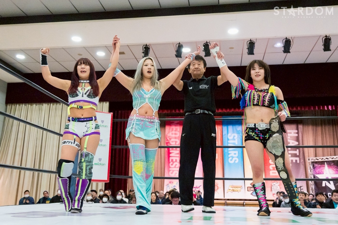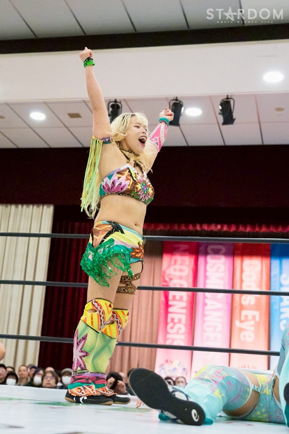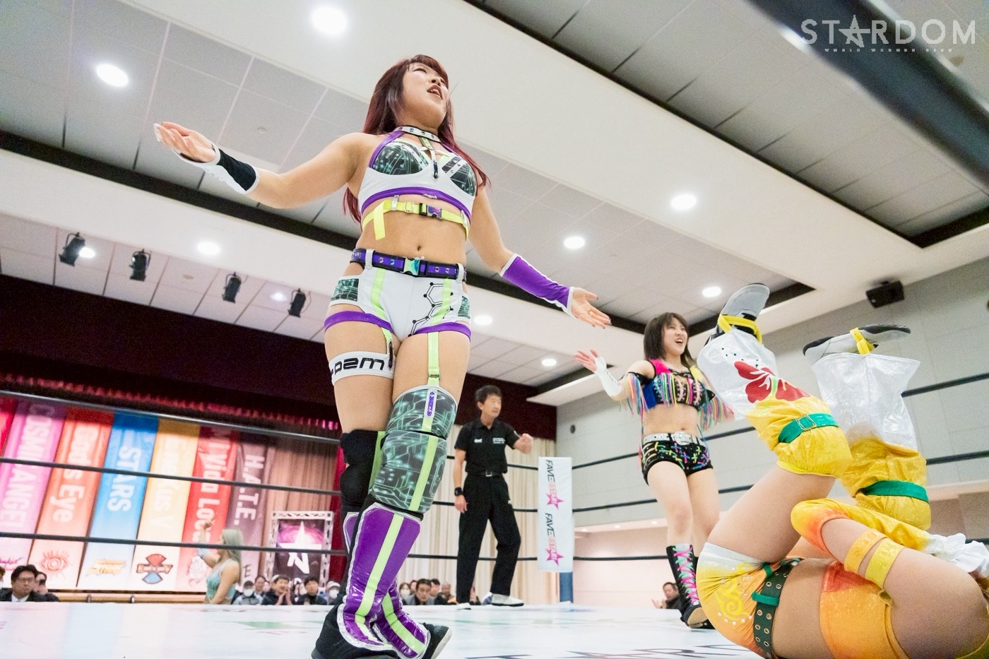 水森と星来が先発し、ロープワークの攻防。なつぽいと金屋が乱入し、トリオでドロップキックを打ち込む。金屋が星来にドロップキック、エルボー連打。星来がロープに追い込み、AZMとエプロンからドロップキック連発で競演。星来は金屋にヘアーホイップ、コーナーに追い込み顔面を踏みつけていく。星来が連続で押さえ込み。AZMが金屋に串刺しドロップキック、サッカーボールキック。天咲は金屋にボディースラム、キャメルクラッチ。そこにAZMと星来がロープ間を走ってドロップキックをぶち込む。金屋が返すが、天咲がエルボー連打。金屋がかいくぐるも、天咲が蹴飛ばしてボディースラム狙い。こらえた金屋が飛びついてアームホイップ、ドロップキック。なつぽいが天咲へネックブリーカー。ドロップキックを狙うと、AZMが乱入。しかし、なつぽいはロープに追い込み、まとめてドロップキックを放つ。さらになつぽいは、天咲にダイビングボディーアタック、返されるとワキ固め。星来がカットに入ると水森が場外に送り出す。天咲がなつぽいにDDT。しかし、なつぽいがトラースキック。水森が天咲にラリアット連打、ギロチンドロップ。天咲が返すと、水森にDDT。星来が水森にラリアット、両者がエルボーを打ち合う。星来に走らせず、水森がバックを取る。星来が切り返すが、水森が飛びついてヘッドシザーズから腕を取る。ネオジェネがカットし、星来がミサイルキック。水森が星来をかいくぐり、なつぽいとドロップキックの挟み撃ち、金屋もドロップキックで続く。星来が返すと、水森が突進。星来がかわしてネオジェネが串刺し攻撃の連続、トリオで串刺しドロップキック。星来は水森にブレーンバスター。水森が返すと、星来はバックを取る。水森が切り返すと、丸め込みの応酬からなつぽいがトラースキック、水森が丸め込む。しかし、天咲のカットが間に合う。混戦から星来がドロップキック、水森がラリアット。星来が返すと、水森はフィニッシュを宣言してラリアット狙い。星来がかわすと、AZMがハイキック、星来がフィッシャーマン、流れ星で丸め込む。水森が返せず、星来が勝利した。