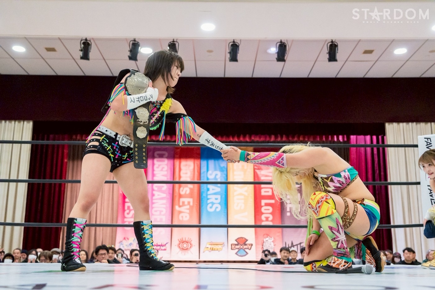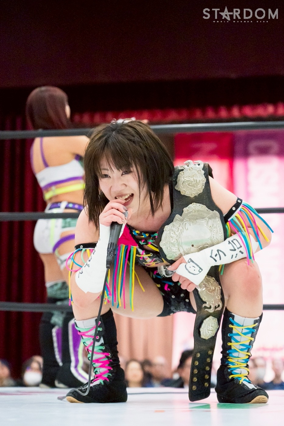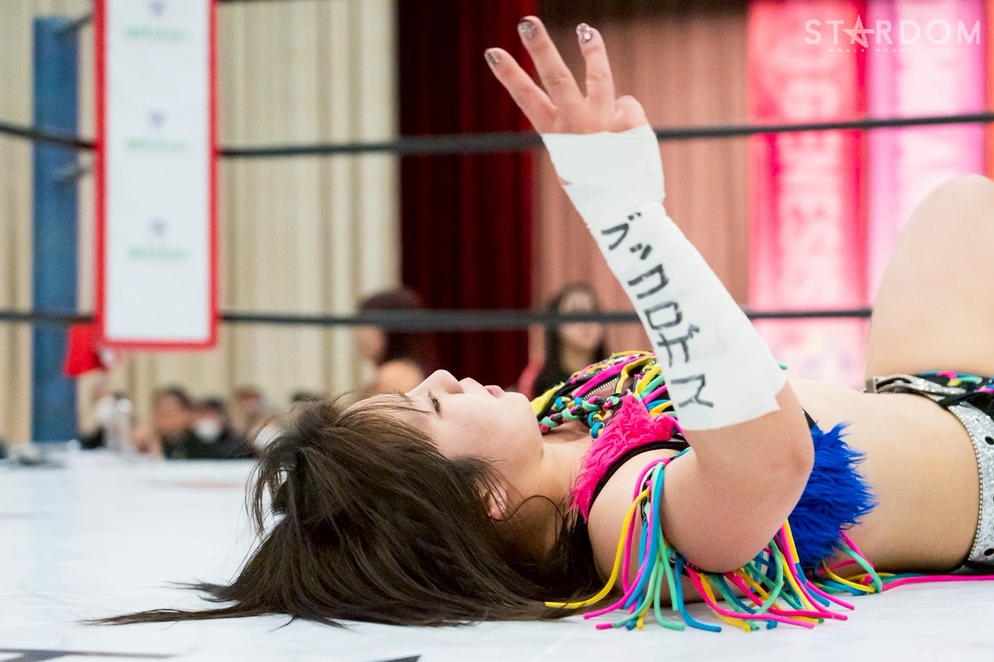 星来「ゆなもん狩り成功したぞ! おい、ゆなもん、12月24日後楽園ホール、ウチらタイトルマッチだけど、まだまだ芽依はこんなもんじゃないし、チャンピオンというものをオマエに教えてやるよ。やろう。よろしく」