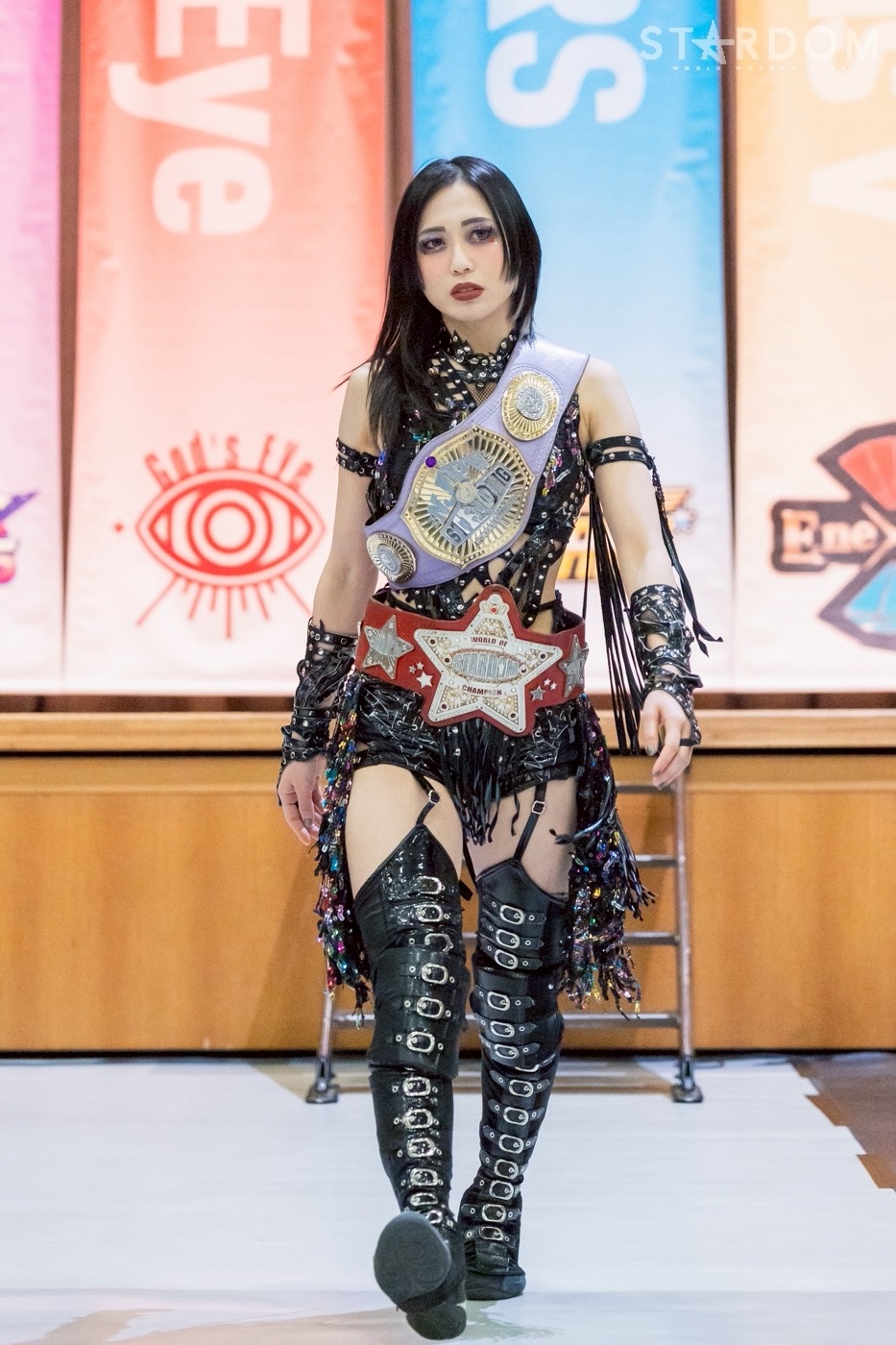 朱里「おいH.A.T.E.、どんなやり方をしようとも、私は、いや、私たちは絶対負けないからな。上谷沙弥、(新日本)1・4東京ドーム、最高の舞台でこのIWGP女子、そしてSTRONG女子、ダブルタイトルマッチ、楽しみにしてるから覚悟しとけよ!」