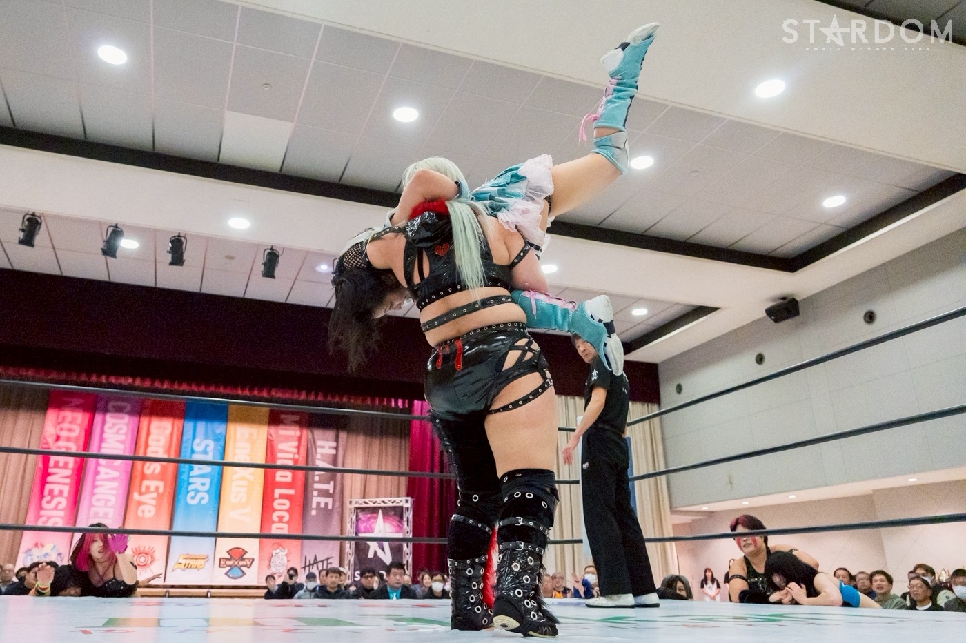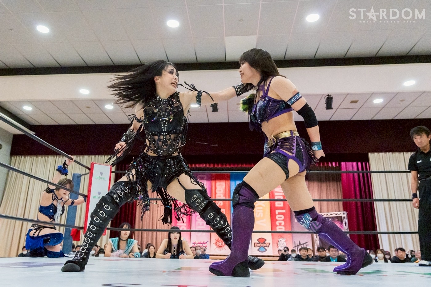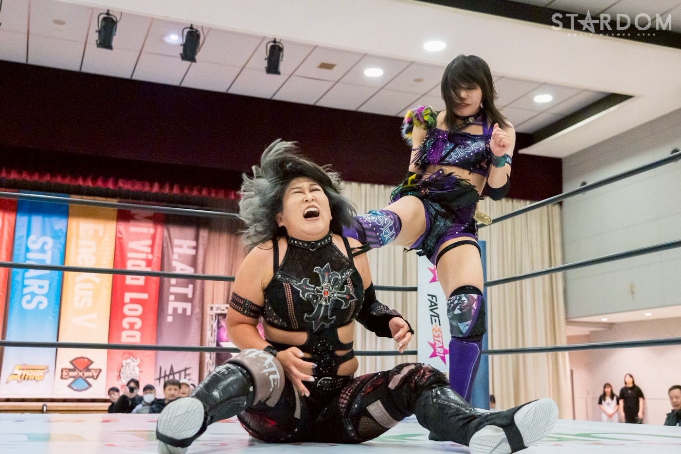 上谷と安納がパートナーを制して先発に。ゴングと同時にエルボーを打ち合い、安納が連打、上谷は走らせずに髪を引いて叩きつける。安納をかいくぐり上谷が髪をつかむと、安納もやり返す。ブレイクしても再度髪をつかみ合う。さくらが安納にタッチを申し出て、ナツコにエルボー連打で向かっていく。ナツコが受けて立ち、エルボーを叩き込む。ナツコは、さくらのドロップキック連打も受けて立つ。エプロンで琉悪夏がさくらを止めて、ナツコが場外に送り出す。場外戦となり、上谷が安納を客席に投げつける。上谷は赤いベルトを持ち出し、安納を殴打。さくらが戻され、ナツコがブレーンバスター、串刺しボディーアタック。小波がさくらをロープに固定すると、H.A.T.E.で攻撃。小波がさくらにサッカーボールキック、片足でカバー。琉悪夏と吏南がさくらへダブルのエルボー、ダブルのドロップキック。さくらが返すと、吏南にミドルキック連打。吏南が蹴り倒して突進、さくらがミドルキック。飯田が吏南にショルダータックルも、ナツコと琉悪夏が捕獲してダブルのショルダータックル。飯田がサンドイッチラリアットをかわすと、安納がまとめてミサイルキック、飯田が吏南を押さえ込む。吏南が返すと、飯田に払い腰、ドロップキック。小波と飯田がエルボーの打ち合い。飯田は、逆水平連打を小波に浴びせる。小波が飛びつき腕十字からワキ固め。飯田が切り返してラリアット。小波がバックエルボー、スライディングキック、フィッシャーマン。飯田が返すと、小波のバズソーをキャッチしてフィッシャーマン。小波がラリアットをかわしてジャーマン、飯田がラリアット。朱里が小波にサッカーボールキック、PK。小波が返すと、ブレーンバスター。上谷が朱里にスワンダイブ。朱里がかわすが、上谷がドロップキック。朱里がドロップキック、上谷が串刺しエルボー、朱里が串刺しニー、ミドルキック。上谷と朱里がエルボーの応酬。朱里がワキ固めから腕固め、H.A.T.E.がカットし、混戦に。小波のハイをこらえて、飯田がラリアット。上谷がスピンキックも、朱里がハイキック。両者ダウン状態から、琉悪夏と玖麗がリングイン。玖麗のドロップキックを琉悪夏がかわす。琉悪夏はアームホイップをこらえて玖麗にショルダータックル。ナツコと琉悪夏が合体プレスも、玖麗が回避してさくらとダブルのドロップキック。さくらと玖麗は琉悪夏にもドロップキックで競演し、安納の援護から玖麗がネックブリーカー。しかし、琉悪夏が返してみせる。玖麗は琉悪夏にスリーパー。玖麗は琉悪夏をコーナーに追い込んで突進。琉悪夏がかわしてH.A.T.E.が串刺し攻撃の連続、ナツコと琉悪夏がキックの挟み撃ち。琉悪夏がフィッシャーマンズバスターを滞空時間をとって決める。玖麗が返すと、琉悪夏はフィニッシュを宣言してバックを取る。飯田が飯田ロケットでカットし、玖麗、さくら、安納がトリオでカカト落とし、玖麗がミサイルキック、スリーパー。グラウンドに移行するが、琉悪夏がエスケープ。玖麗が琉悪夏にときめきスピアもカットされる。さくらと飯田が合体も、ナツコがまとめてラリアット。朱里と安納の合体を小波が阻止。上谷がスワンダイブ式プランチャで場外に飛ぶ。リング上は玖麗と琉悪夏。15分経過。琉悪夏がラリアット、玖麗がバイオレットシューティング。琉悪夏が返すと、玖麗がエルボー連打、琉悪夏がネックハンギングボム。しかし、さくらのカットが間に合う。ナツコと琉悪夏が合体して、さくらと玖麗にラリアット。ナツコがキャノンボール、琉悪夏がクロスボディー。ナツコと琉悪夏がコーナーから同時ダイブ。玖麗が返せず、琉悪夏が3カウントをゲットした。