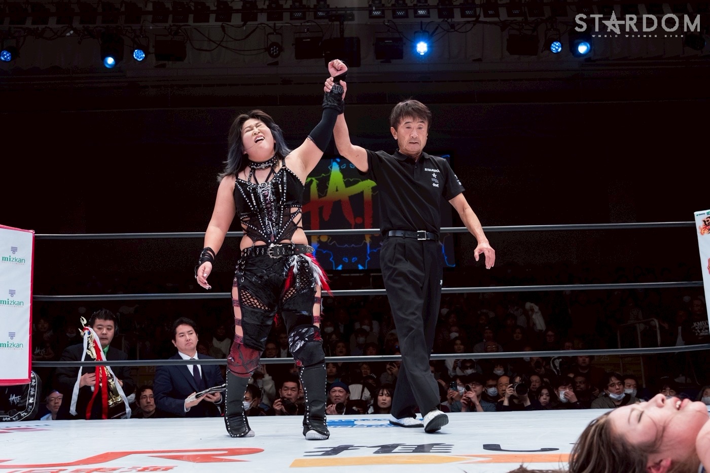 バックステージでは「次の挑戦者は誰だ?私はいつでも空いてるぞ。まあ、怖くなっちゃったかな。どんだけベビーが結託してH.A.T.E.を倒そうとしても現実はこうだもんな。今年もH.A.T.E.1強の年が続くのかな?まあそうだろうな。私はスターダムの景色を変えさせるつもりはないから」と最後まで余裕の笑みを浮かべていた。
