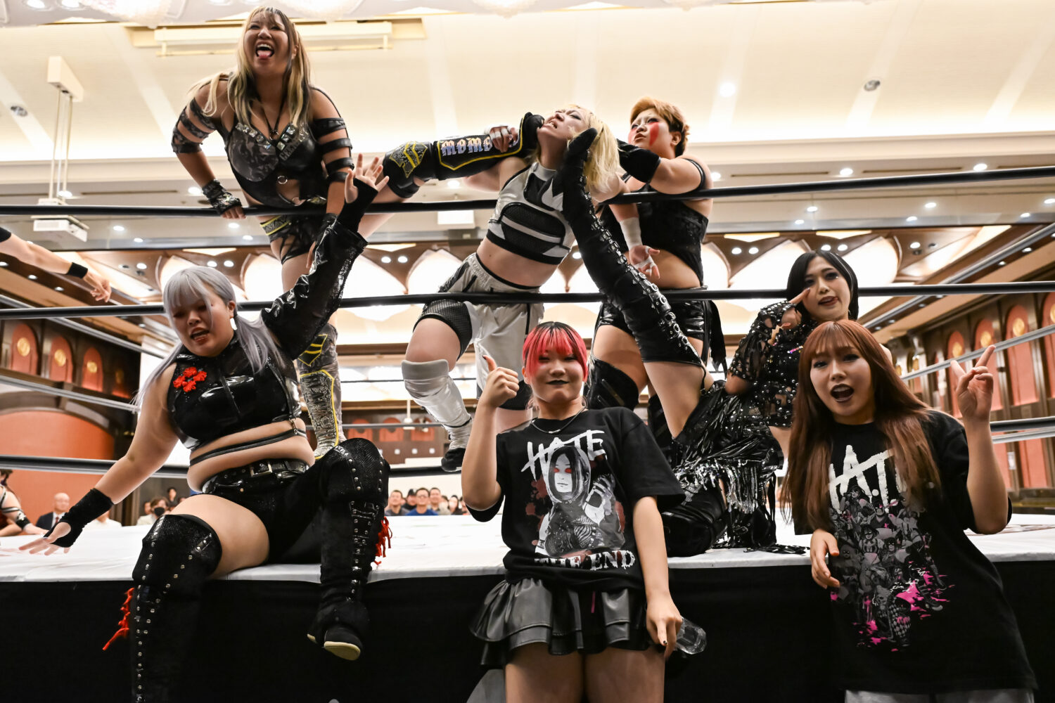 最後にアキラがコールされたところで、H.A.T.E.が仕掛けて試合がスタート。H.A.T.E.はアキラを孤立させ、上谷が顔面を踏みつける。上谷がロープに振ると、アキラが「なめんじゃねえ!」とドロップキック連打。しかし、上谷がカウンターでやり返す。ナツコがアキラに水を噴射。アキラが返すと「なめんじゃねえぞ!」とエルボー連打、絶叫してボディースラムの構え。しかし、ナツコがこらえてボディースラム、ヘアーホイップ。桃が「何が凱旋だ!」とミドルキック、顔面を踏みつけMVLを威嚇。桃は、アキラをロープに固定しH.A.T.E.で攻撃。桃に挑発されて、アキラがエルボー連打。桃がエルボーでアキラを倒し、ラリアット。アキラがかわしてドロップキックからボディースラムで叩きつける。ボジラがH.A.T.E.に次々とショルダータックル、上谷に投げっぱなしジャーマン、桃に串刺しボディーアタック、ブレーンバスター、ファルコンアロー。桃とボジラがエルボーを打ち合う。桃がショルダーからミドルキックも、ボジラが返す。上谷がスワンダイブ式ボディーアタックで飛ぶが、ボジラが受け止めて叩きつける。上谷がすぐに立ち上がり張り手の応酬に。上谷のダッシュにボジラがヘッドバット。上谷がレフェリーを差し出し、ボジラにドロップキック。ボジラはパワーボムで叩きつけるが、上谷が返す。山下が上谷に串刺しラリアット、ボディースラム。上谷が返すと、山下に走らせず後頭部をマットに叩きつける。エルボーの応酬から上谷が二段蹴り、エルボー。山下が立ち上がり延髄斬り。上谷は走らせずエルボー、山下がトラースキック、上谷がニールキック。青木が琉悪夏にフェースクラッシャー、ボディープレス。琉悪夏が返すと青木がエルボー連打、ナツコが背後から蹴り飛ばして乱入。ナツコと琉悪夏が連係で青木を攻め込む。青木が返すと、琉悪夏が予告してフィッシャーマンの構え。青木がこらえると、琉悪夏がエルボー、青木もやり返す。琉悪夏のフェイントは青木にはきかず。しかし琉悪夏がやり直してDDT、ラリアット。ナツコのセントーンを青木がかわす。ナツコが青木を挑発。10分経過。エルボーの応酬からナツコがエルボースマッシュ、青木がDDT、ジャーマン、トラースキック。しかし、ナツコが返してみせる。アキラがタッチを申し出てナツコに串刺しエルボーアタック連打。ドロップキックをかわしたナツコだが、アキラがセントーンをかわしてフェースロック。ナツコがエスケープすると、アキラの突進にショルダータックル。琉悪夏を呼び込みダブルでボディープレス投下、ナツコがセントーン。しかし、青木がカット成功。ナツコはアキラをコーナーに振って突進、ボジラがショルダータックルで阻止、ボジラが振ってMVLがナツコに串刺しの連続、アキラがナツコに河津落としからフェースロック。しかし、桃がカットする。混戦からMVLが連係攻撃、アキラがスープレックス。ナツコが返すと、アキラがエルボー連打、突進をナツコが止めて桃がバットで殴打、次々と殴打するがボジラが奪って投げ捨てる。ボジラがナツコに突進も脚を引かれる。上谷が場外にプランチャ、琉悪夏が串刺しボディーアタック、ナツコがキャノンボールをアキラにお見舞い。アキラが返すと、ナツコがフィニッシュを宣言してダイビングボディープレス。3カウントが入り、ナツコがアキラを破った。
