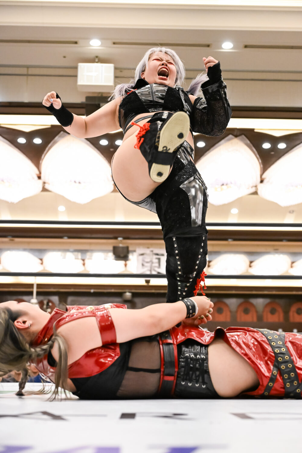 刀羅ナツコ:ダイビングボディプレス→体固め