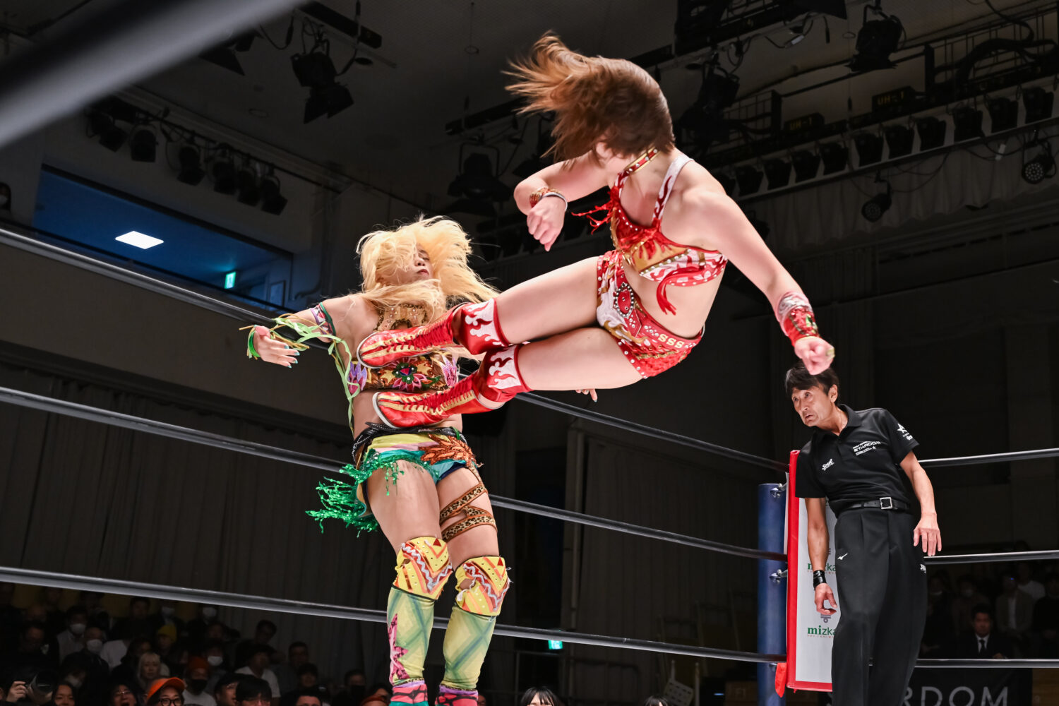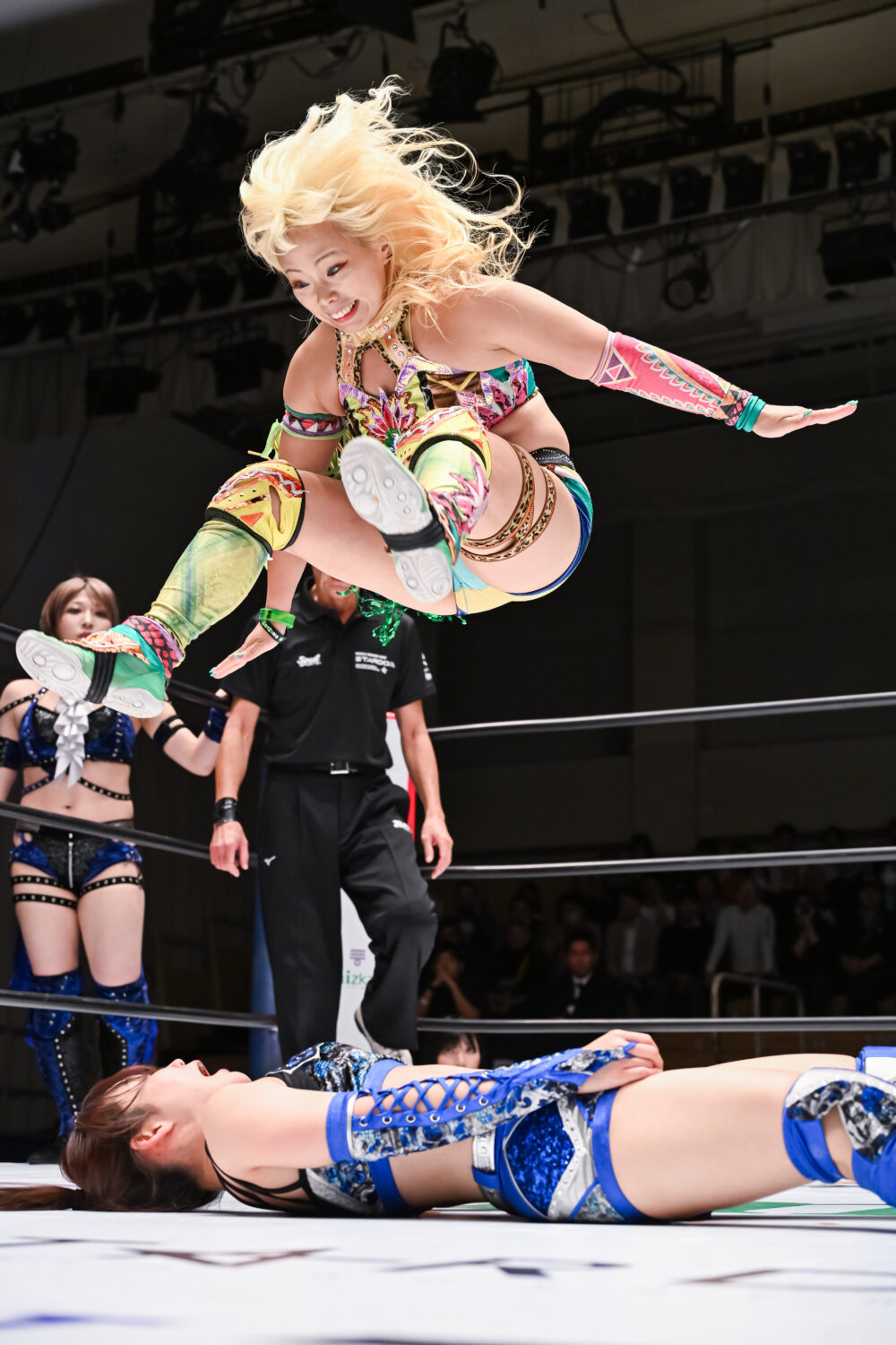 安納とSareeeがリング中央で視殺戦。試合は水森と叶でスタート。叶のドロップキックを水森がかわす。叶がアームホイップ、水森もやり返す。カバーの応酬から叶がドロップキック、水森がこらえてドロップキックを放ち、控えのSareeeをリング下に落とす。安納が叶に鎌固め、カカト落とし、控えのSareeeをリング下に落とす。水森が叶にボディースラム、ギロチンドロップを連打する。Sareeeがカットし、控えの安納もリング下に落とす。Sareeeと叶が連係で水森を攻撃。Sareeeが水森にドロップキック連打、ボディースラム、インディアンデスロックから鎌固め。叶が水森へ串刺しドロップキック、モンキーフリップ。丸め込みを水森が返して、ドロップキック。安納が叶にミサイルキック、ドロップキック。Sareeeがカットして叶と合体を試みる。しかし、安納が叶にインディアンデスロック、Sareeeをブレーンバスター。叶が安納にエルボー連打、安納がビッグブーツ、ドロップキック。コーナーに振られるも、反転して回転エビ固めからジャックナイフ。Sareeeが安納へミサイルキック。Sareeeと安納がエルボーの打ち合い。安納がSareeeの突進をかわして延髄斬り、フィッシャーマン。ジャーマン狙いはSareeeが切り返して突進。安納が止めるが、Sareeeがジャーマン。安納もジャーマン。Sareeeがドロップキック。水森がSareeeにドロップキック連発、ラリアット、控えの叶にもラリアット。Sareeeが返すと、水森はコーナーへ。叶が止めてSareeeが雪崩式ブレーンバスター。水森が返すと、Sareeeが突進をかわす。安納が延髄斬り。水森がカムバックしてラリアット、前方に叩きつける。Sareeeが返すと、水森が合うんとエルボー連打。10分経過。水森がSareeeにチョップ、Sareeeがドロップキックを連発し、フィッシャーマン。返した水森にSareeeはダイビングフットスタンプ。水森がかわしてヘッドシザーズで飛びつく。腕を取って締め上げるが、叶がカット。安納と水森が合体も、叶がまとめてボディーアタック、Sareeeが水森に裏投げ狙い。水森がカウンターでラリアット。水森の突進を止めてSareeeが裏投げ。3カウントが入り、Sareeeが水森をフォールした。試合後、Sareeeが安納に張り手、安納もやり返して睨み合い。