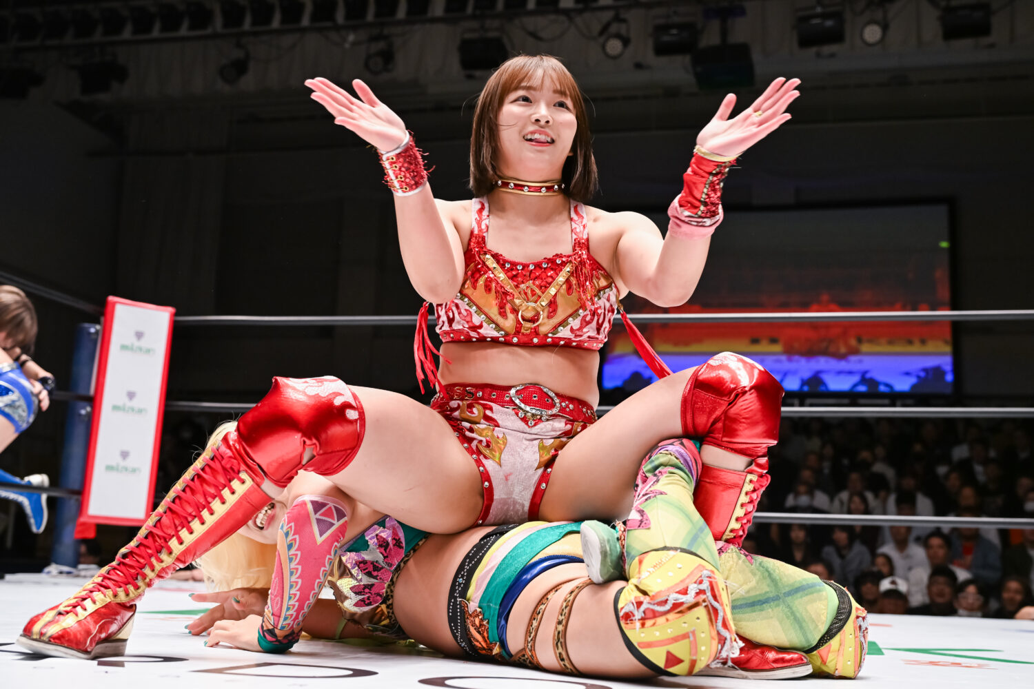 叶「自分は今日もSareeeさんと組ませていただいて、勝ちたい、ずっと勝ちたいっていう気持ちがすごく強くて。今日はやっと勝てて。でも自分はまだまだだなっていうのをすごく感じるので、絶対にタッグリーグ、出るってなったら、絶対にSareeeさんと一緒に優勝をつかみ取りにいきます。これからもぜひ応援お願いします」
