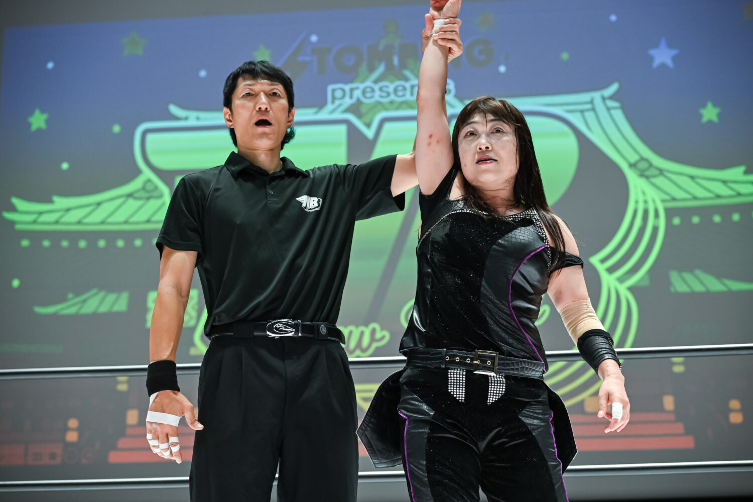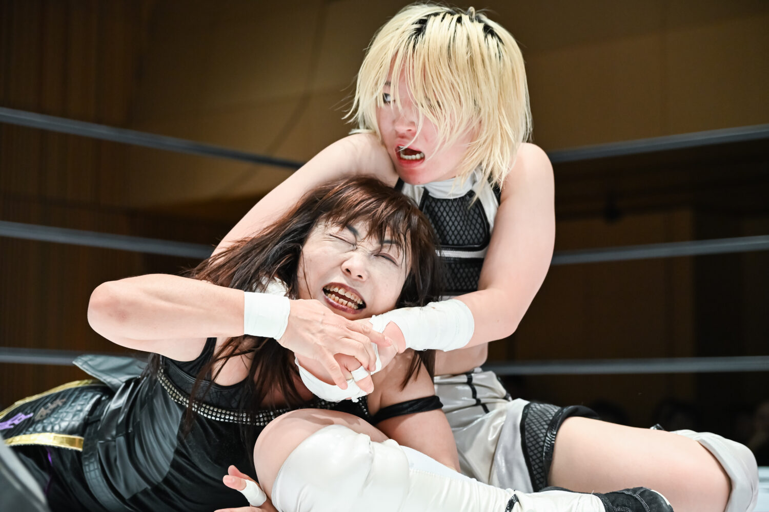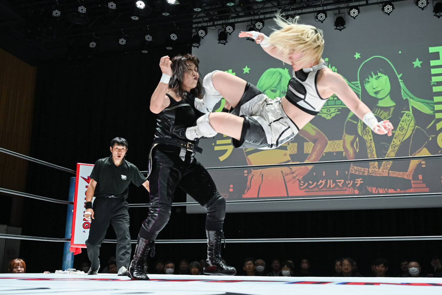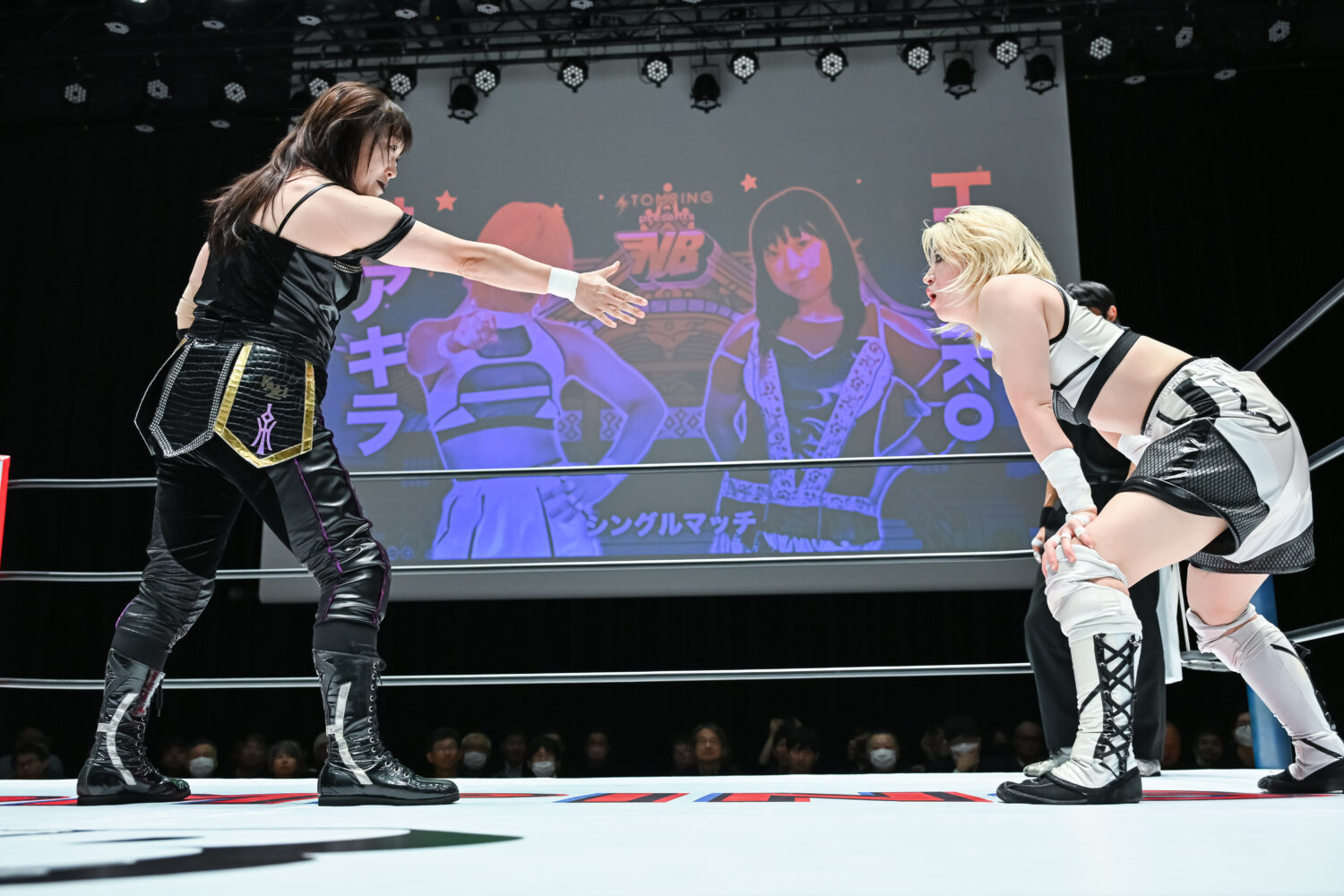 探り合いからグラウンドの攻防へ。Himikoが押さえ込みにいくとアキラの足がロープにかかる。Himikoが腕を取ると、アキラも応戦。腕の取り合いからアキラがヘッドロック。Himikoがヘッドロックからグラウンドに移行し、ギブアップを迫る。アキラがヘッドシザーズに切り返して締め上げる。Himikoが脱け出して視殺戦。Himikoが「クリーンファイト」を呼びかけ握手をも求める。アキラが応じるが、Himikoが首を取ってブルドッキングヘッドロックから押さえ込みの連続。アキラが返すと、Himikoがギロチンドロップ、ヘッドシザーズ。アキラがエスケープし、「なめんじゃねえ!」とエルボー、ダブルチョップ恩連打、「上げるぞ!」と予告し、投げを狙う。しかし、Himikoが反対にボディースラム。アキラが返すと、腕を取ったHimikoが投げの連続から変型腕固め、キャメルクラッチ。すると、デビー・カイテルがコーナーに上がり、レフェリーの注意を引く。Himikoがロープに振るとアキラが「なめんな!」とドロップキック連打。Himikoが返すと、アキラは河津落とし狙い。Himikoがこらえると、アキラがエルボー連打から突進。しかしセコンドのデビーが足を引っ張る。デビーが再びコーナーでレフェリーの注意を引きつける。Himikoはタオルをアキラの首に巻き付けてマットに叩きつけていく。しかし、アキラが串刺しエルボーアタック、河津落とし、フェースロック。Himikoがエスケープすると、アキラがストンピング連打、Himikoがヒザにカウンターのドロップキック、ブルドッキングヘッドロック。ダブルアームの構え。アキラがこらえてハーフハッチ。しかし、Himikoが返してみせる。アキラがマウントを取ってエルボー連打。アキラの突進を止めてHimikoがバックドロップ連発、河津落とし。フィニッシュを宣言して河津落としをもう一発。アキラが返すとHimikoがペディグリー卑弥バスター(ダブルアーム式エースバスター)。アキラが返せずHimikoが勝利した。試合後、アキラが襲いかかるもあとの祭り。