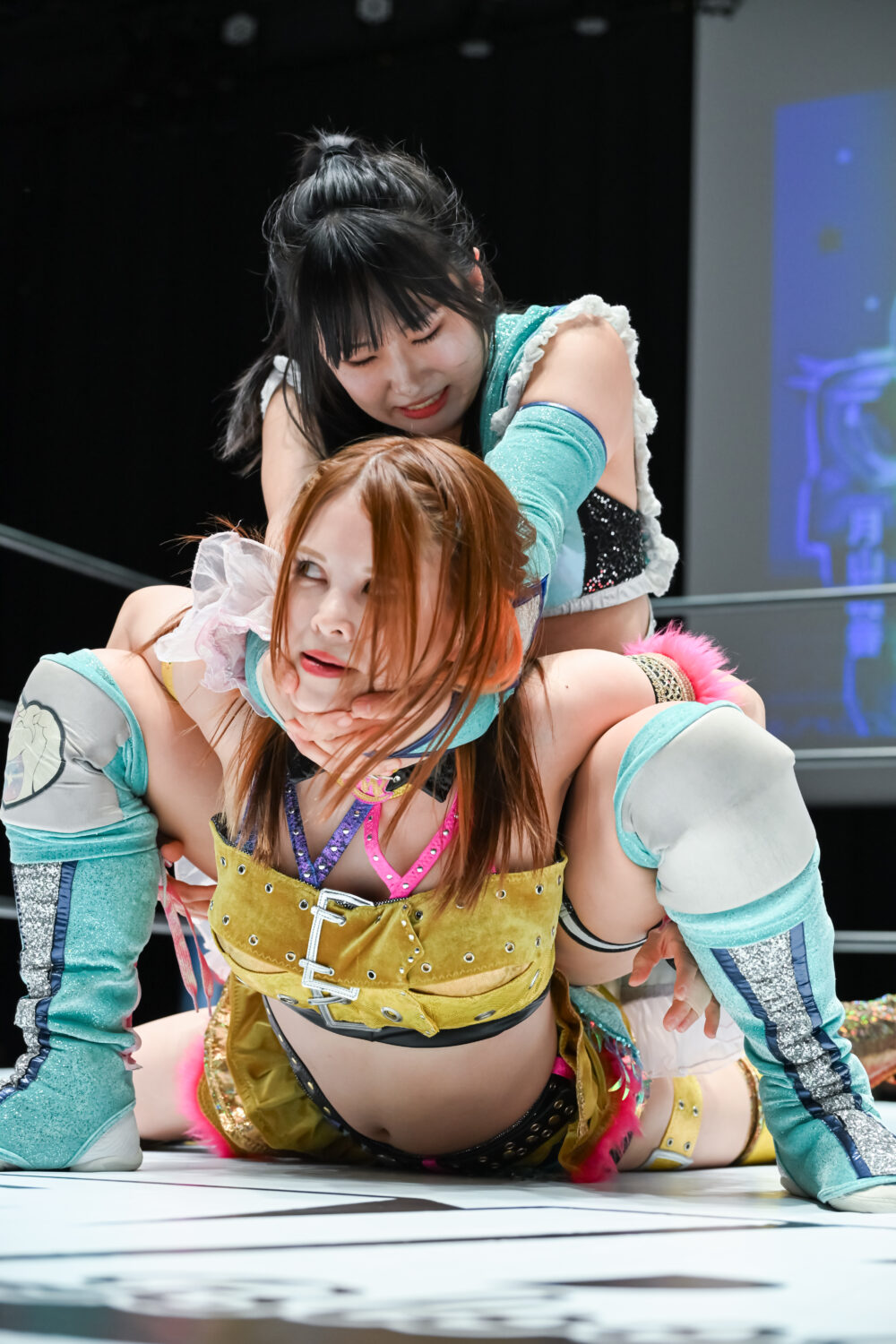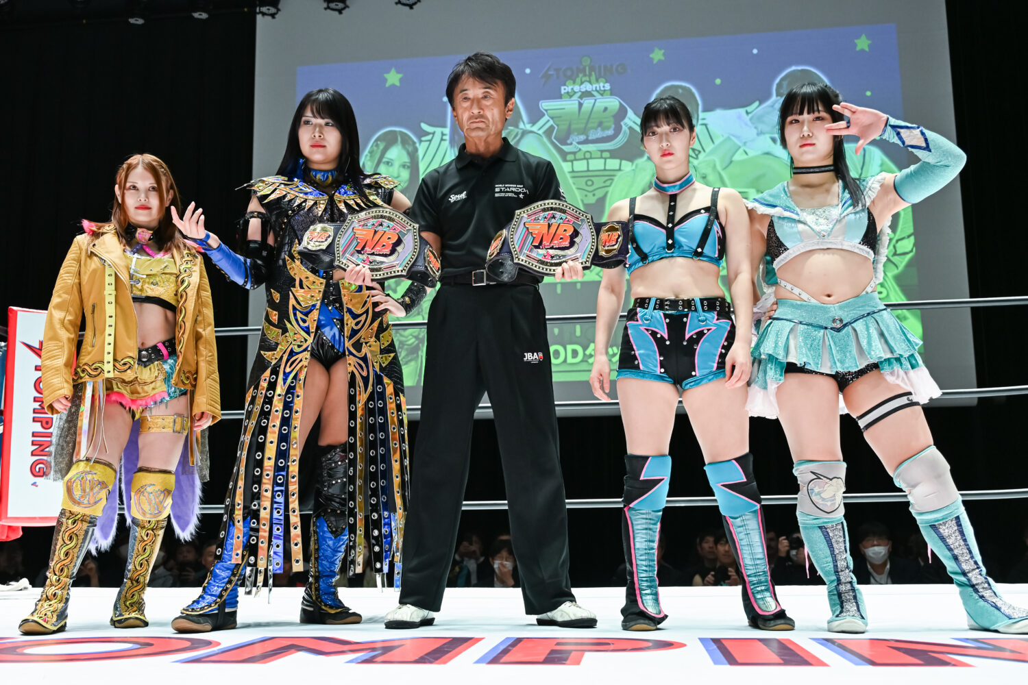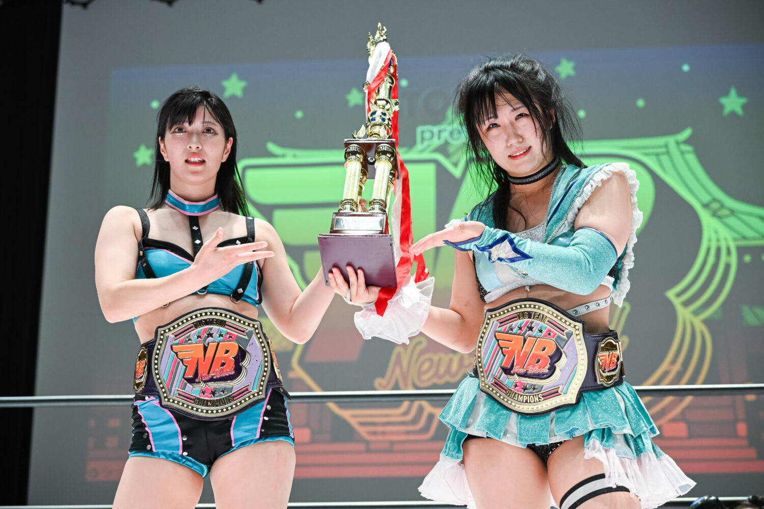 さくららのセコンドになつぽいと水森由菜がついてリングに迎え入れる。両軍がリング中央に歩を進めて睨み合い、HANAKOとさくらが視殺戦を展開。月山が先発に名乗りを挙げると玖麗が出てくる。腕の取り合いでスタートし、玖麗がヘッドロック。月山がロープに振るとラリアットをかわしてドロップキック。月山の突進をエプロンからさくらが妨害、玖麗がドロップキック。さくらは月山にサッカーボールキック、玖麗がチンロックでギブアップを迫り、キャメルクラッチへ移行する。月山がこらえると、玖麗はロープに固定して背中にドロップキック。月山が返すと、玖麗の突進にクロスボディー。HANAKOが玖麗へショルダータックル、出てきたさくらにも打ち込み、玖麗、さくらをボディースラム。玖麗が返すと、HANAKOは逆エビ固め。しかし、玖麗がエスケープ。月山が玖麗にヒップバット連打。玖麗が返すと、コーナーで反転してダイビングエルボーアタック。さくらが串刺しアタック、サッカーボールキックから三角絞めにもっていく。月山がエスケープすると、さくらがローキック、ボディースラム。玖麗が月山に串刺しドロップキック連打、エルボーアタック。月山が返すと、玖麗はスリーパーホールド。しかし、月山がロープに到達。月山が、玖麗のブレーンバスター狙いを切り返してエルボー連打。月山の突進に玖麗がエルボー、月山もエルボーからヒップアタック。HANAKOが玖麗へビッグブーツ、コーナーに追い込み串刺しボディーアタック。しかし、玖麗が肩を上げる。HANAKOがブレーンバスターを狙うと、玖麗がかわして飛びつきスリーパー。HANAKOがそのまま立ち上がりコーナーへ追い込む。玖麗が突進をかわして串刺しドロップキック。HANAKOがスピアをキャッチも、さくらのアシストから玖麗が飛びつきスリーパー。HANAKOが立ち上がろうとするが、玖麗がグラウンドへ。HANAKOがなんとかロープへ到達。玖麗の突進にHANAKOがショルダータックル。ニードロップをかわして玖麗がバイオレットシューティング。さくらがHANAKOにドロップキック、ミドルキック連打。HANAKOがつかむが、さくらがバックを取る。HANAKOが振りほどくとさくらがエルボーで向かっていく。10分経過。エルボーの応酬からHANAKOが連打で倒してみせる。さくらが下から飛びついて三角絞め。HANAKOがリフトアップしコーナーに叩きつけ、串刺しで突進。さくらがかわして玖麗がドロップキック、さくらがダイビングニーアタック。HANAKOが返すと、さくらが引き起こしてローキック、キックのコンビネーションから突進、HANAKOが止めてボディースラム、月山がクロスボディー、HANAKOがその場跳びボディープレス。さくらが返すと、HANAKOが月山を落とす。玖麗のアシストからさくらがロープを引いてHANAKOを場外に落とし、さくらと玖麗が場外に飛ぶ。HANAKOがリング下でさくらにブレーンバスター。月山がコーナーから場外プランチャで舞う。HANAKOが月山を持ち上げ、もう一度さくらに落とす。さくらが返すと、HANAKOはフィニッシュを宣言して、アルゼンチン。JPコースターコースターにいこうとするが、さくらが丸め込みの連続。サクラっちに丸め込むが月山がカット。HANAKOがさくらの突進にラリアット。さくらが返すと15分経過。HANAKOがさくらにアルゼンチン、さくらが切り返してバックを取る。エルボーが交錯し、さくらがかいくぐると玖麗がミサイルキック、玖麗もミサイルキック。しかしHANAKOが返してみせる。さくらは、HANAKOに蹴りのコンビネーション、顔面に叩き込むが月山がカバーをカット。さくらがHANAKOを引き起こし、バックを取る。HANAKOがこらえるが玖麗がスピア、反動を利用してさくらがジャーマン。しかし、2カウントどまり。残り3分。さくらが変型ジャーマンでホールド。3カウントが入り、さくらがHANAKOをピンフォール。NBタッグが移動した。