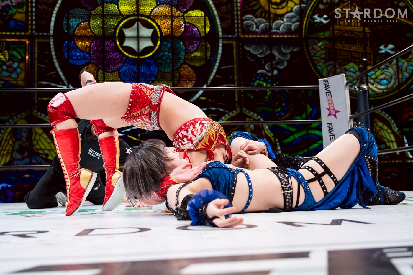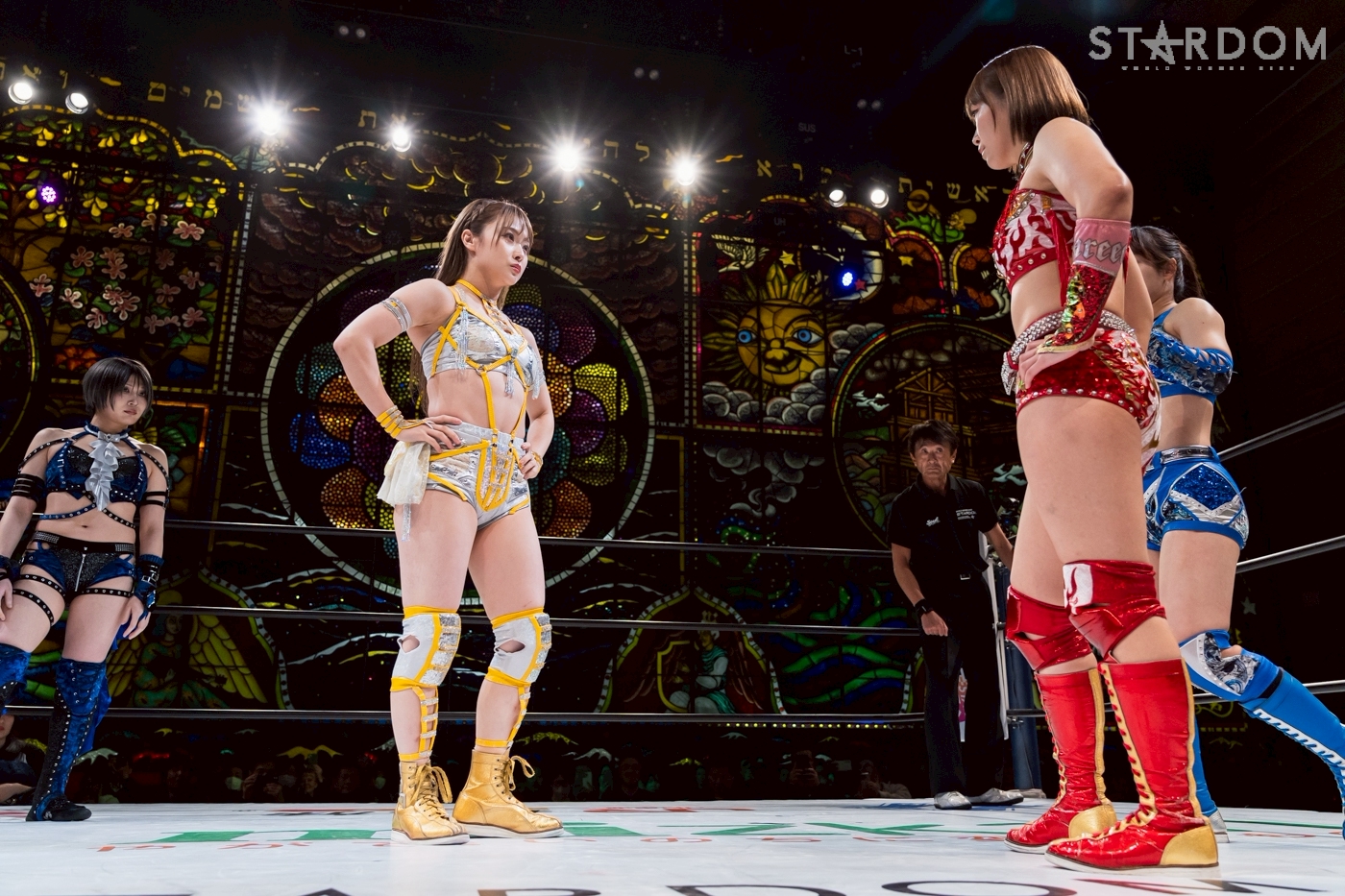 なつぽいとSareeeがチング中央で視殺戦。叶が割って入り先発を志願。ドロップキックはなつぽいにかわされるが、アームホイップからドロップキック。なつぽいが立ち上がりバックキック、安納が乱入して合体攻撃、ドロップキックで挟み撃ち。なつぽいは叶の髪を束ねてアームホイップ。Sareeeに見せつけるように髪を束ねてもう一度投げつける。なつぽいは、叶をコーナーに追い込み踏みつけると後方からドロップキック。安納が叶に鎌固め、なつぽいはSareeeを威嚇しタッチさせず。安納が叶にビッグブーツ。叶が向かっていくが、安納がエルボーを受けて立ちビッグブーツ。叶は、コーナーに振られると反転してボディーアタック。Sareeeが安納にミサイルキック、控えのなつぽいを落として安納をカバー、返されるとフィッシャーマン。Sareeeは再び控えのなつぽいに蹴りを入れてリング下に落とす。Sareeeに振られた安納がミサイルキック。なつぽいがSareeeにネックブリーカー、トラースキック。Sareeeが返すと、なつぽいを切り返しブレーンバスター狙い。なつぽいがこらえてエルボーの打ち合いにもっていく。Sareeeは「きかねえんだよ!」とエルボー。なつぽいが連打し、Sareeeも連発でやり返す。Sareeeの突進を読んでなつぽいがドロップキック、Sareeeもドロップキック連発でお返し。Sareeeはコーナーに上がるが、安納が押さえてなつぽいが下から張り手の連打。Sareeeが場外転落、なつぽいがプランチャで飛ぶ。なつぽいはSareeeをリングに入れてドロップキックを顔面へ。フィニッシュを宣言するとコーナーへ。フェアリアルギフトで舞うがかわされる。Sareeeがランニングフットスタンプ、なつぽいが返してフットスタンプ、ポイ捨てジャーマン。Sareeeがジャーマンのお返し。叶がタッチを申し出てリングイン、替わった安納をかわしてドロップキック。安納がかわしてドロップキック。叶が安納にコルバタ、ドロップキック3連発、ストンピング連打。なつぽいが乱入してキックの挟み撃ち、安納がフィッシャーマン、極楽固め。場外ではなつぽいがSareeeを抑える。叶がなんとかエスケープ成功。安納がコーナーに上がると、Sareeeが張り手、雪崩式ブレーンバスター。叶とSareeeがダブルのダイビングフットスタンプ、Sareeeがダイビングフットスタンプ、叶はローリングセントーン。しかし、なつぽいがカットする。叶がバックをとるとなつぽいがトラースキックでカットし安納とダブルのカカト落とし。10分経過。安納が叶にミサイルキック、なつぽいがフェアリアルギフト、安納がフィッシャーマン。しかし、Sareeeがカット成功。なつぽいと安納が叶にダブルのフィッシャーマン狙い。Sareeeがまとめてミサイルキックで分断、叶が安納をカバー。安納が返すと叶をかいくぐりジャーマン。なつぽいを呼び込み、フィニッシュを宣言してダブルのフィッシャーマンバスター。ギリギリで叶が返すと、安納がジャーマン。しかし、Sareeeのカットが間に合う。安納は延髄斬りから突進、Sareeeが裏投げで援護し叶が丸め込みの連続、3カウントが入り、叶が安納をフォールした。この結果から、8点で並んだ3チームの直接対決の結果からSareee&叶組がレッドゴッデス2位通過となった。なつぽい&安納が退場するとボジラとアキラがリングへ。