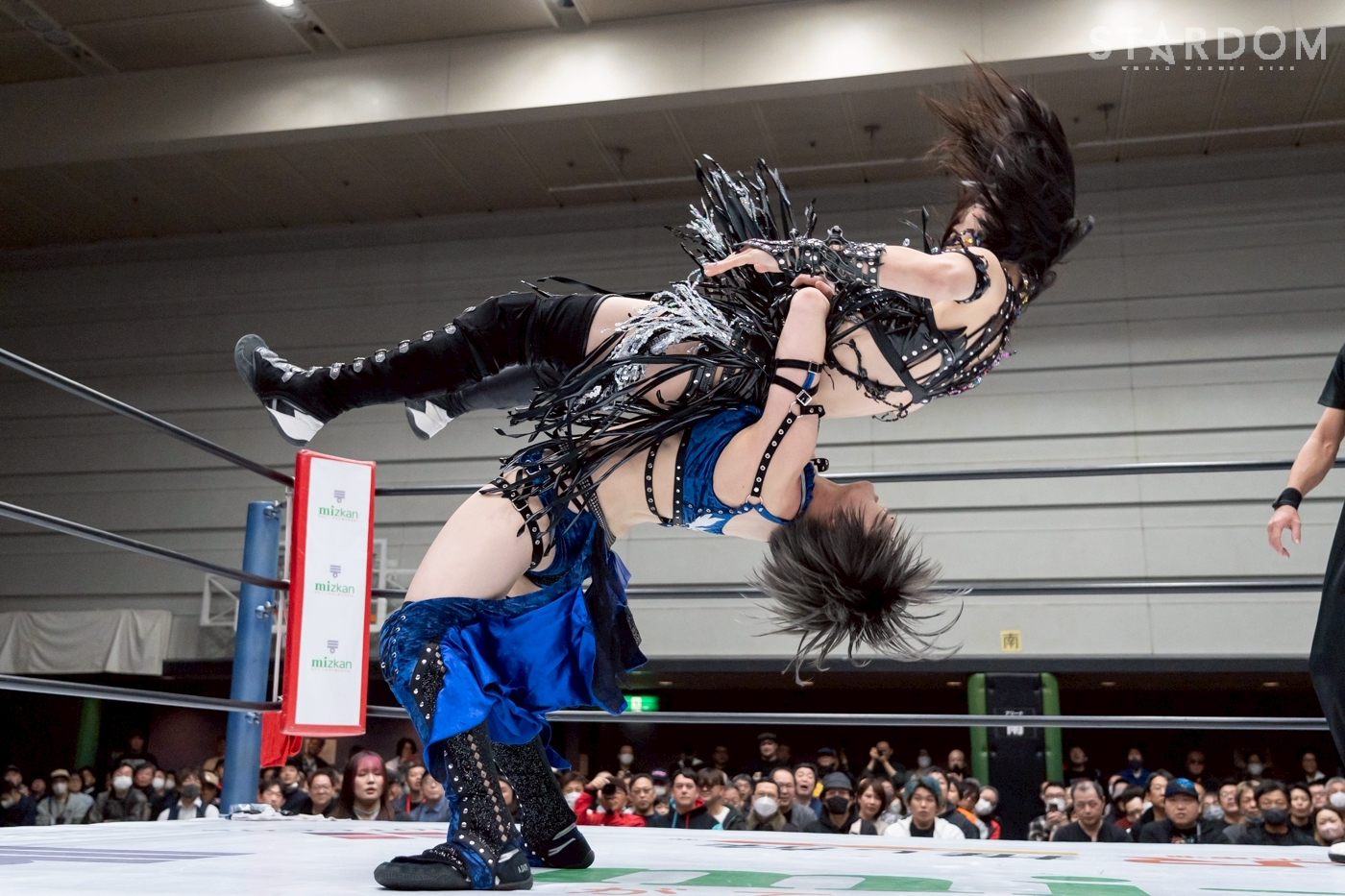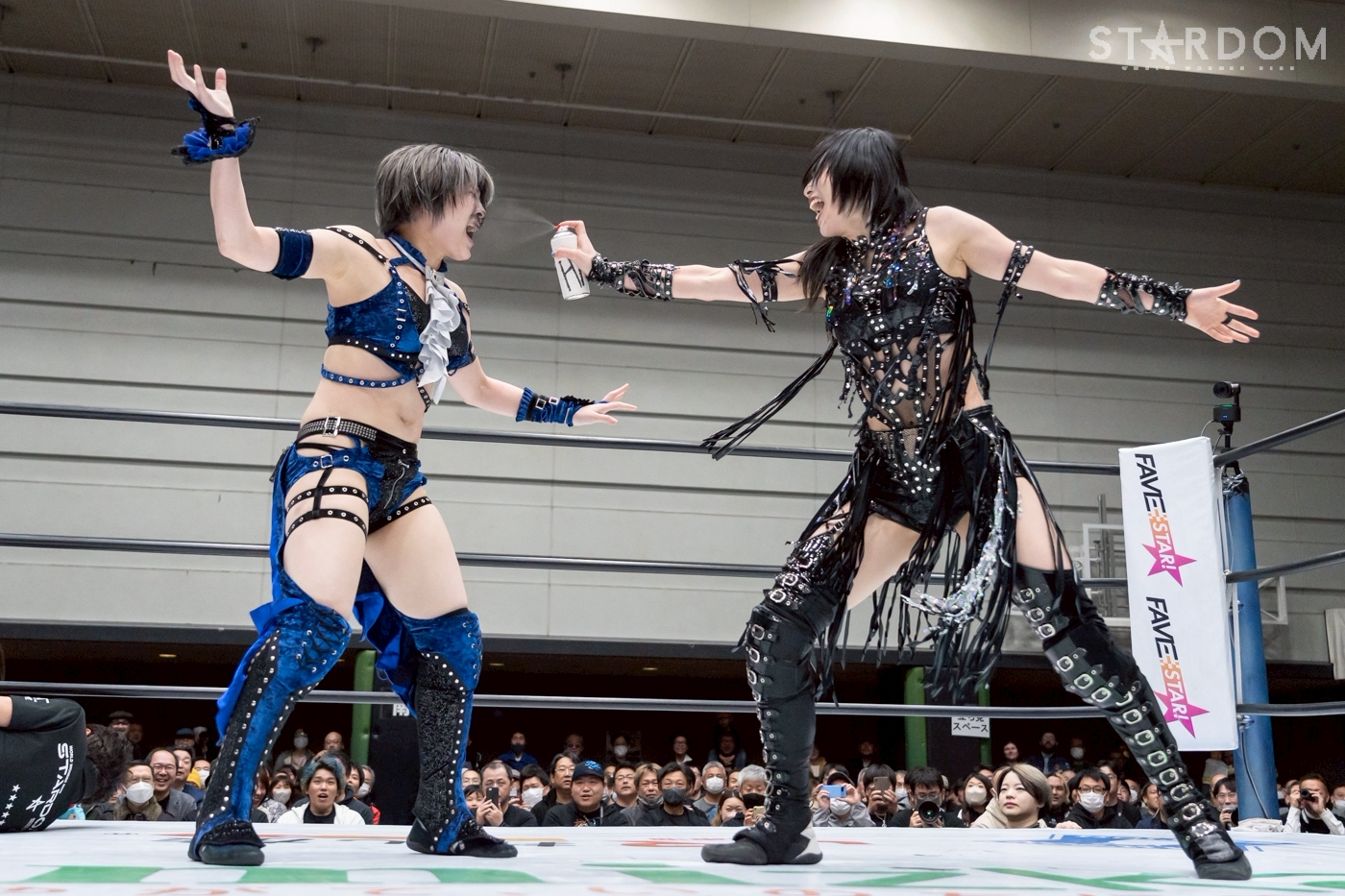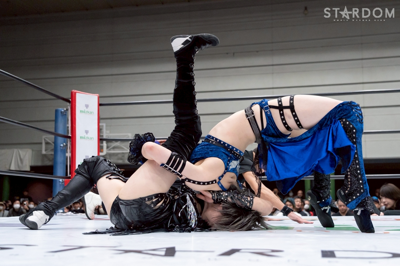 年末年始に上谷とタイトルマッチをおこなう朱里と安納は別々の入場。ゴングを待たずに上谷組が奇襲攻撃、場外に連行し上谷が朱里、小波が安納を客席に投げつける。小波が安納をリングに戻し、サーフボードストレッチ、エスケープされても簡単にはブレイクせずにサッカーボールキックをぶち込む。小波はさらにエルボー連打、安納がフィッシャーマンでお返しして朱里に託す。朱里は小波にドロップキック。しかし、上谷が乱入して小波と合体。それでも朱里が上谷にコードブレイカー、小波にフロントネックチャンスリー。朱里と小波がミドルキックの打ち合い。小波が朱里の髪を引いて叩き付け、サッカーボールキックからPK。上谷が朱里へスワンダイブ式ボディーアタック。両者が蹴りをかわし合うと安納が朱里の背中にタッチして上谷にミサイルキック、ドロップキック、フィッシャーマン。上谷はカウンターでドロップキック。上谷と安納がエルボーの応酬。上谷が連打し安納がダウン。上谷の突進を朱里がニーで妨害して、安納が極楽固め。安納の突進を上谷がかわして小波がエルボー、上谷がビッグブーツ。安納が返すと、上谷がスタークラッシャー狙い。安納が切り返して突進、上谷がバックをとると小波がスプレー攻撃。安納が蹴飛ばして阻止してみせる。朱里が小波にハイキック。リング上は安納と上谷。上谷がレフェリーを差し出し急所を攻撃、スプレーを持ちだして顔面に噴射、最後はスタークラッシャーで3カウントを奪った。