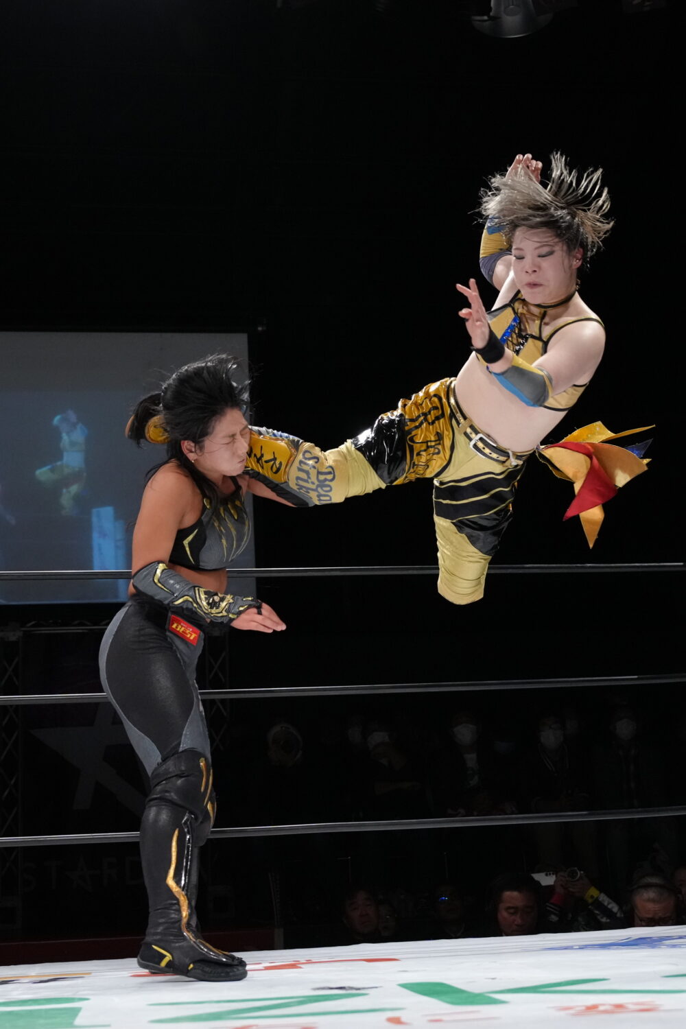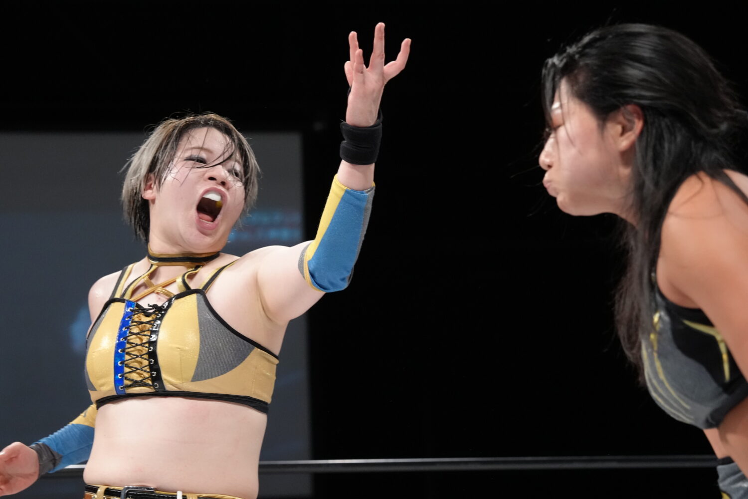 八神蘭奈がセンダイガールズの岩田美香にチャレンジ。他団体参戦で力をつけてきた八神がどこまで岩田の牙城に迫れるか?