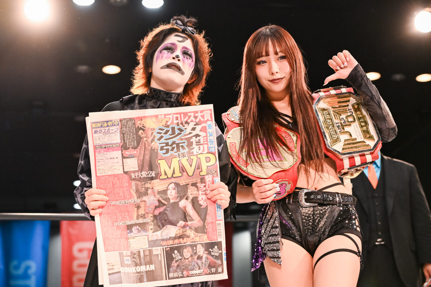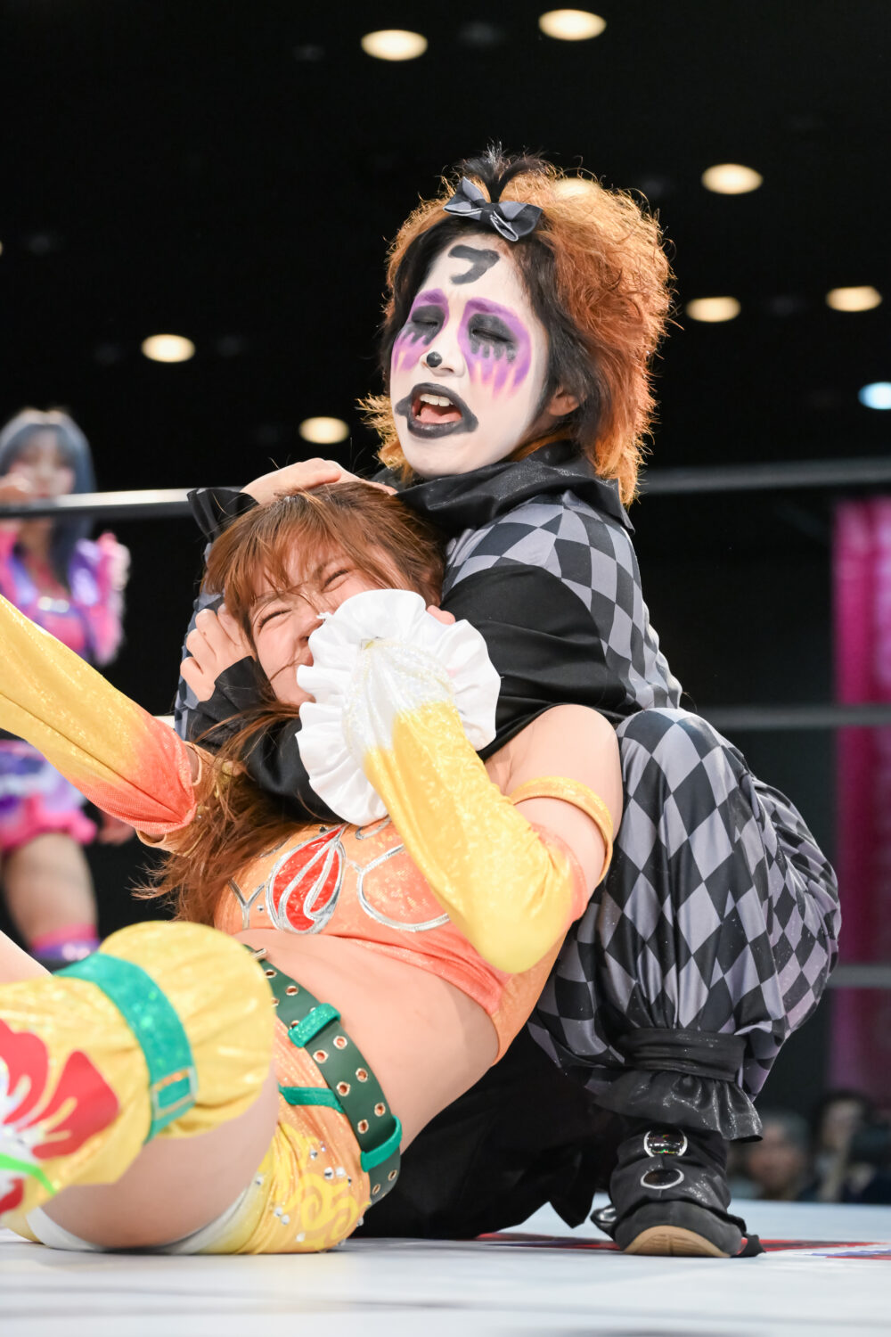出場予定の浜辺纏が欠場となり、カードが変更。浜辺のところに咲蘭が入り、稲葉あずさ&フキゲンです★組vs咲蘭&金屋あんね組となる。